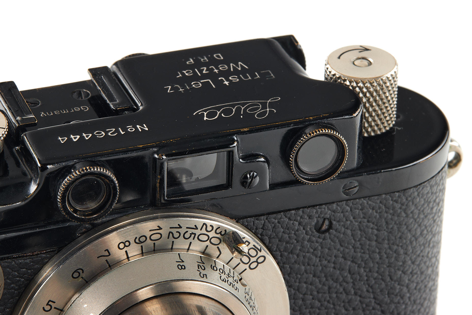 An uncommon export Leica III in excellent condition, engraved on the flash shoe with 'Germany', with matching nickel Elmar 3.5/50mm no.148012 (feet scale, incl. front cap)