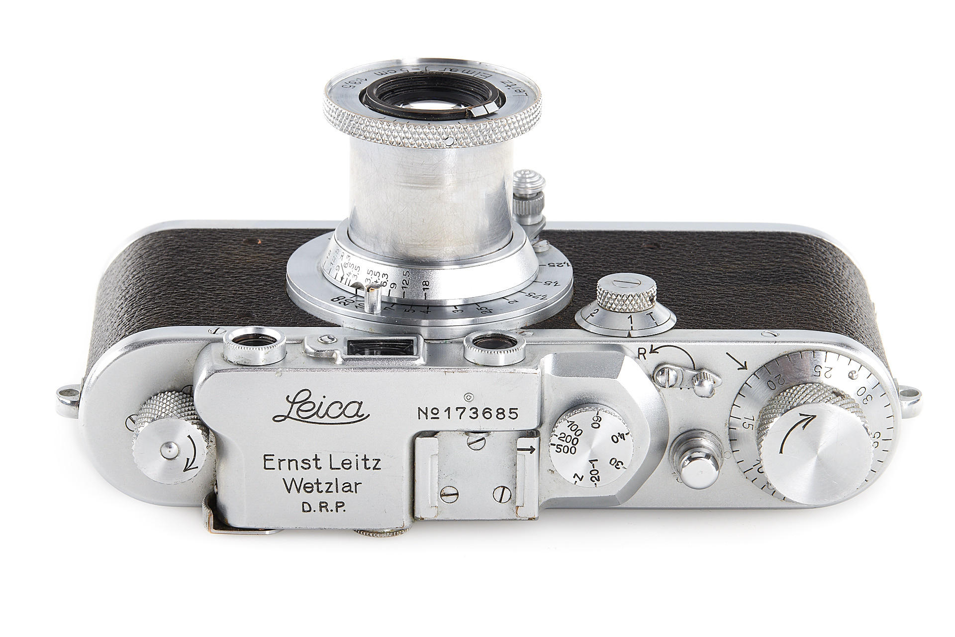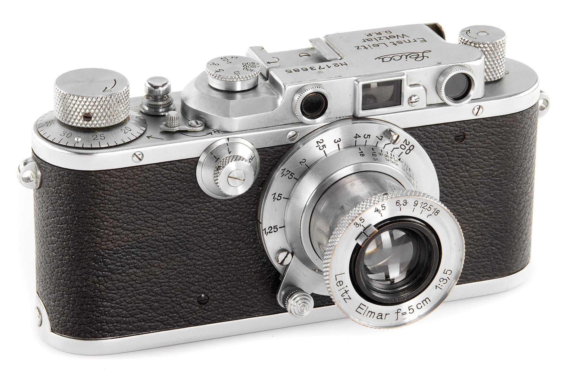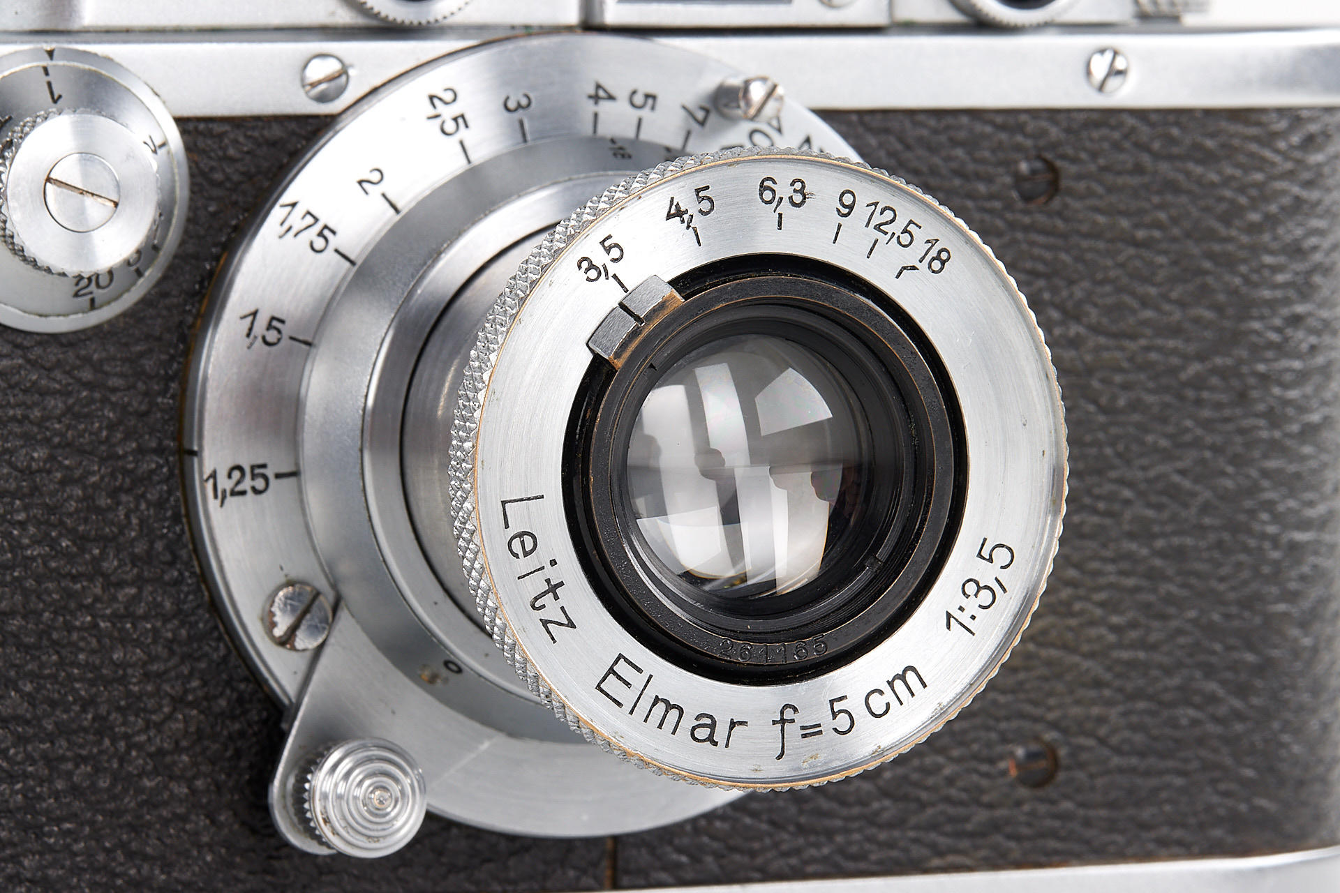 an interesting body stamped near the serial number with a small cross (by Swiss customs), in very good cosmetic condition, with uncoated Elmar 3.5/5cm no.261165 and lens cap