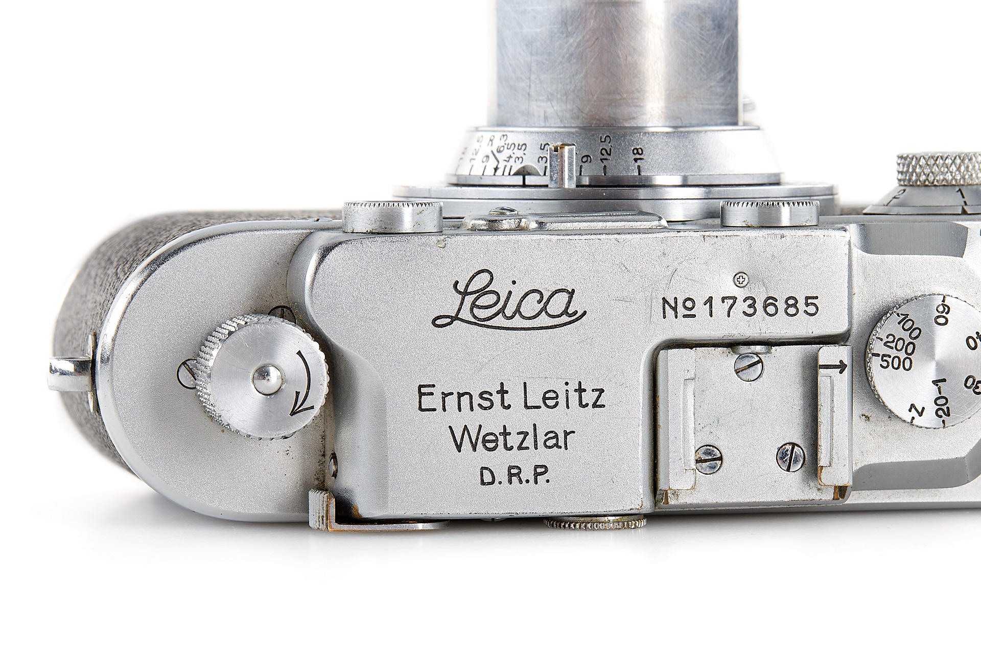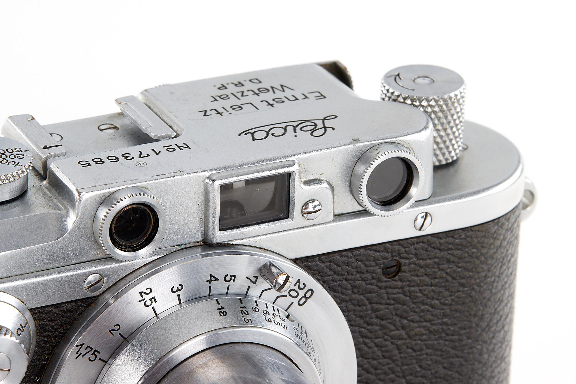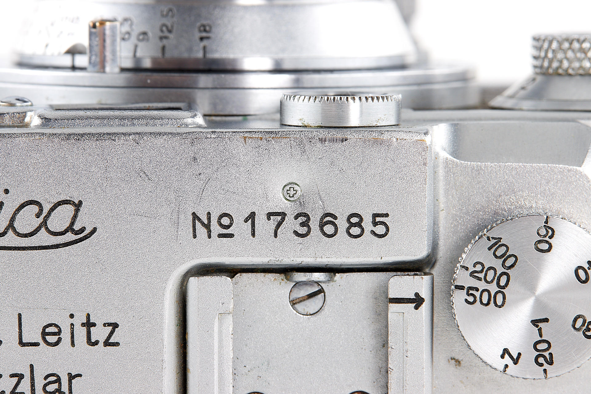 an interesting body stamped near the serial number with a small cross (by Swiss customs), in very good cosmetic condition, with uncoated Elmar 3.5/5cm no.261165 and lens cap