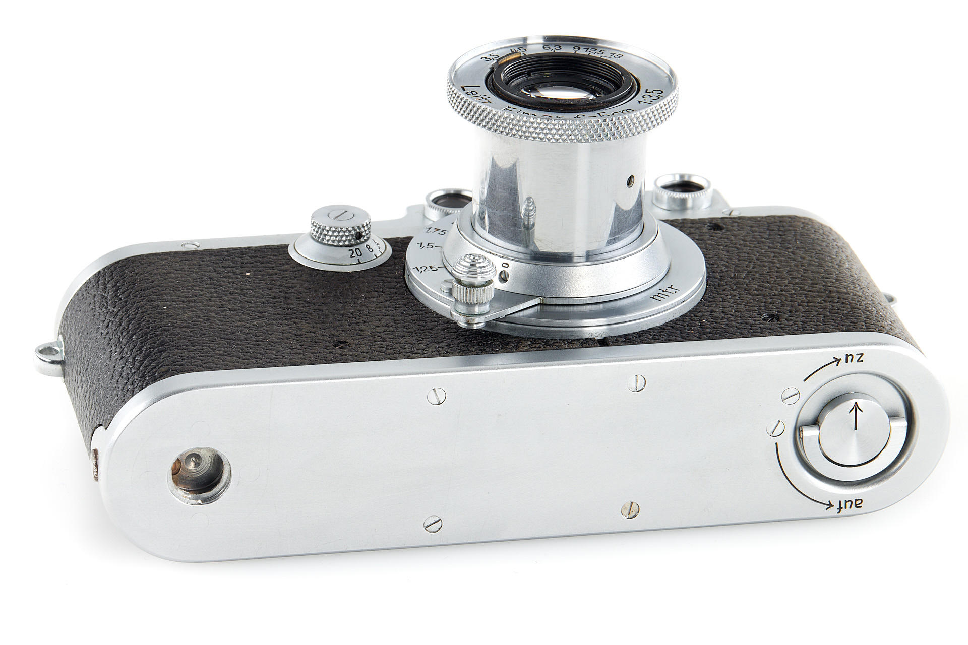 A beautiful Leica III in chrome finish, almost mint condition, with almost no visible signs of age, with chrome Elmar 3.5/5cm no.397984, hard to find in this good condition.