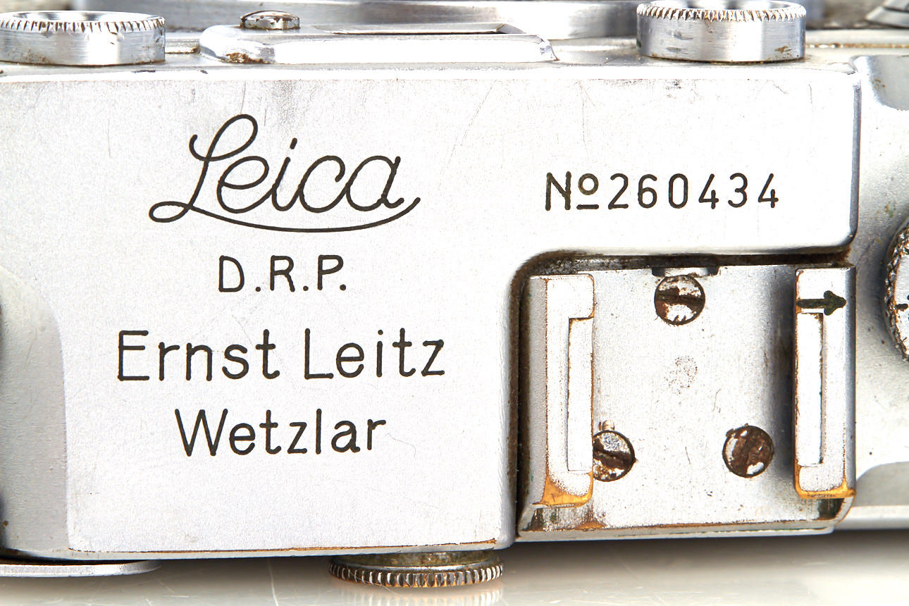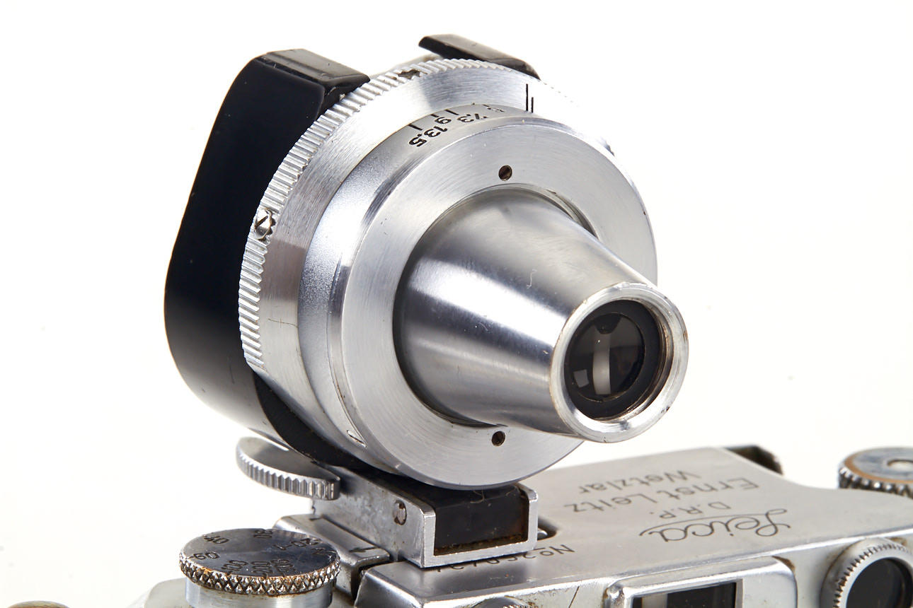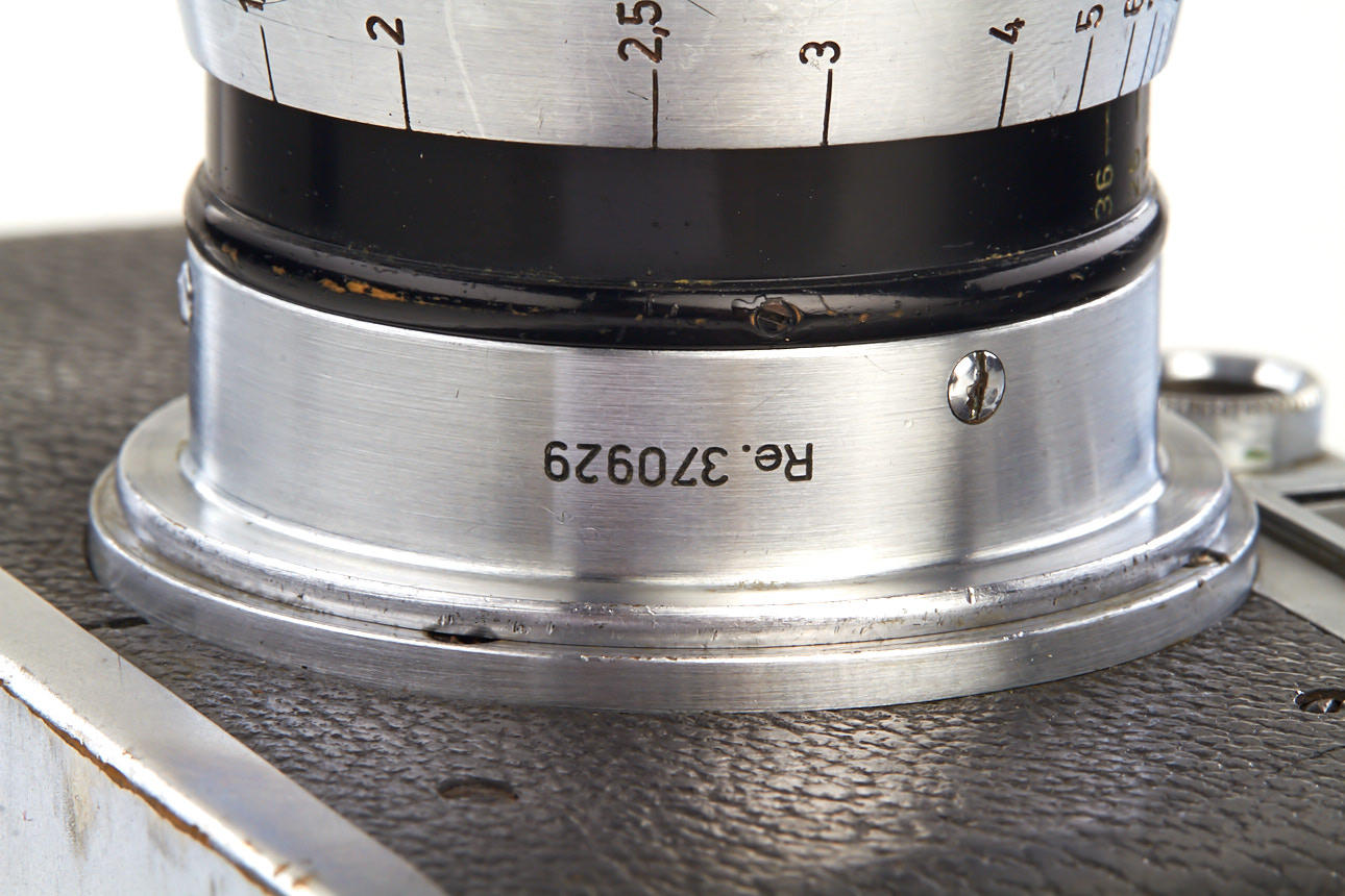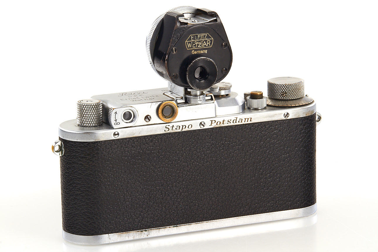 body engraved 'Stapo Potsdam' (Stapo - Staatspolizei - a general shortcut for German State Police including Gestapo) - delivered to Bln. 1585 M.s.W. on November 4th, 1937, with black/chrome Elmar 4/9cm no.556566 engraved on the barrel 'Re.370929' (Re - Reichssicherheitshauptamt - the Reich Main Security Office - the main office of SS), black/chrome VIOOH finder and lens cap - a very interesting historical assemble