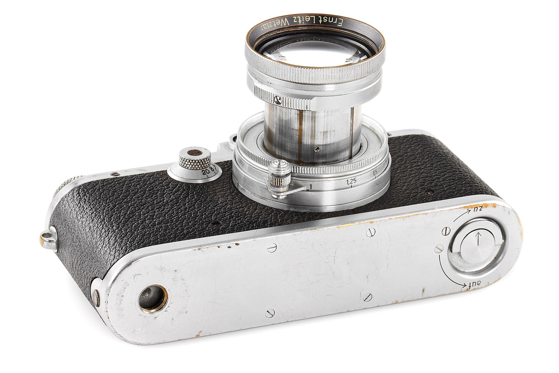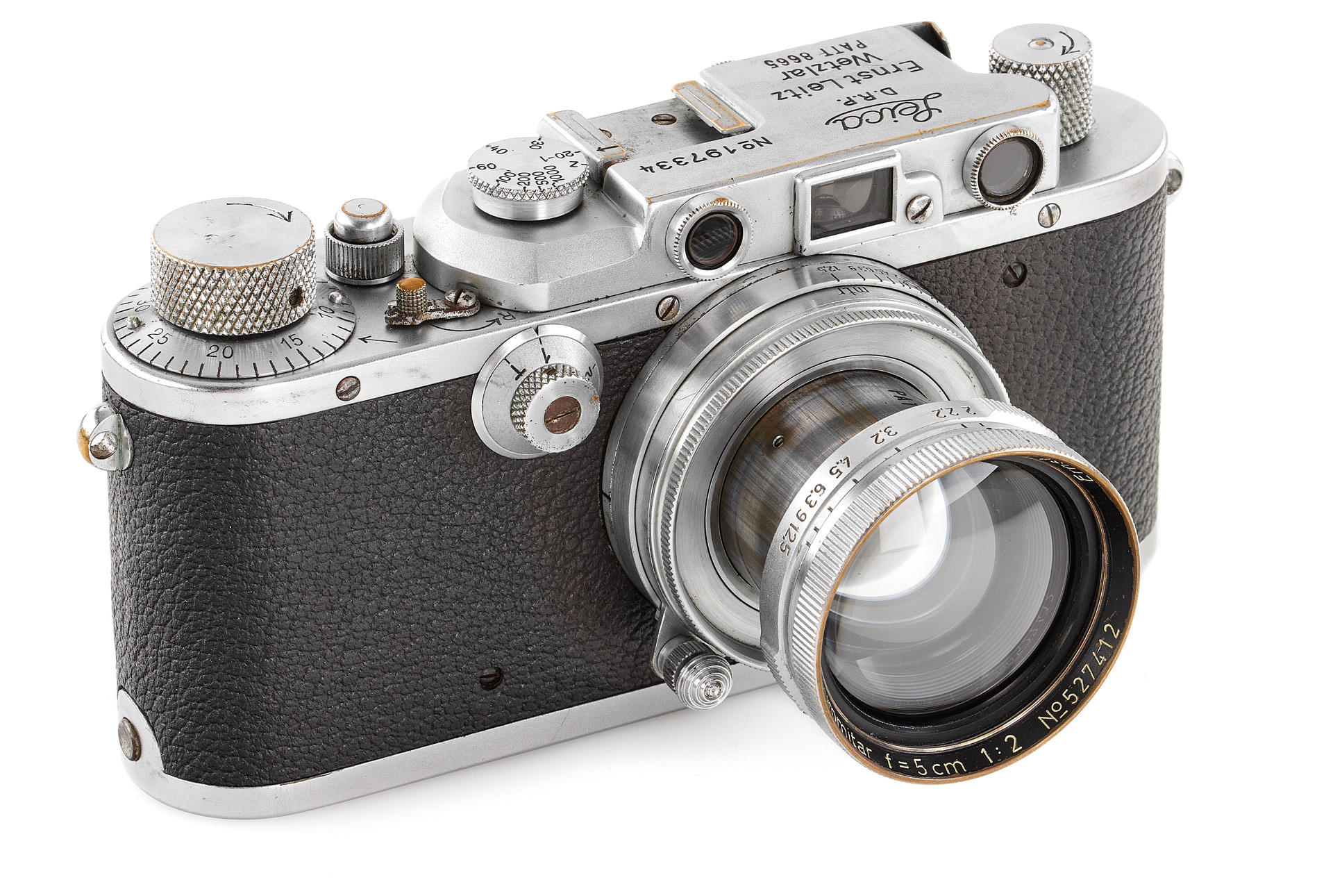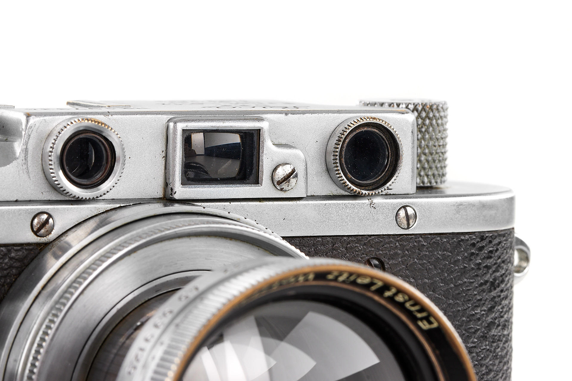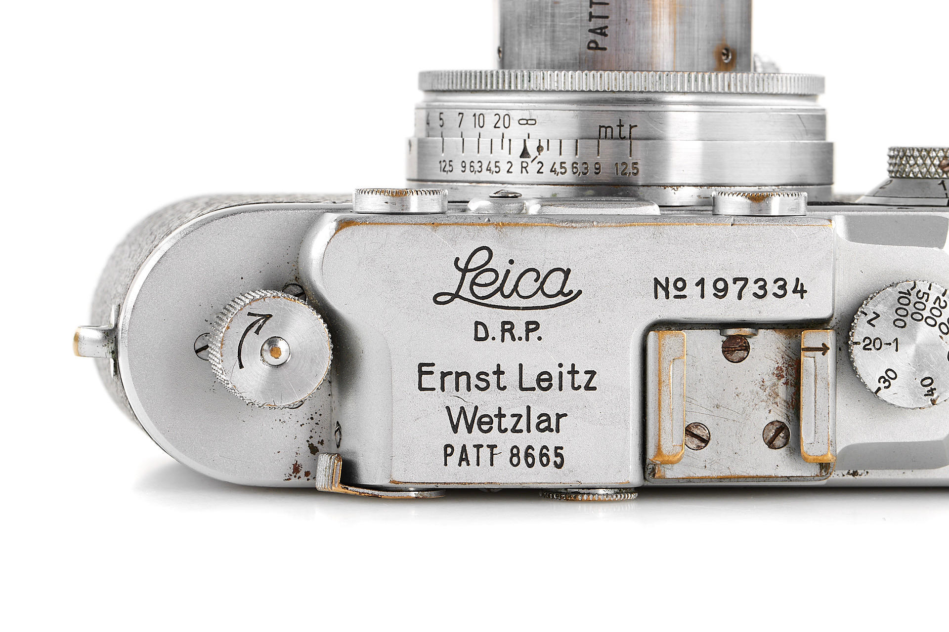 very rare Leica IIIa engraved with 'PATT 8665' on the top plate (unusually placed on the left side), used by the British Royal Navy during WWII, in good condition, with matching Summitar 2/5cm no.527412 with same engravings, with yellow filter and ever-ready case