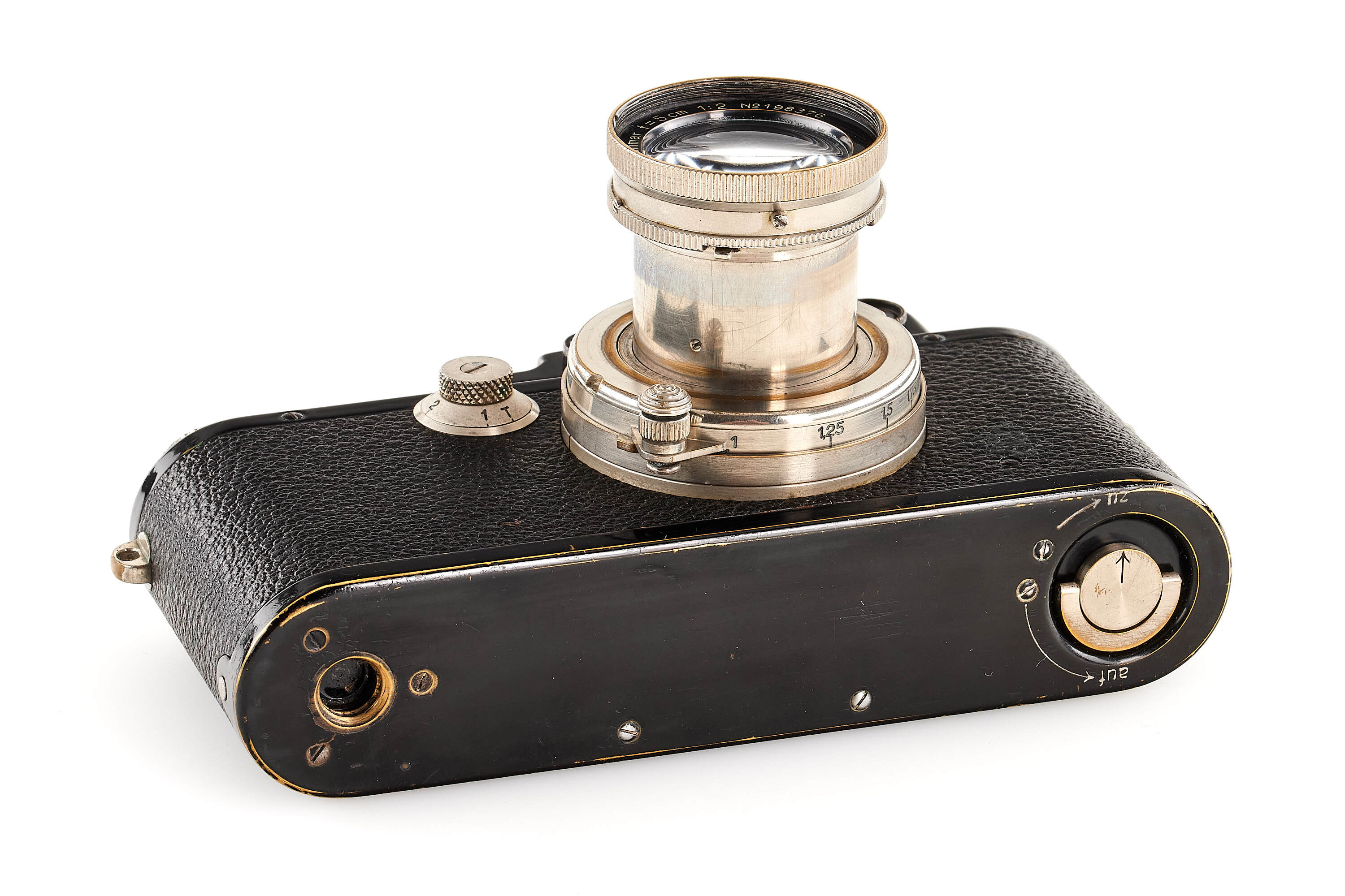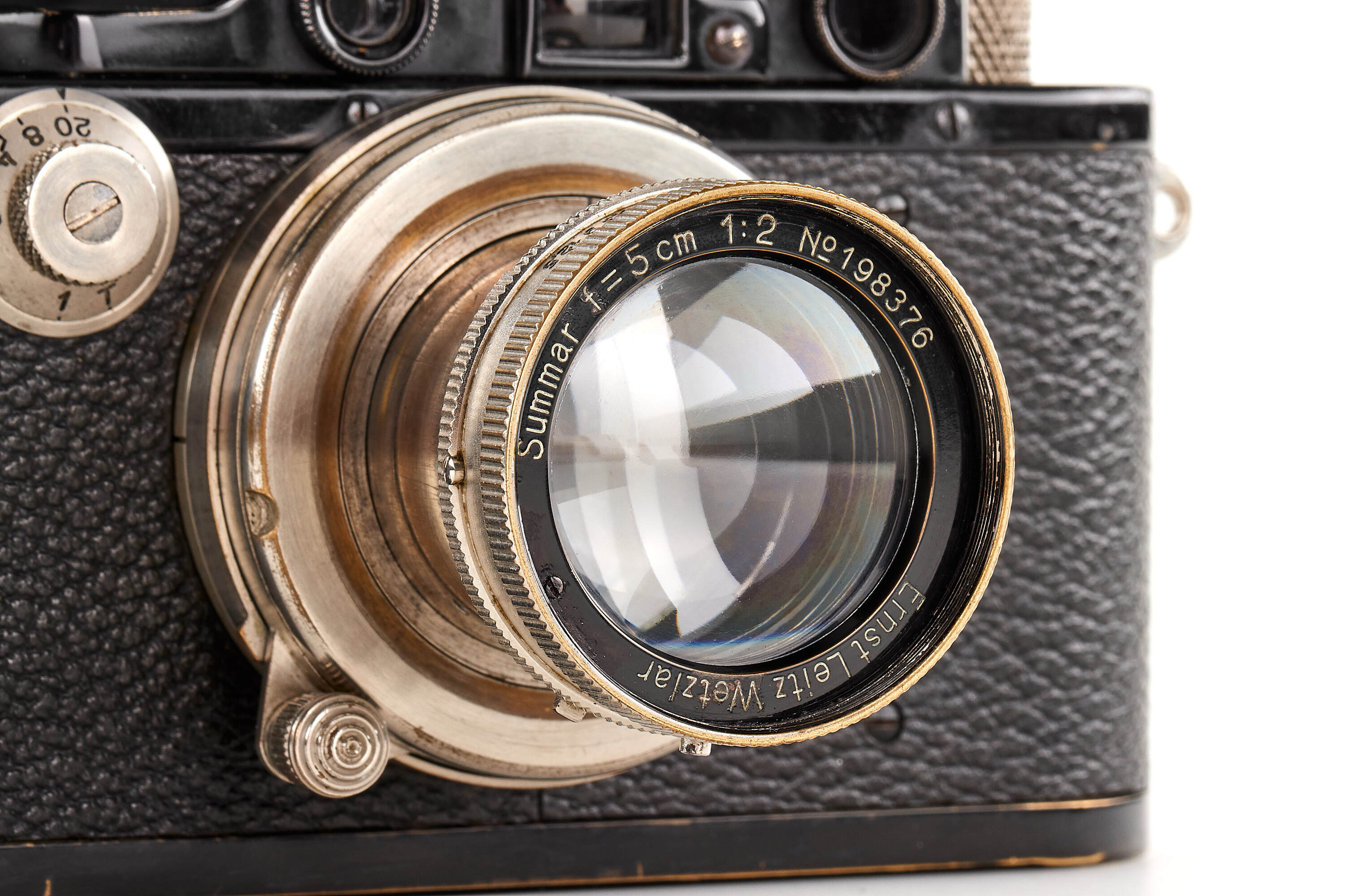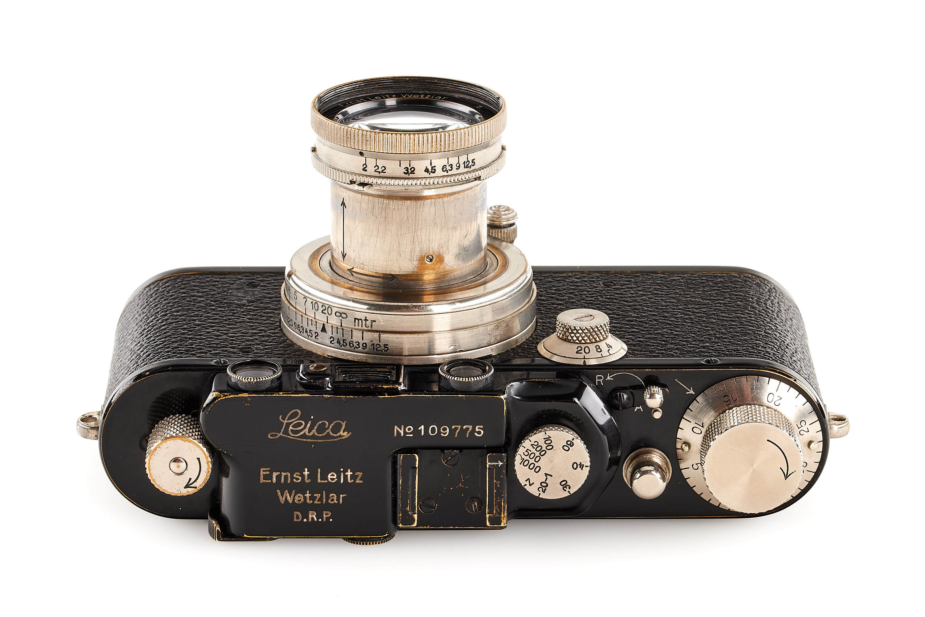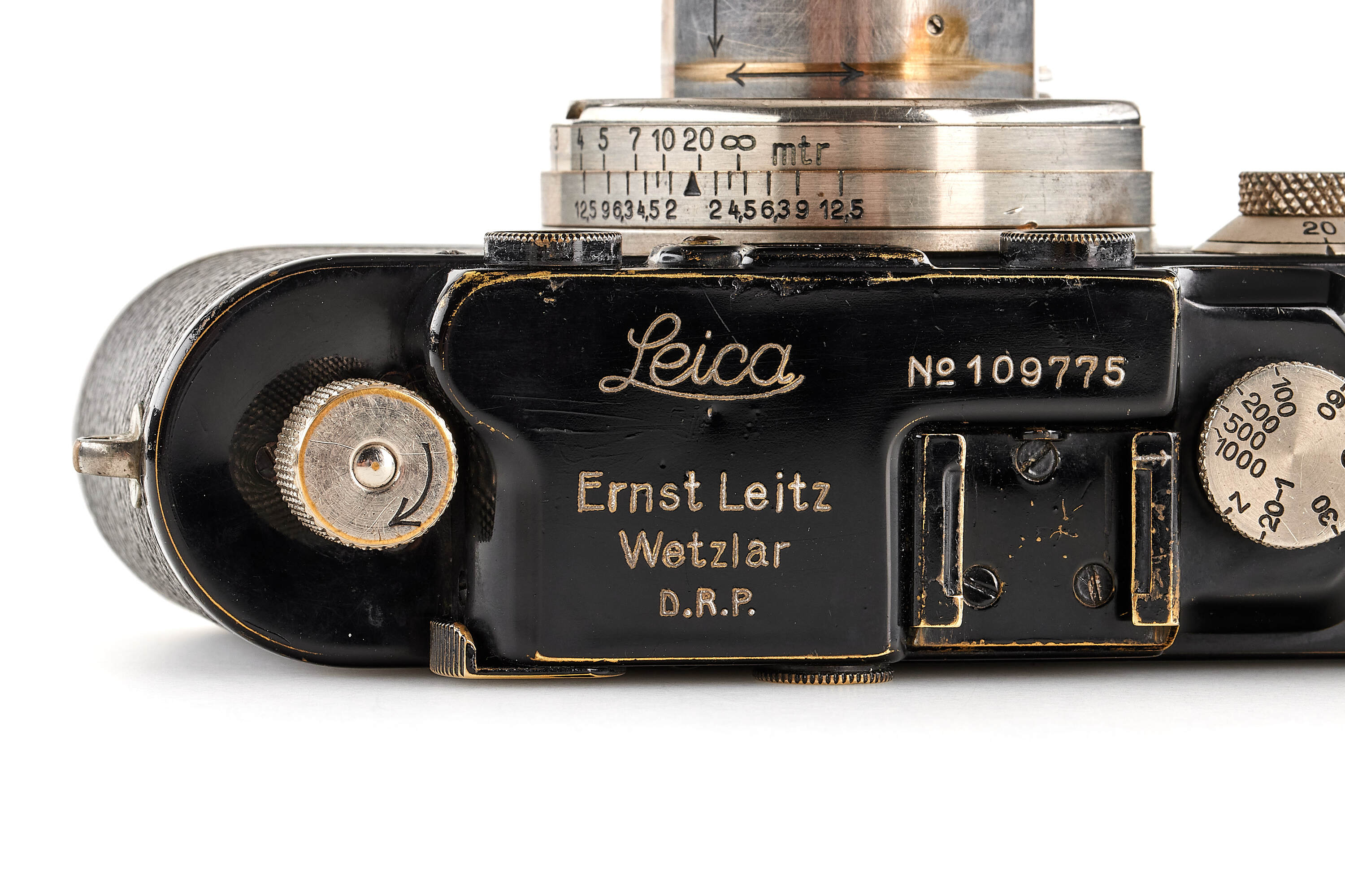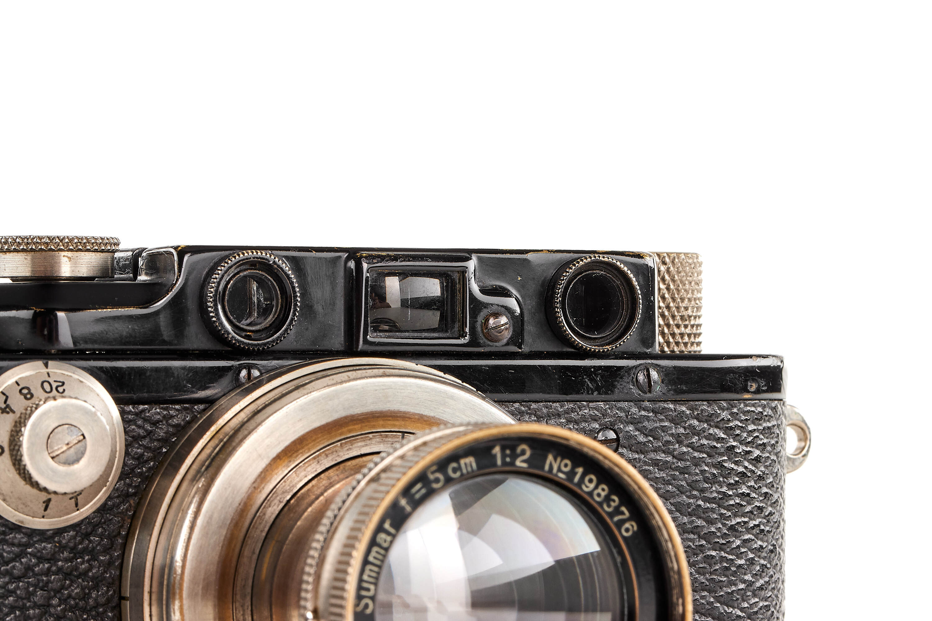 Rare interesting Leica IIIa in black/nickel finish, in very good condition, originally an early III Mod. F delivered on 14.06.1933 to Bielefeld, Germany, and updated in 1949 to IIIa specifications, without a sync. flash connection, together with a nickel Summar 2/5cm in meter scale no.198376, good optics only showing a few light cleaning marks, with black paint front lens cap.