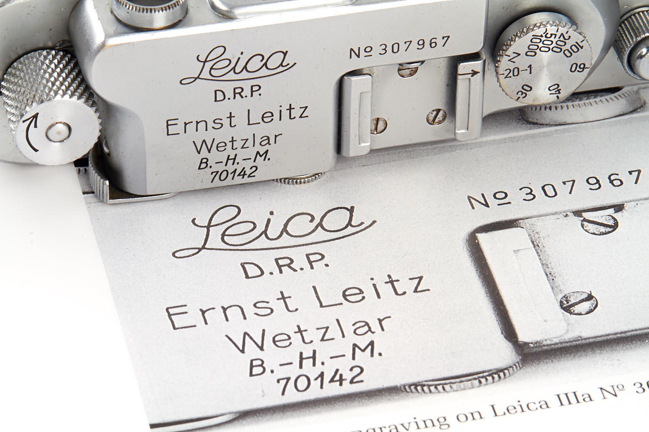 IIIa in very good condition engraved on the top plate 'B.-H.-M. 70142', with everready case, the same camera is shown in Lager Vol.III Accessories page 314 for this engraving