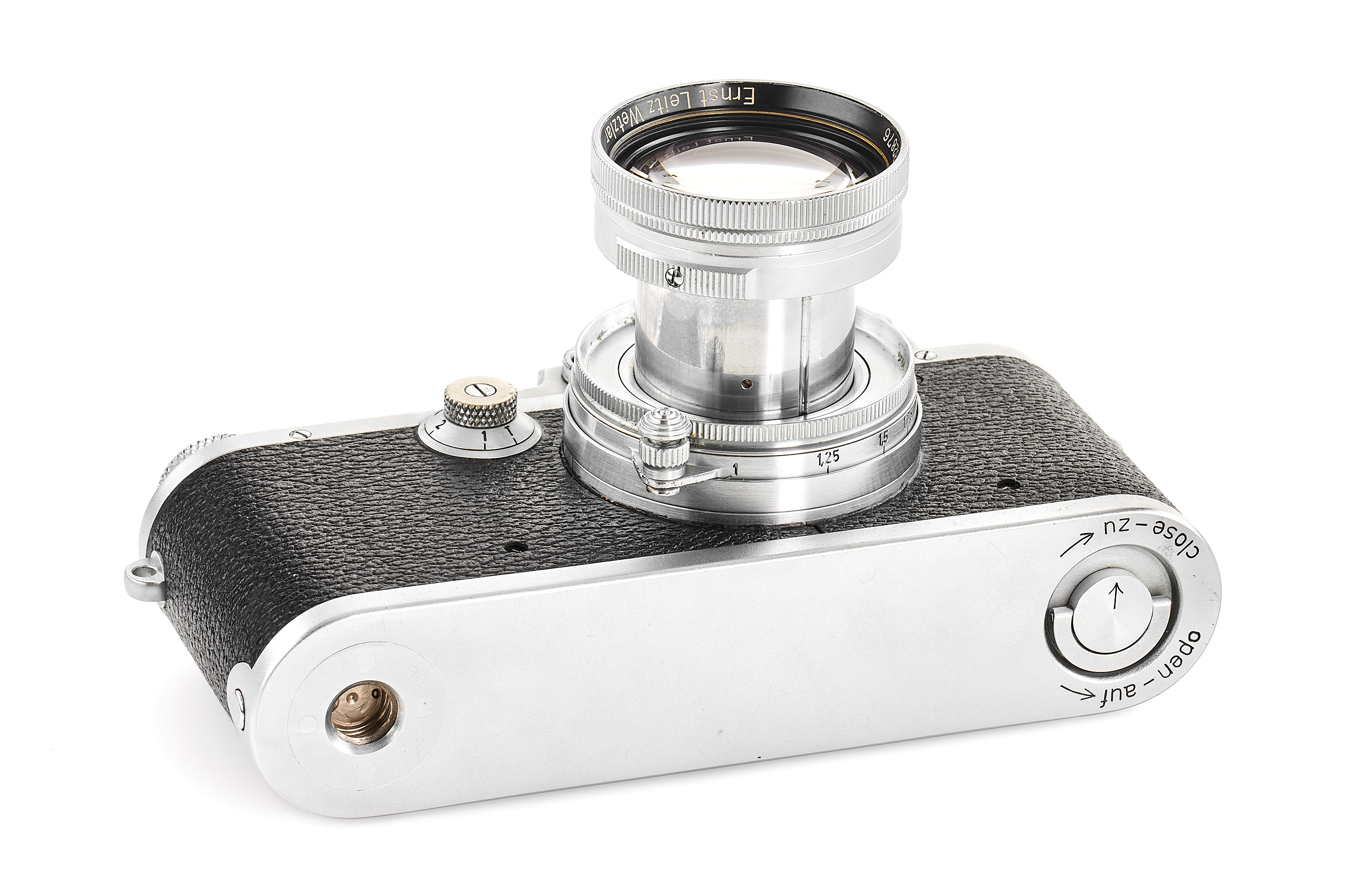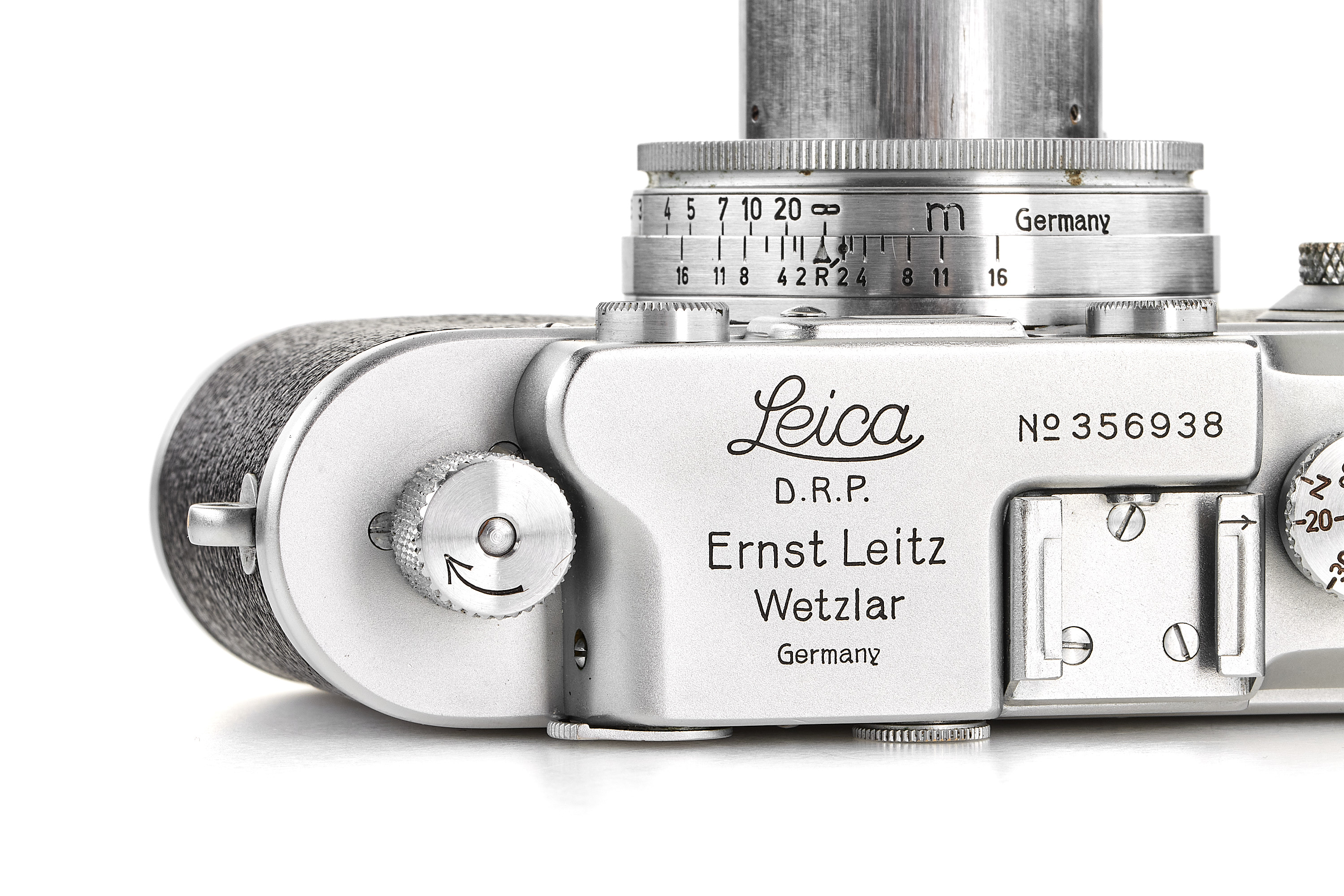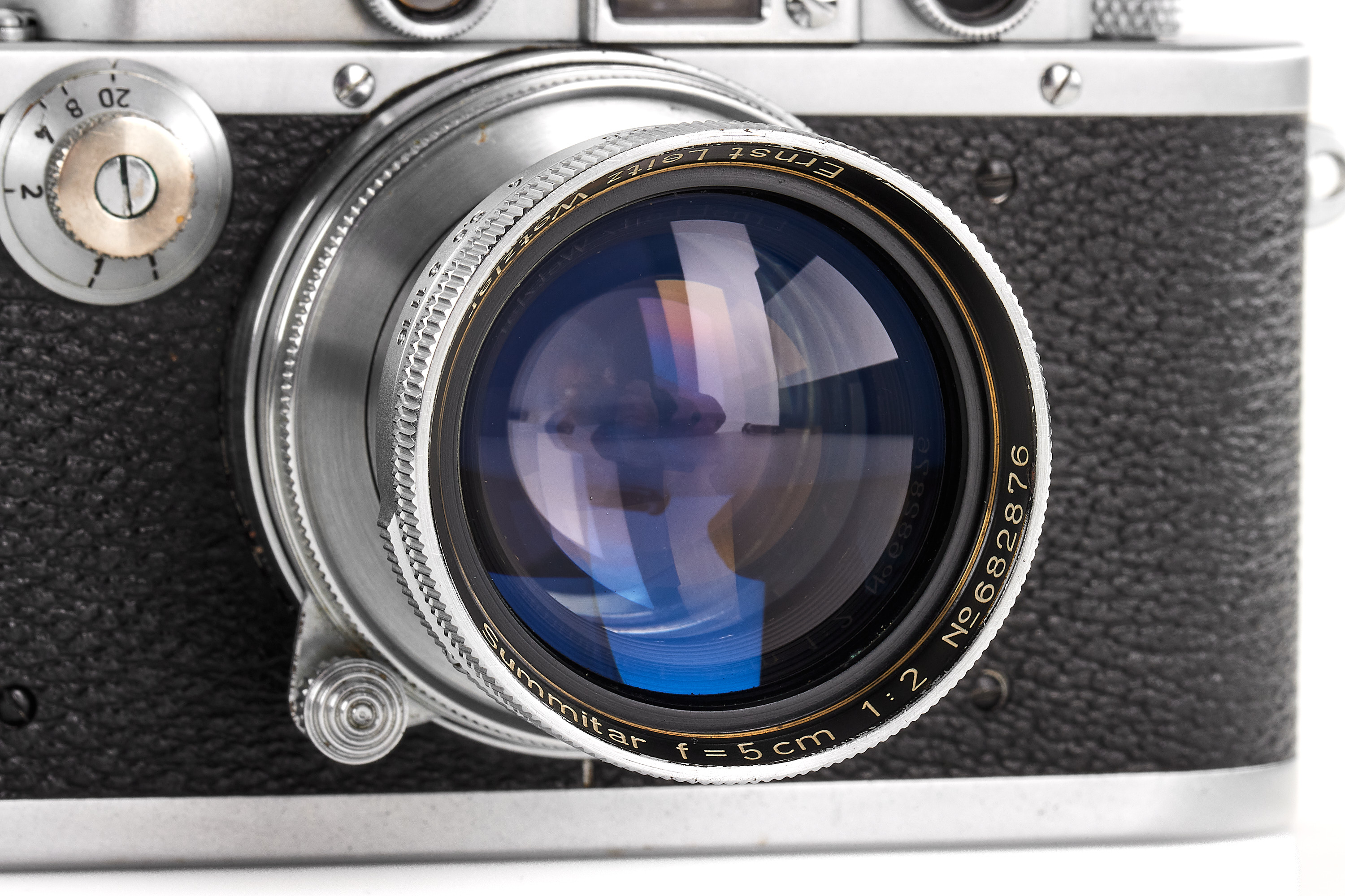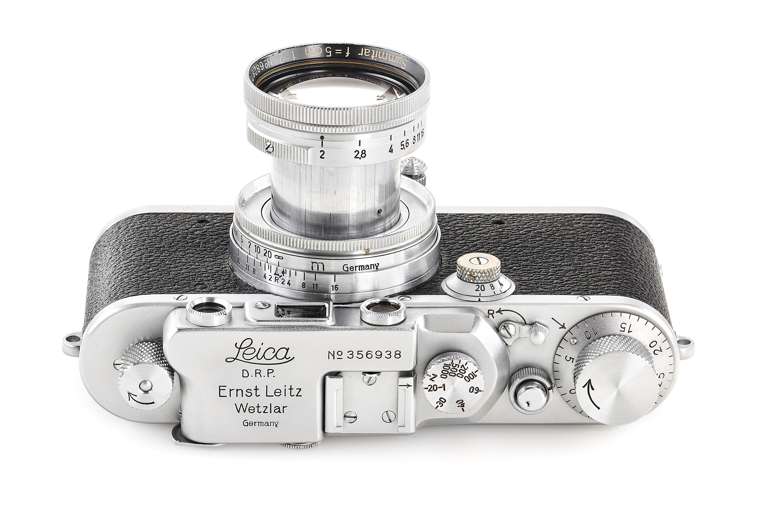 Rare very late post-war IIIa chrome, one of only 700 units produced (last serial number no.357186), in absolutely mint condition, note the 'Germany' engraved on the top plate, together with matching Summitar 2/5cm no.682876, clean and clear coated optics, with front lens cap, and leather case, body delivered to Frankfurt on 24.08.1948.