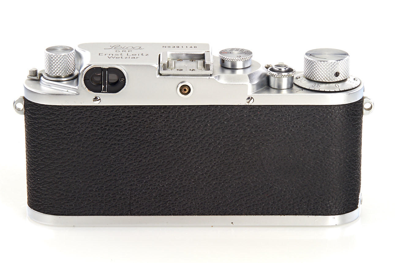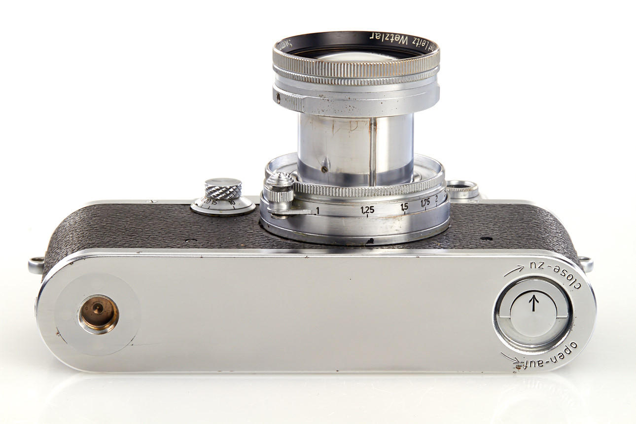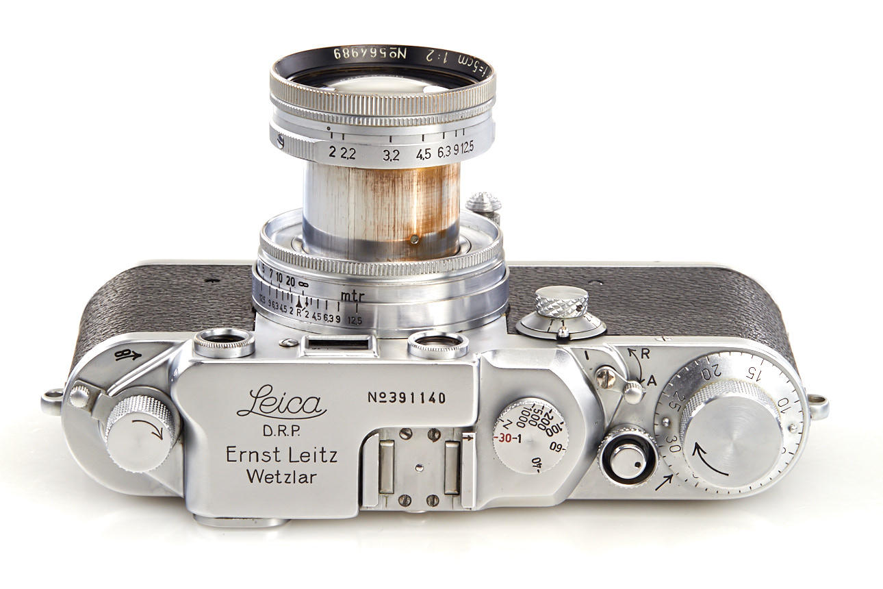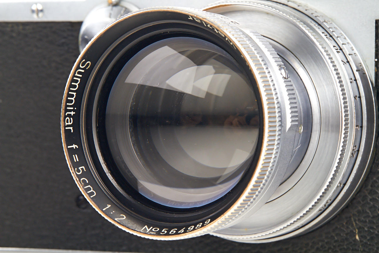 very rare military camera with 'K' stamped on the shutter curtain, but without the 'K' engraving after the serial number, from a small batch from 1943 (serial numbers 391101-391300), in excellent condition, with Summitar 2/5cm no.564989 (cond. B, front cap), see Lager Vol.1 page 61