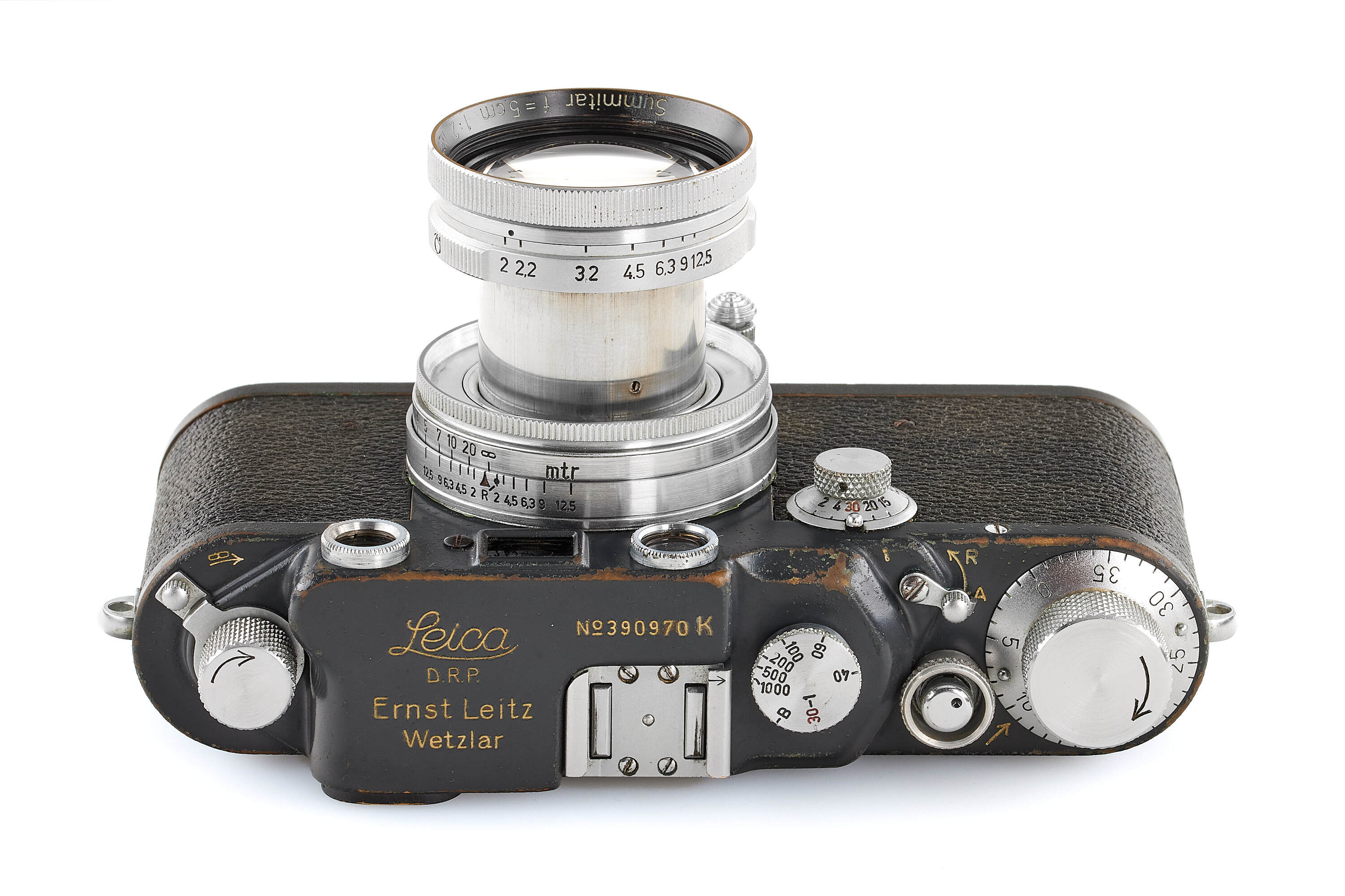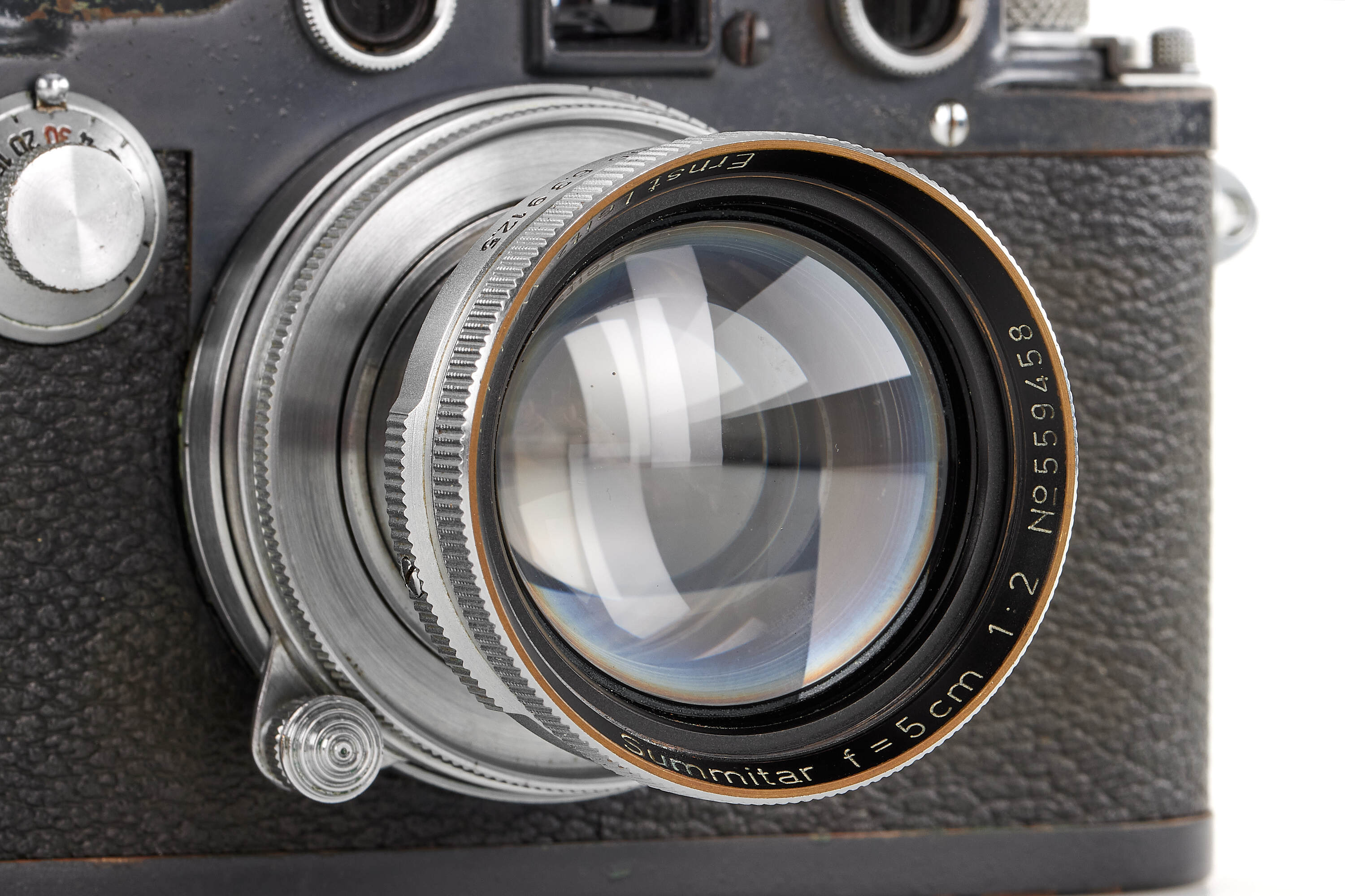 Rare Leica IIIc K, originally intended for the German Army but, as Leica records show, finally delivered to the U.S. Army on July 7, 1945—just weeks after Germany’s surrender. The camera is in fine condition, with replaced shutter curtains and black vulcanite, and comes with a matching Summitar 2/5cm no.559458, delivered on the same day to the U.S. Army.