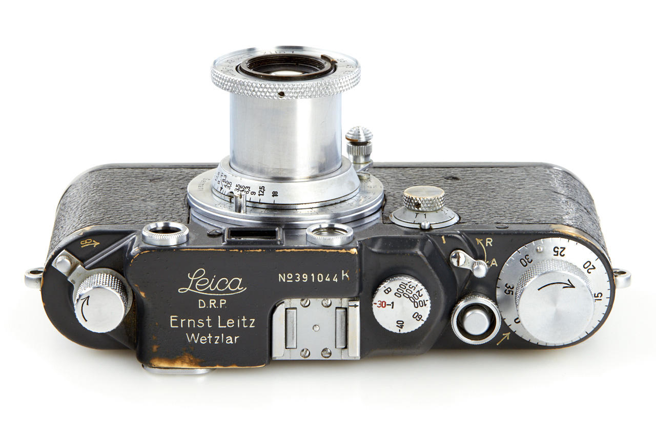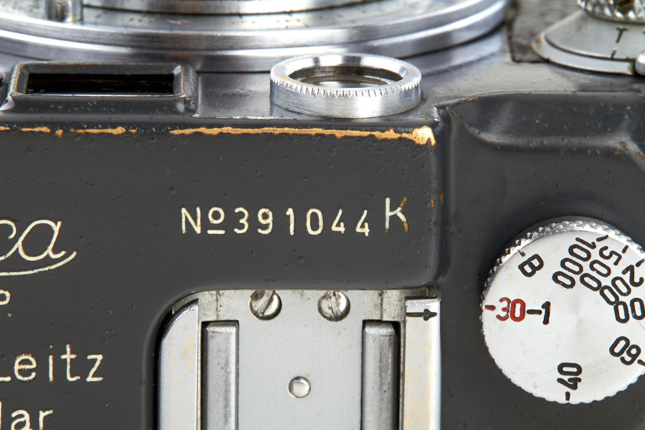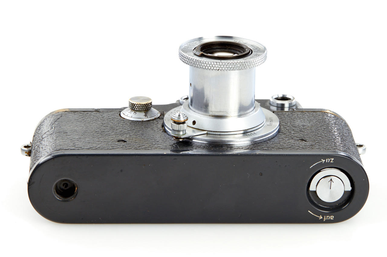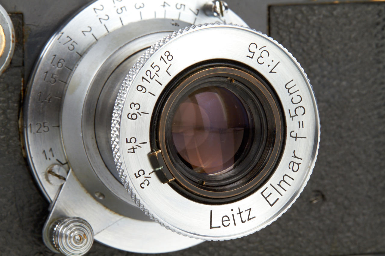 grey camera in fine condition (parts of vulcanite restored, shutter blinds replaced) with unnumbered Elmar 3.5/5cm, in good working order - the camera (LOOPN) was delivered to the US Army on August 4th, 1945