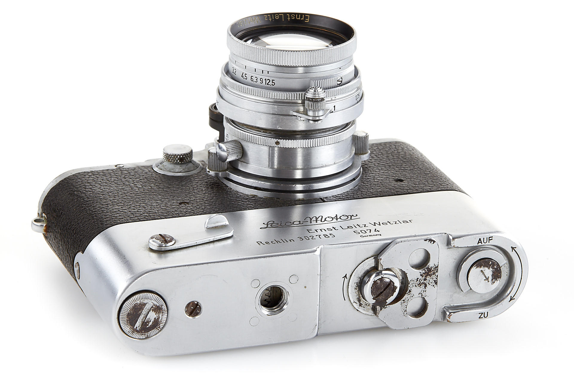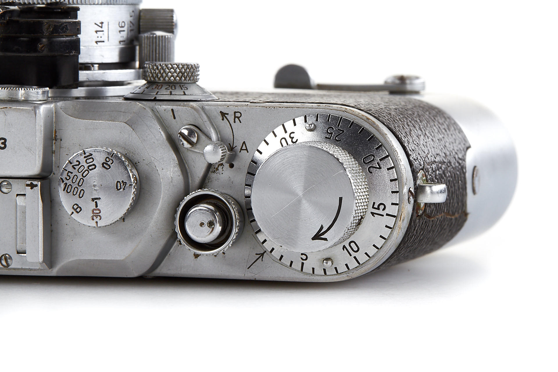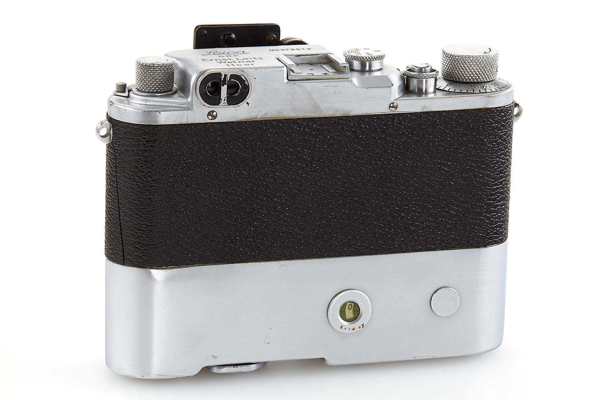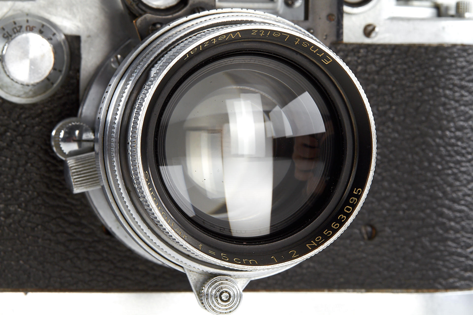 original German military Leica IIIc, engraved on the top plate with 'Heer', with matching Summitar 2/5cm no.563095 (engraved near the mount with 'Heer'), both camera and the lens delivered to Berlin on 26.09.1941 (delivery number 25993), included it this set is a NOOKY closeup device engraved with 'Heer' and MOOLY-C engraved with 'Rechlin 302785', Rechlin was an important airport for German Luftwaffe in WWII, it is one of the most complete and sophisticated military Leica outfit we have seen