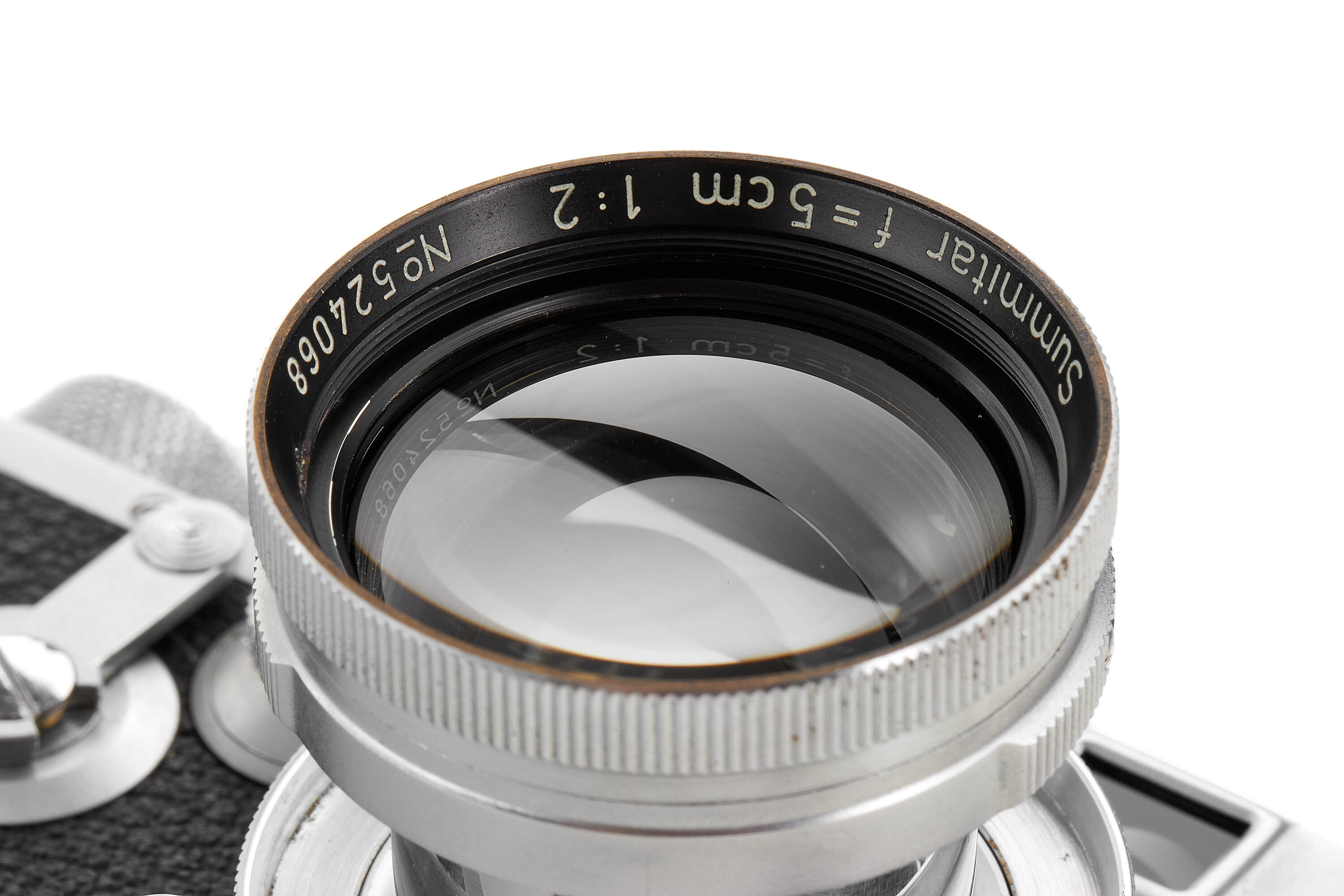 The camera offered here is one of the very last examples made, delivered on 21 October 1944. It is preserved in excellent condition and comes with a Summitar 2/5cm no.524068, delivered on the same day. The set is in beautiful condition throughout and in good working order.