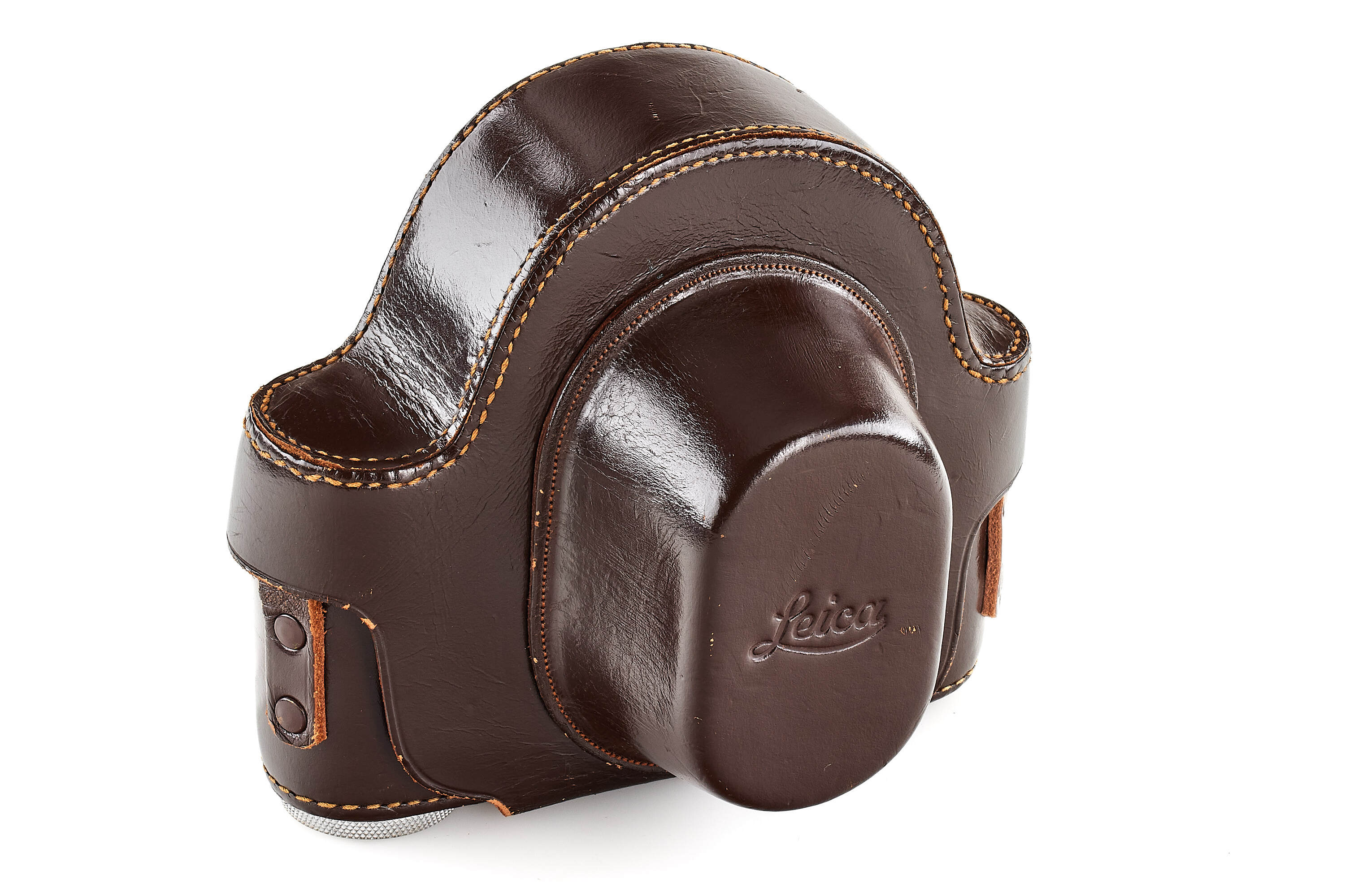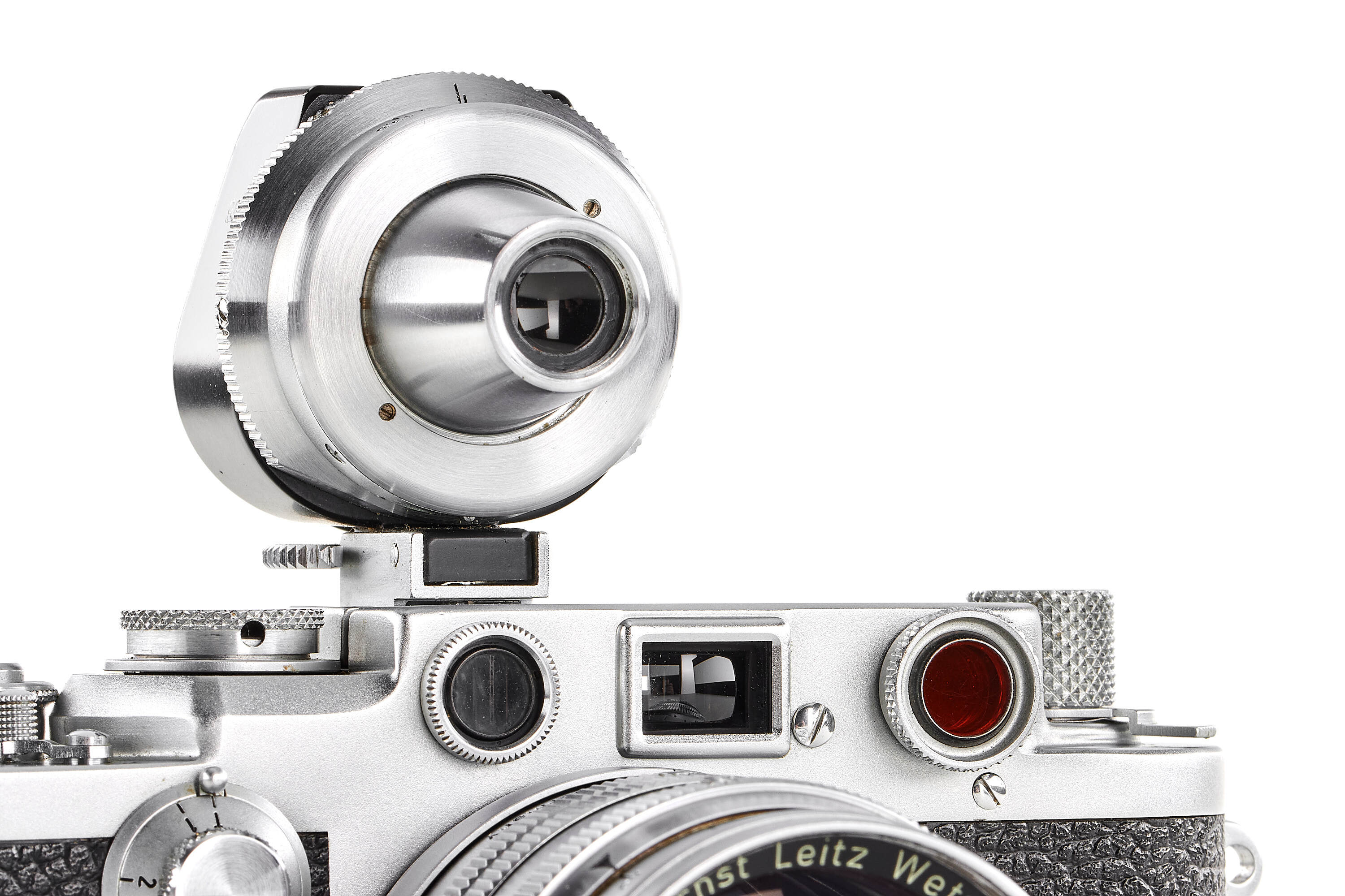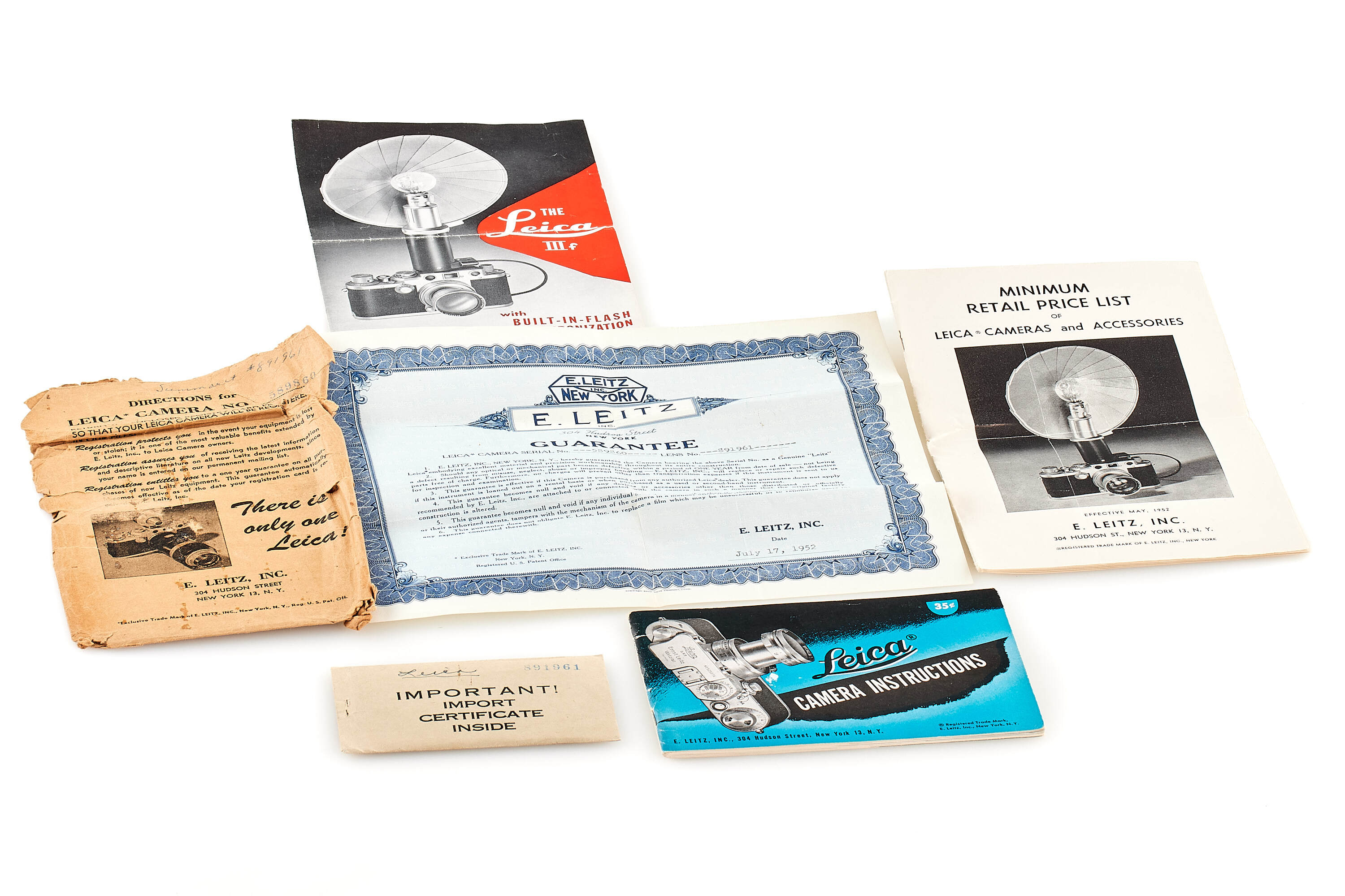 Very nice quite early IIIf with black flash sync. scale, export version with Weston film index, in almost mint condition, delivered to Leitz New York on 13.03.1952, together with matching Summarit 1.5/5cm no.891961 in feet scale with 'Tailor & Hobson' engravings, good optics only showing a few light cleaning marks on the front element, with VIOOH universal finder no.9501 in feet scale, rare OKARO chrome orange filter for the rangefinder, unusual leather eveready case allowing the finder to remain mounted, original customs papers, brochures and instructions.