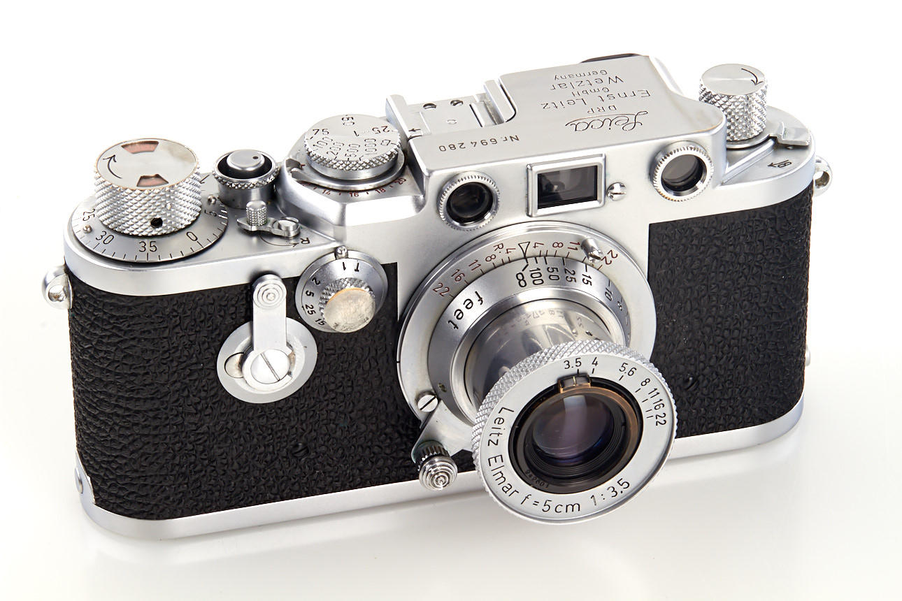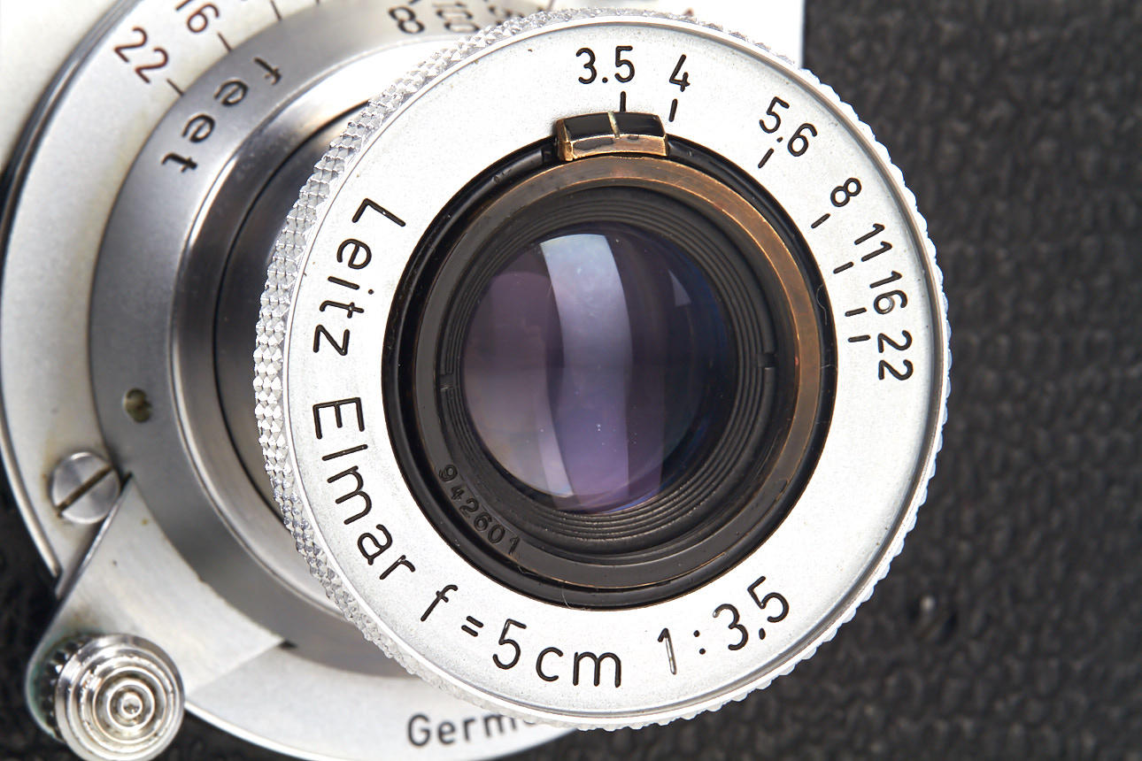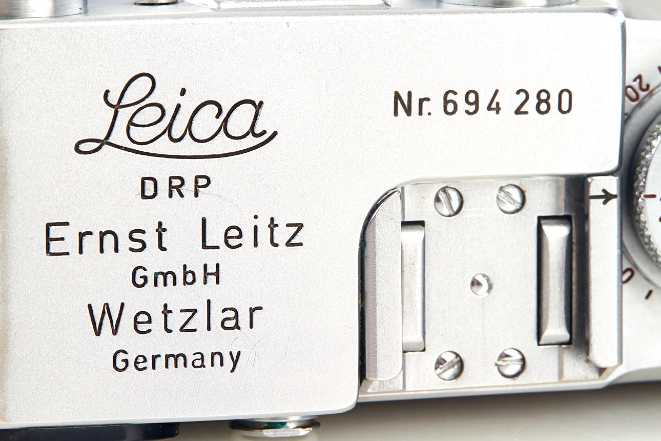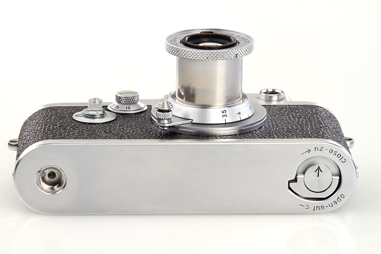 very rare IIIf with military engravings of UK Royal Air Force, special number '14A/CA 38' and arrow mark engraved on top plate, with Elmar 942601 (feet scale) and everready case stamped on top '14A/CA39'