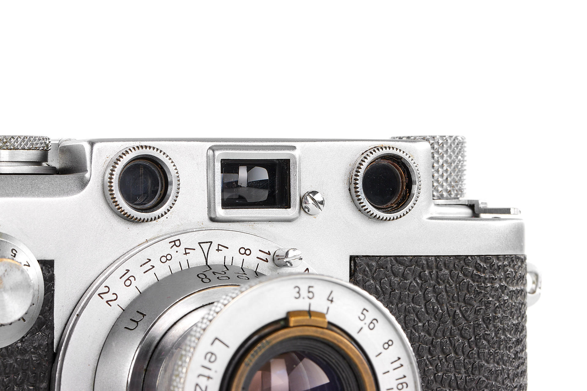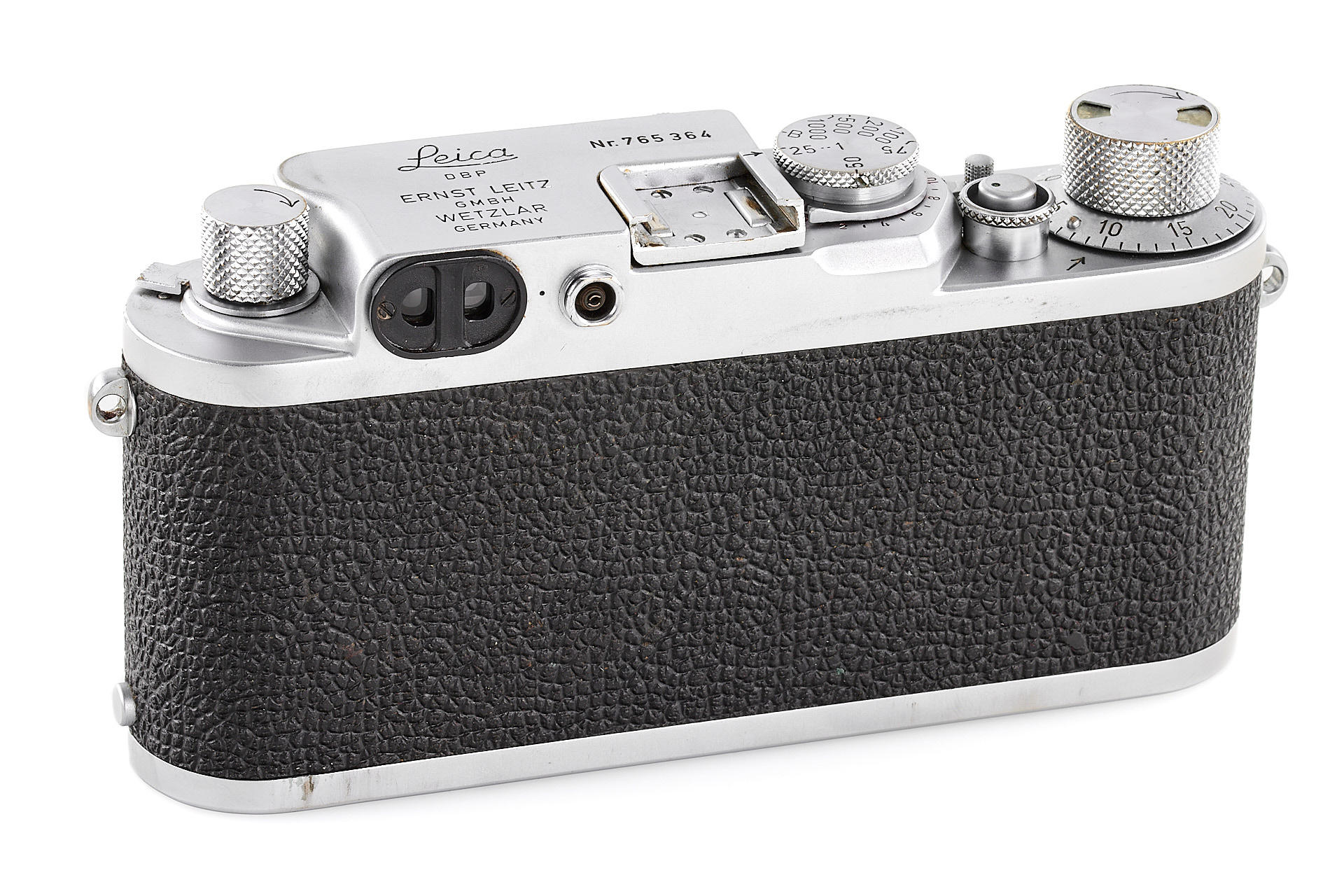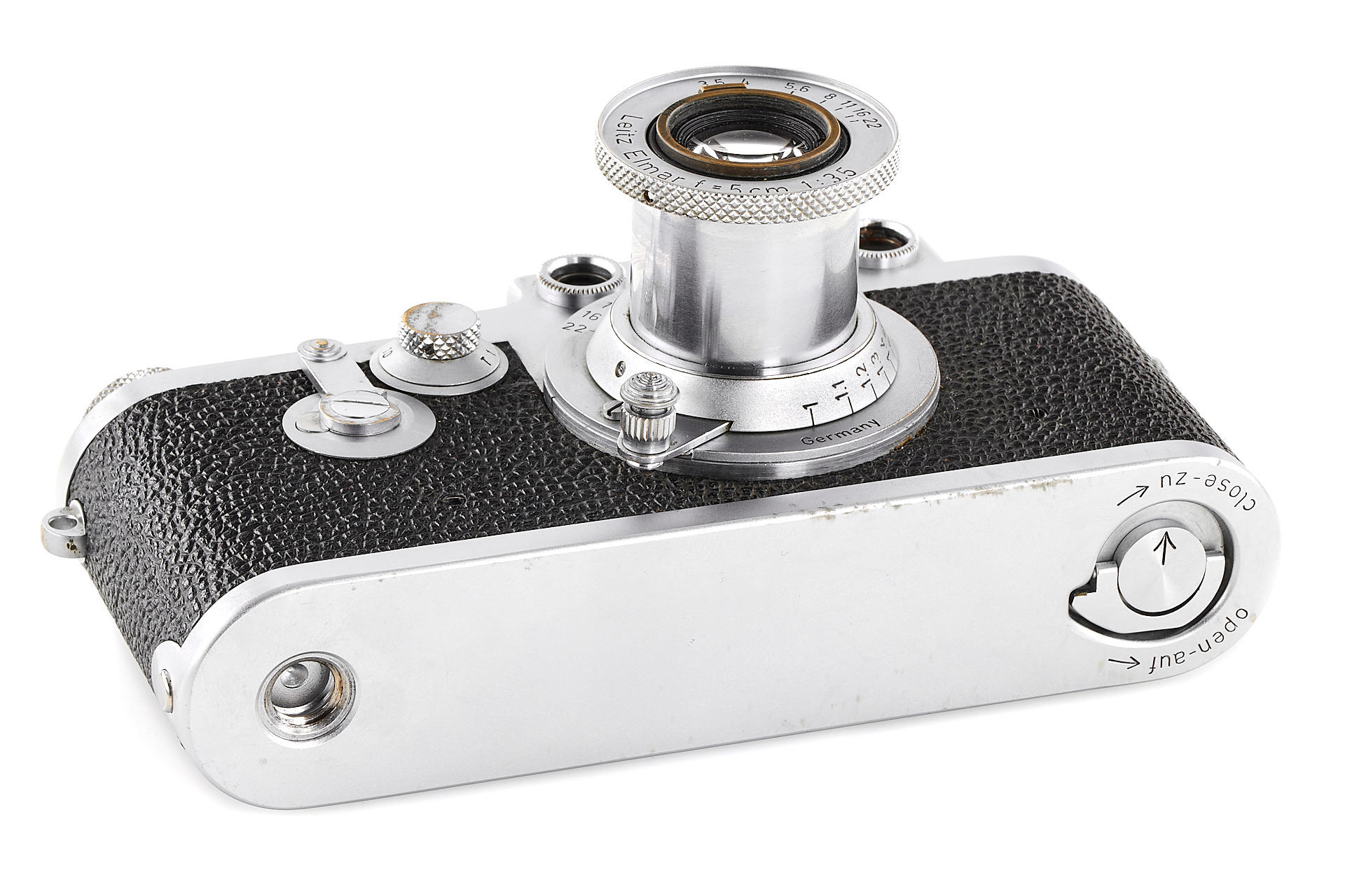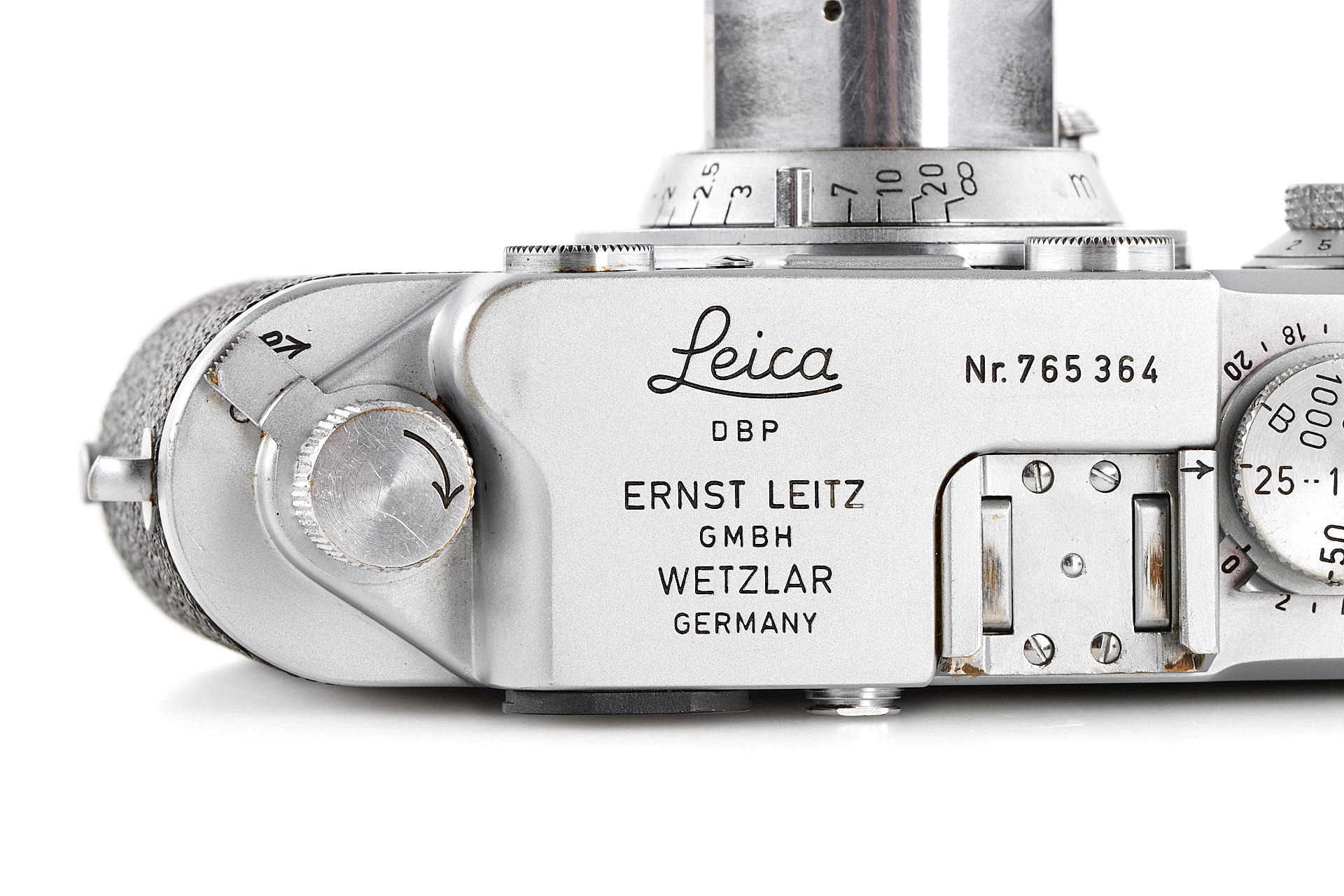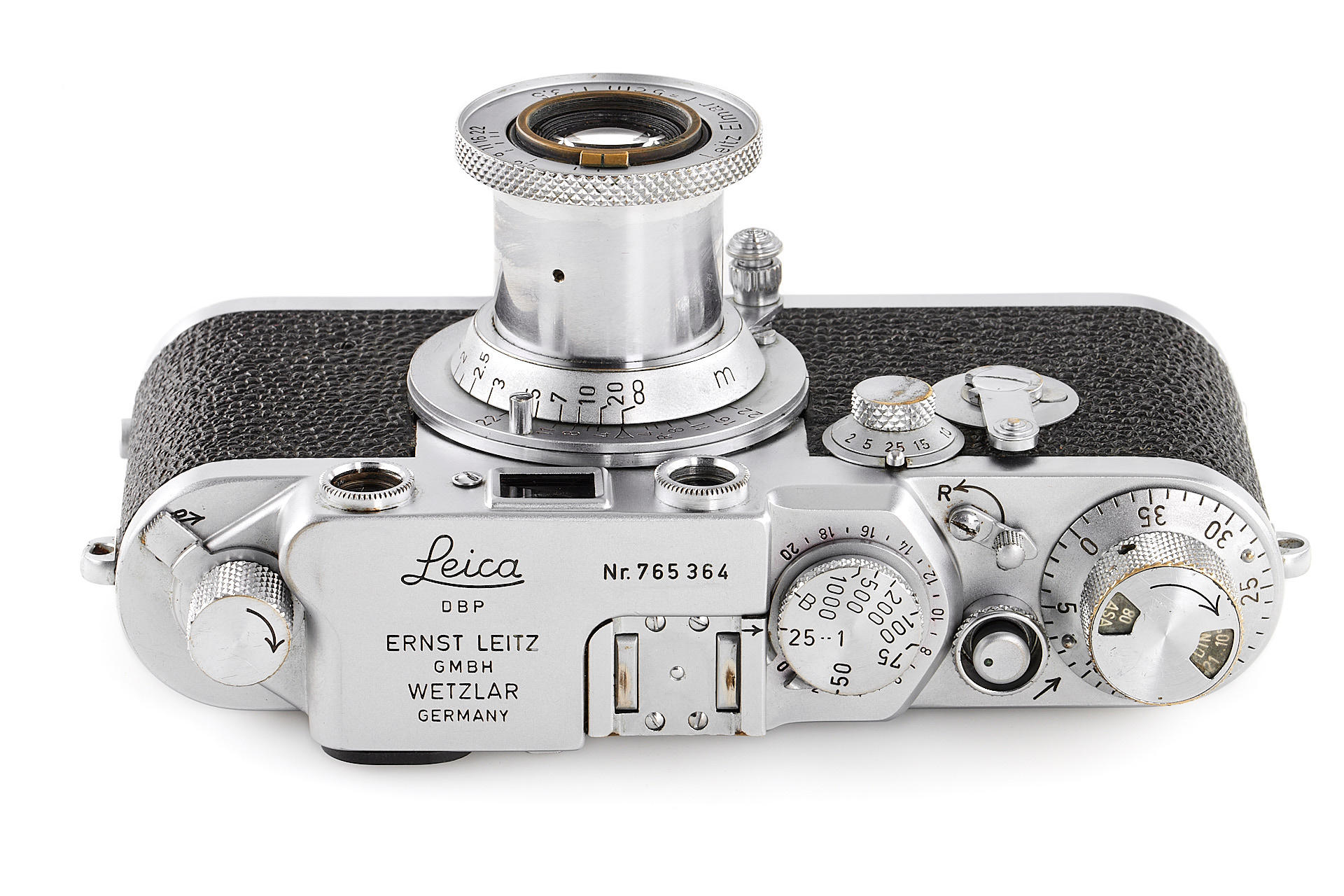 a quite late IIIf in very good condition and working order, with matching Elmar 3.5/5cm no.1244413, optics showing minimal cleaning marks on the front element, with front cap, FISON hood, leather case, German instructions and matching (both serial numbers!) red maker's box, first delivered to Vienna on 14.09.1955