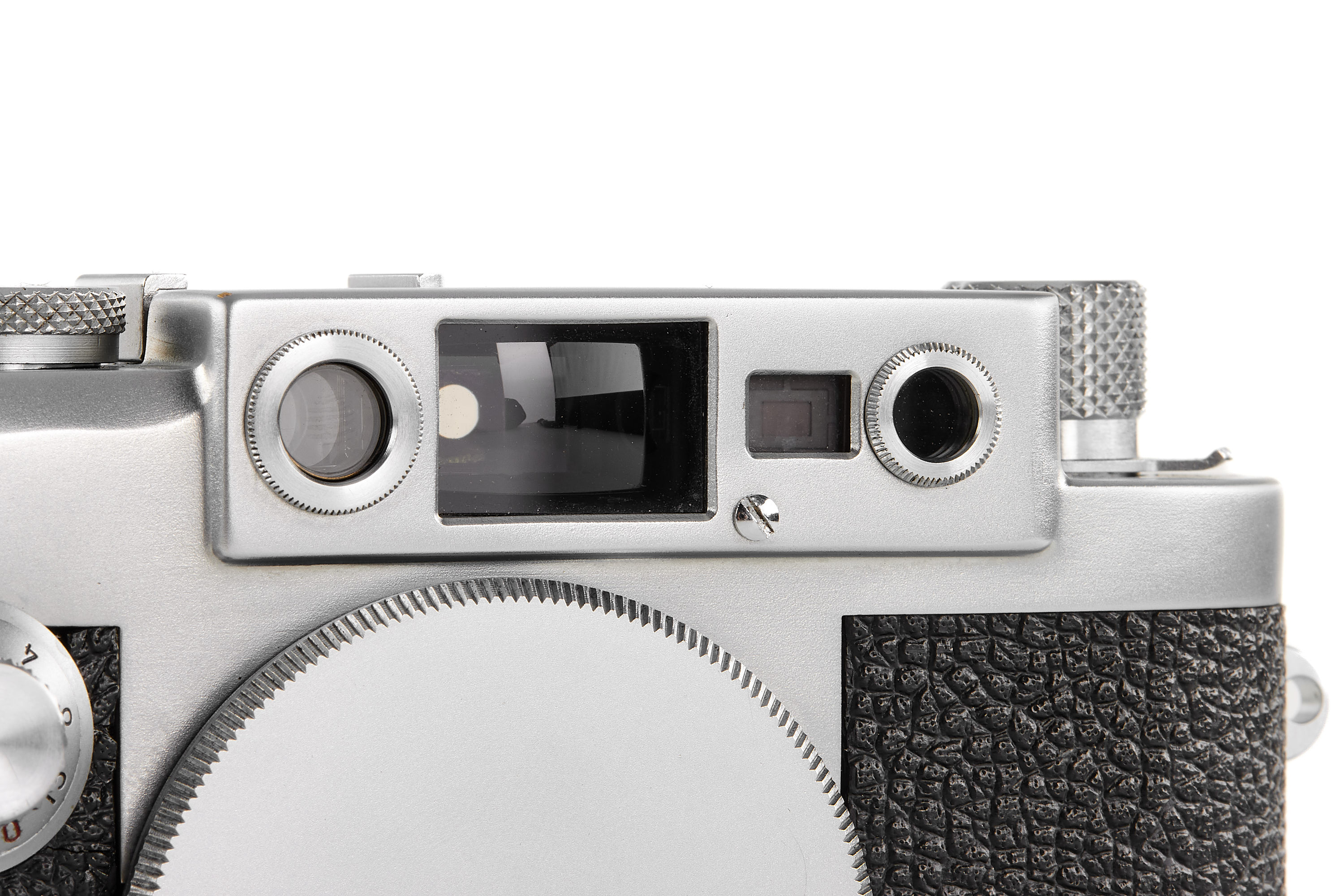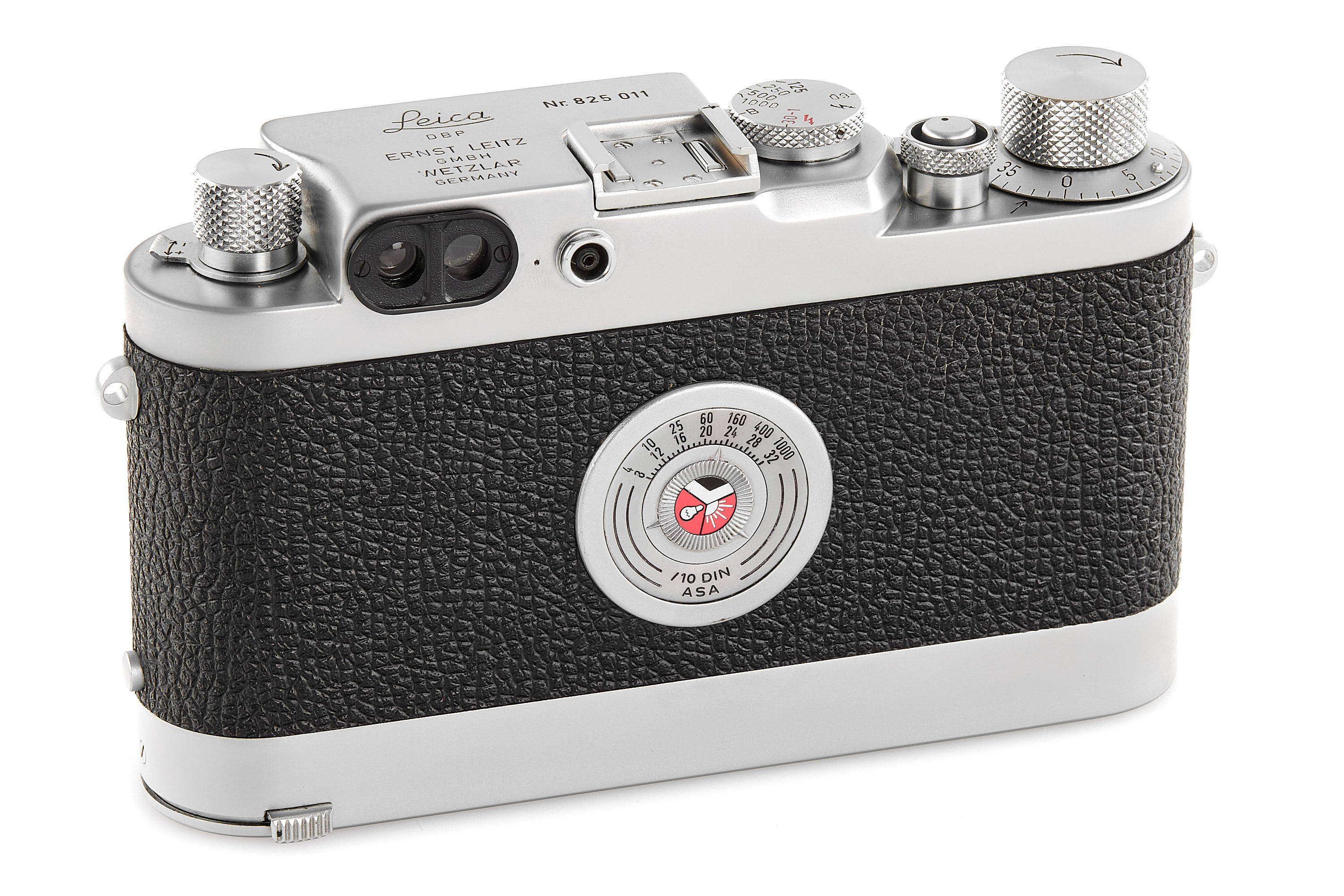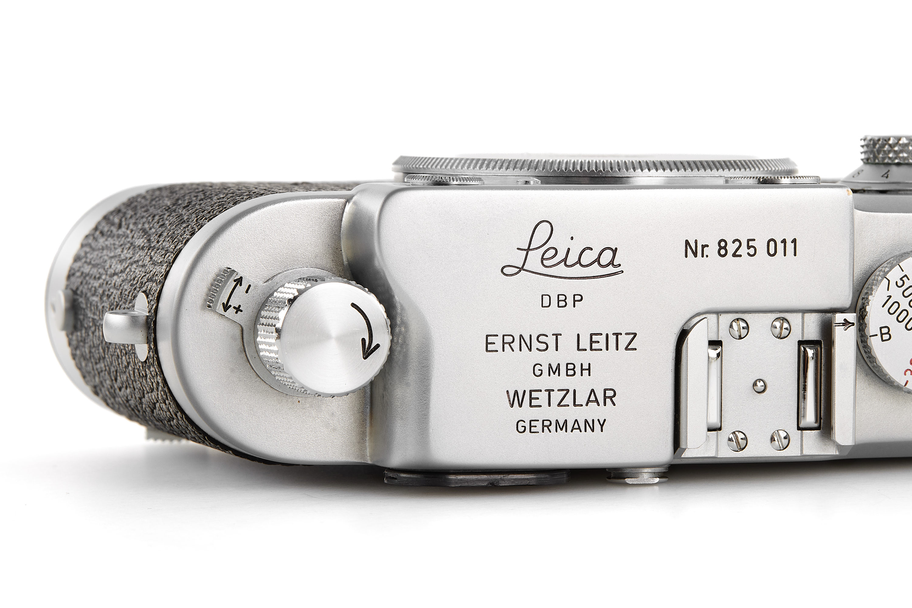 Beautiful Leica IIIg from the very first batch of production (nos.825001-826000), in absolutely mint condition and working order, delivered to Manca, New York, on 08.03.1957, with body cap engraved 'E. Leitz Wetzlar Germany', together with Leicavit chrome, Elmar 4/9cm chrome no.1035761 in feet scale, clean and clear optics with both caps, with matching SVGOO 9cm finder in feet scale.