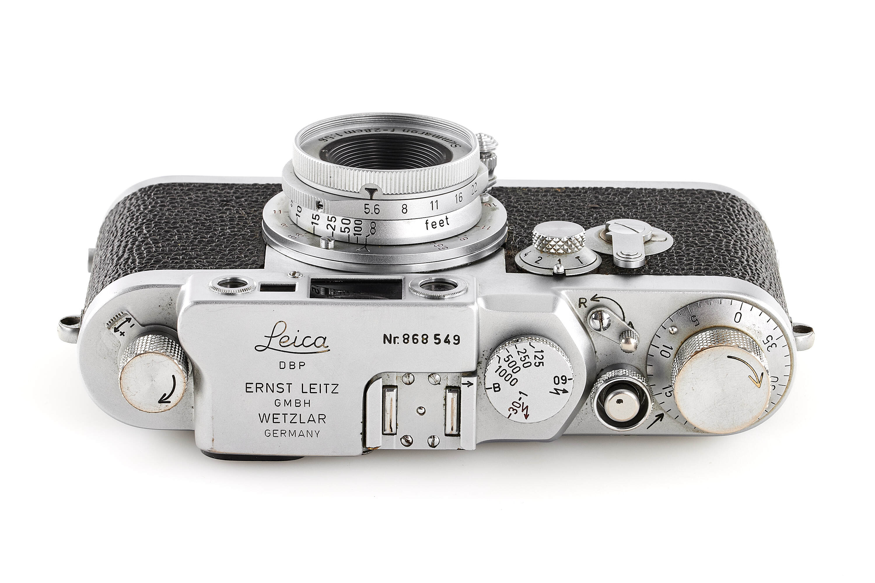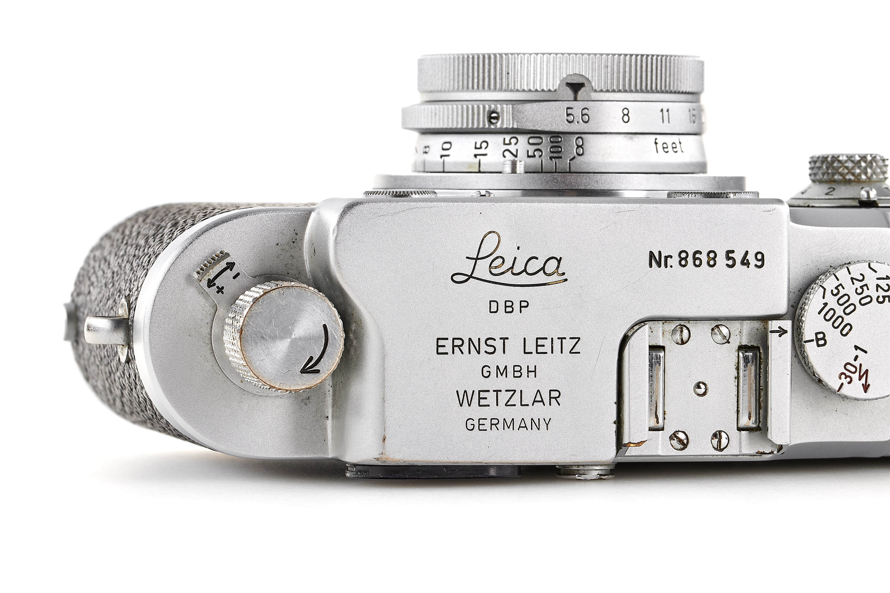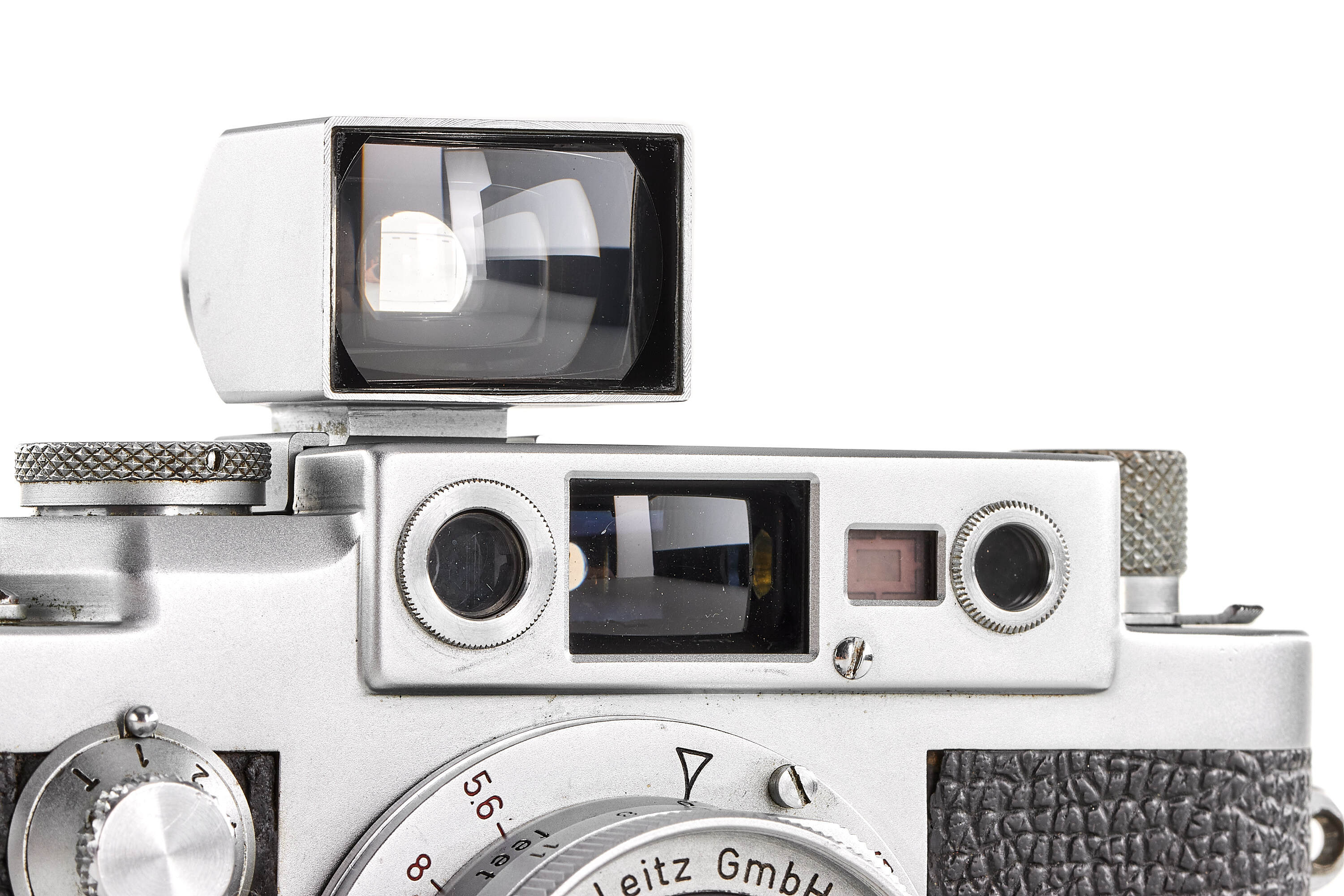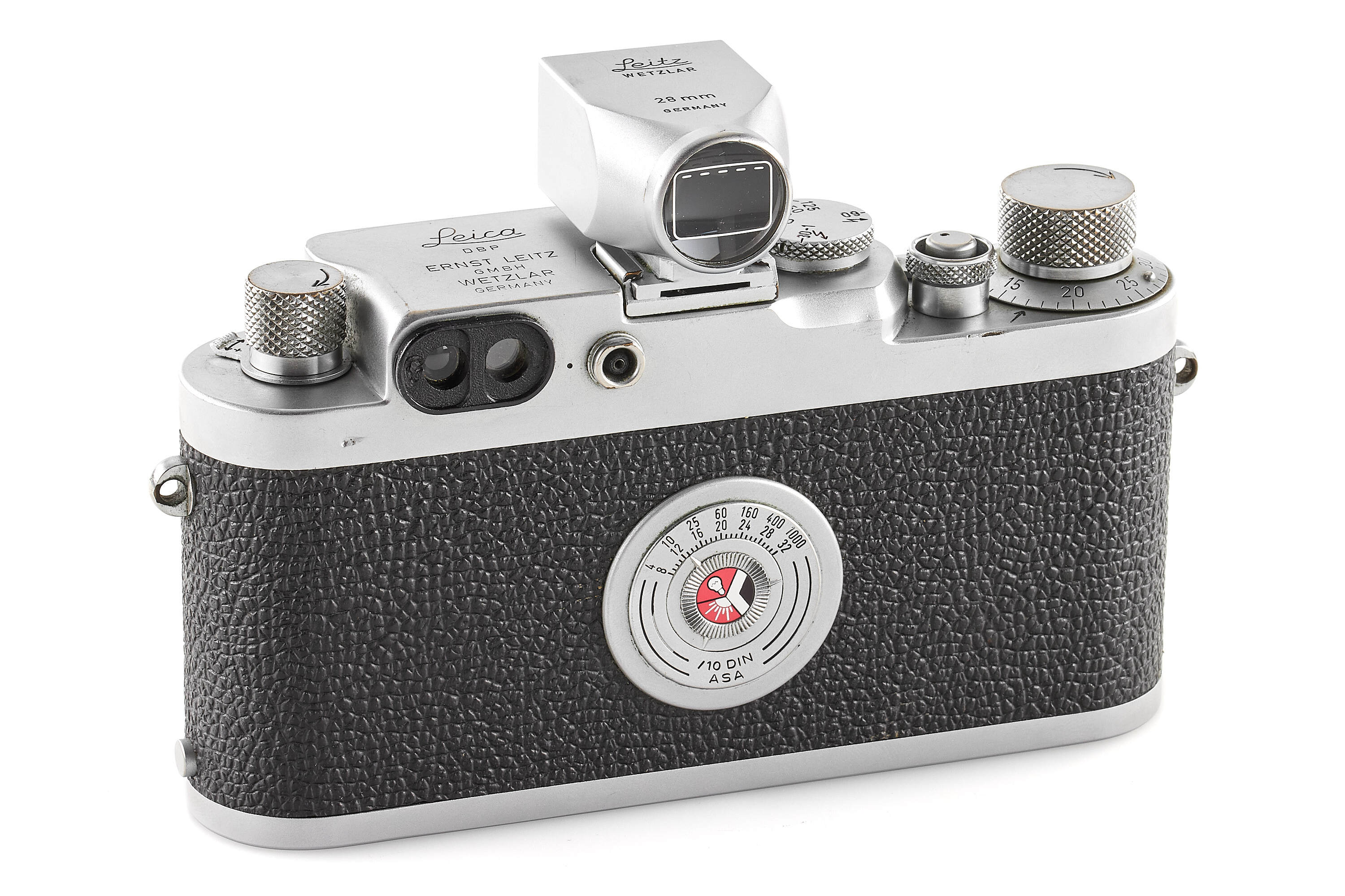 Nice Leica IIIg chrome in very good condition, only 2 light dents can be seen on the rear, delivered to Caracas, Venezuela, on 03.09.1957, note the interesting 3 first digits of the serial number that seem upside-down engraved, matching serial number on the chassis, with sought-after original Summaron 5.6/2.8cm no.1502331, feet scale, optics with cleaning marks, with hood and SLOOZ finder.