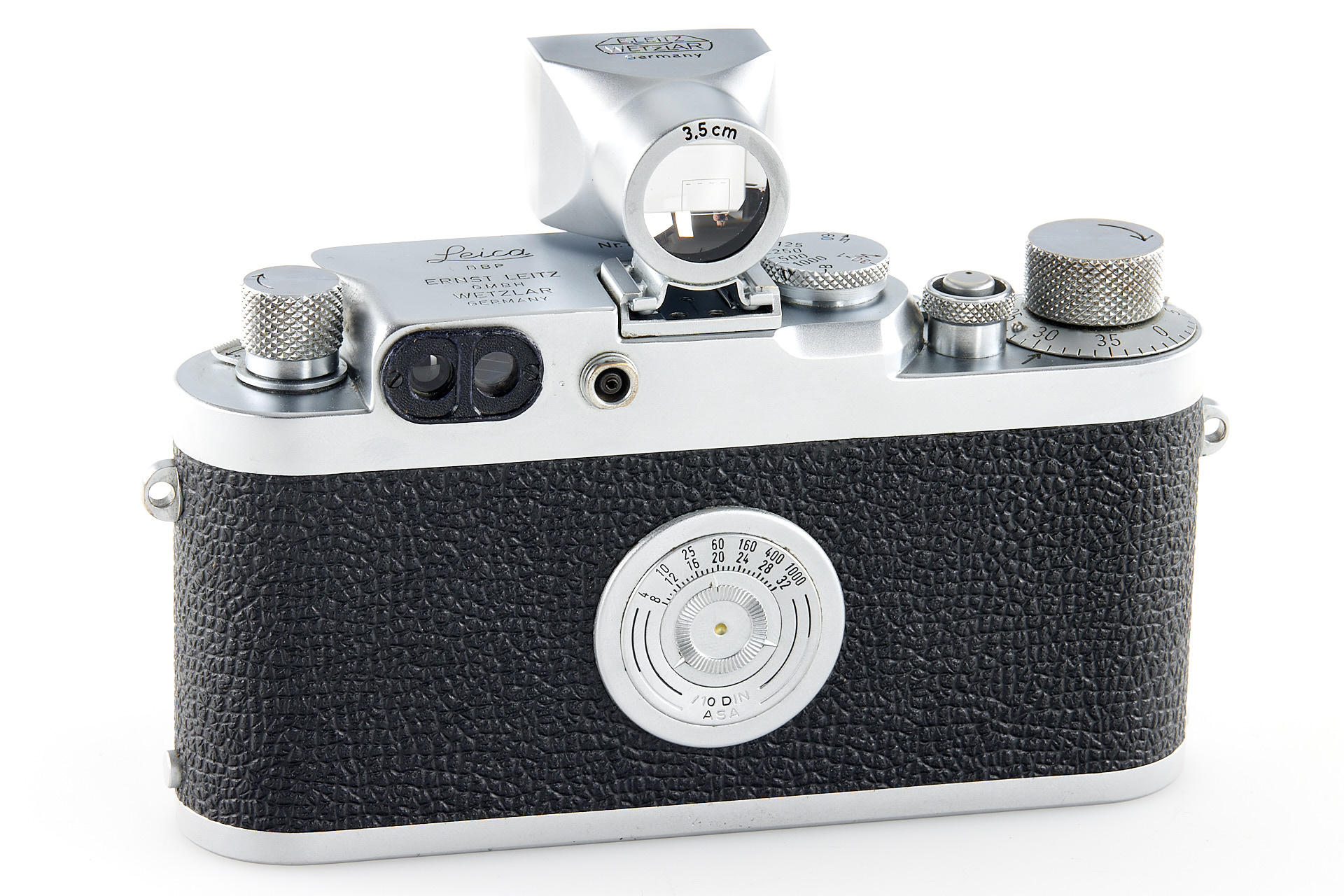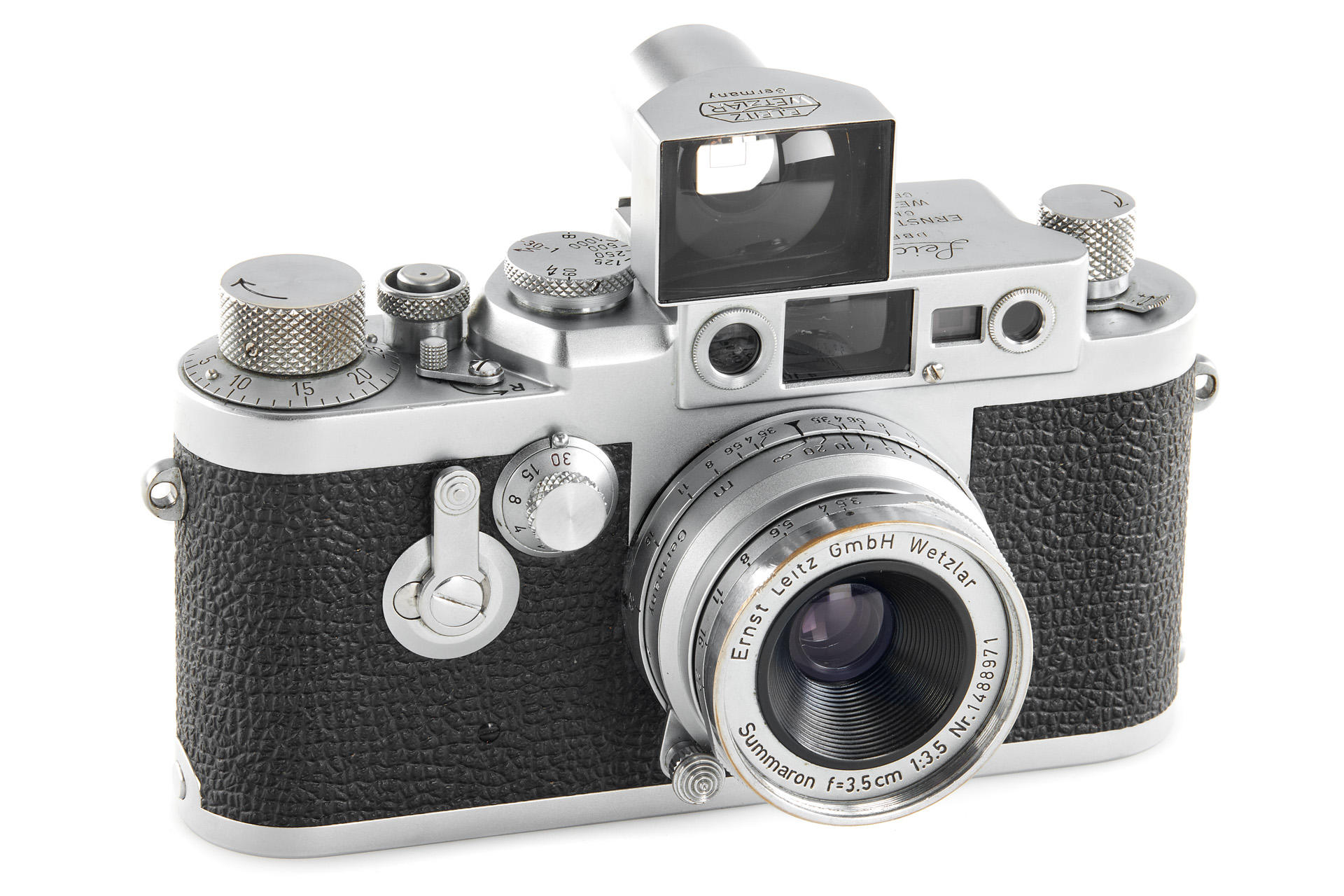 Body in very good working condition, with Screw-mount Summaron 3.5/3.5cm no.1488971 (slightly hazy, minimal dents in the filter rim - still usable, with yellow filter, cap), incl. SBLOO 35mm finder