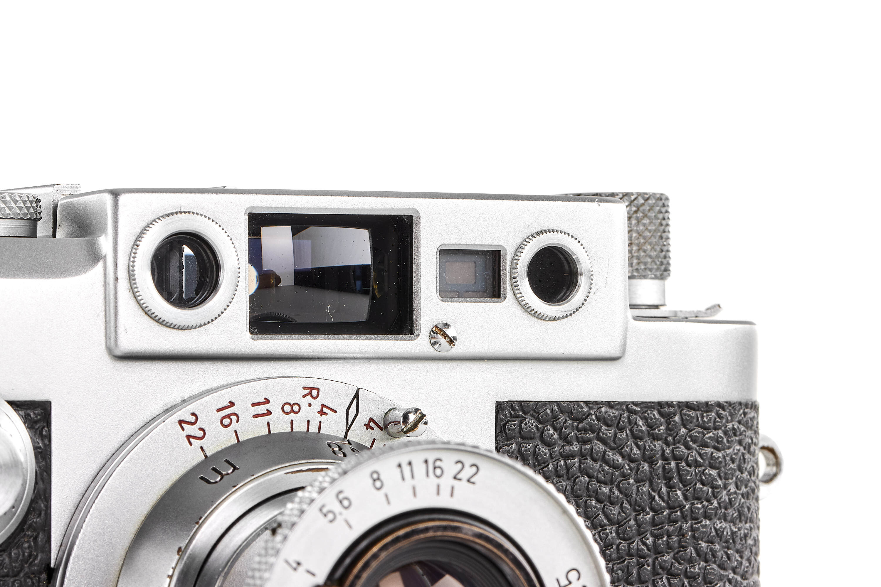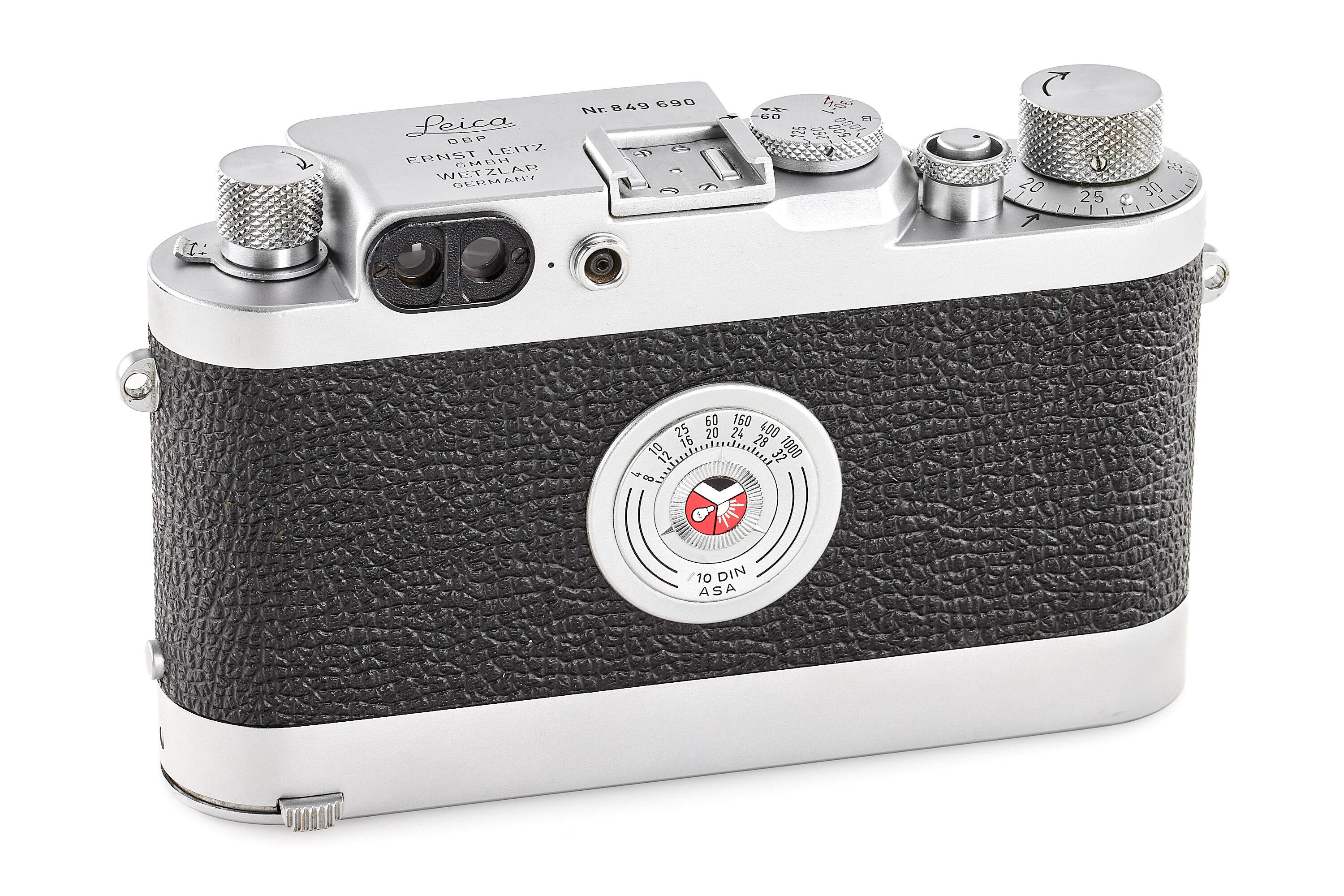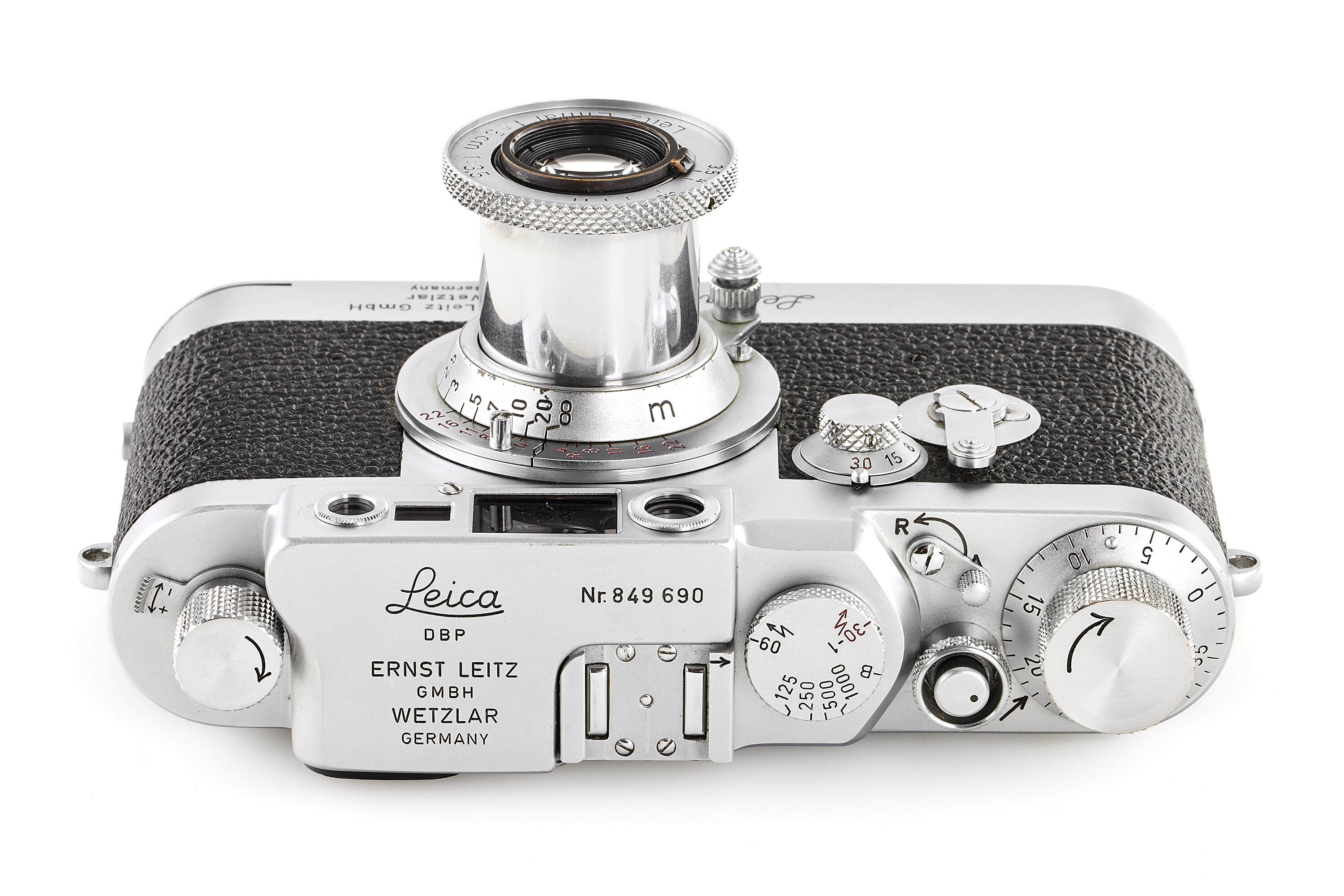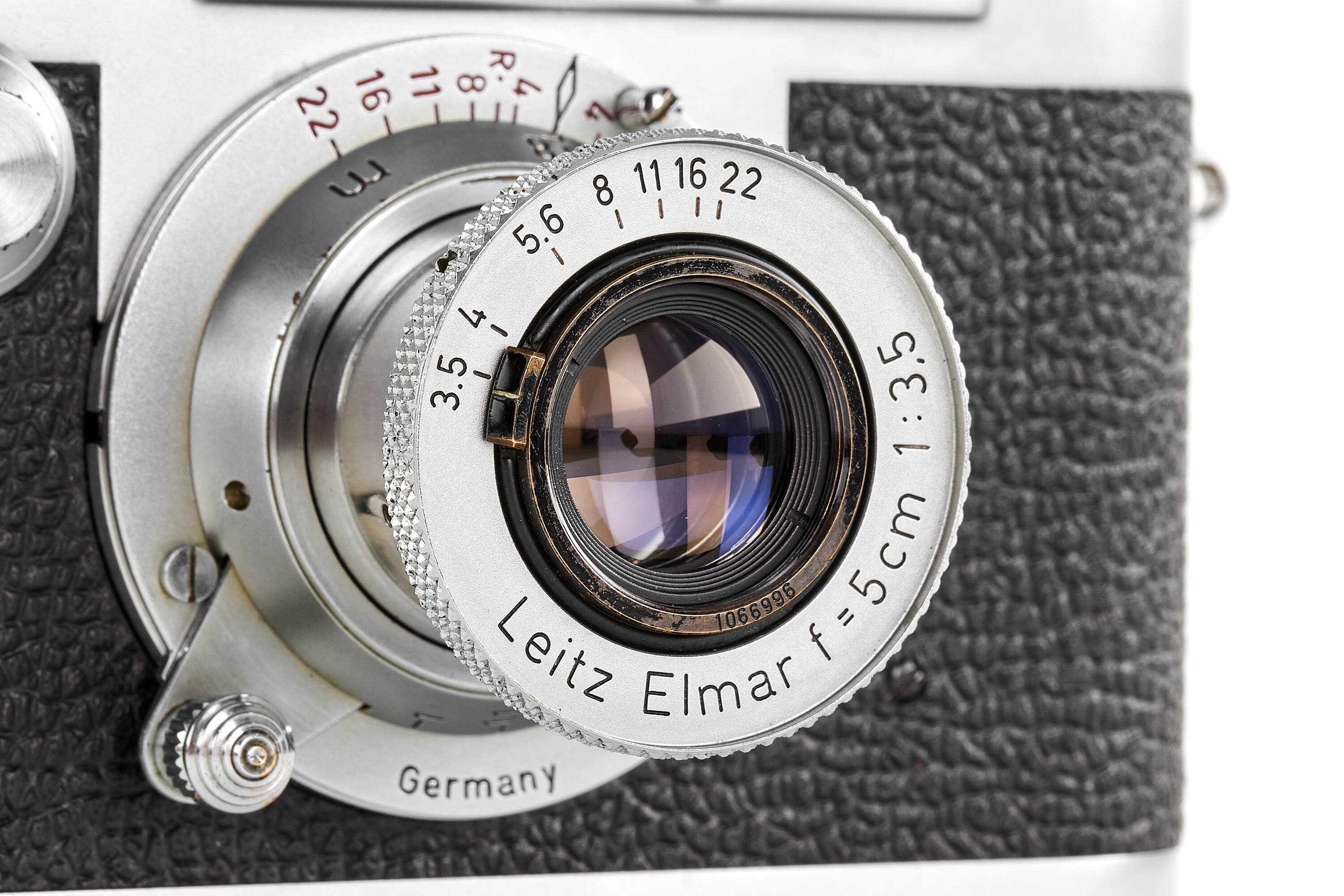 Very nice IIIg in almost mint condition, with leicavit rapid winder and Elmar red scale 3.5/5cm no.1066996, meter version, good optics, with chrome FISON and front lens cap.