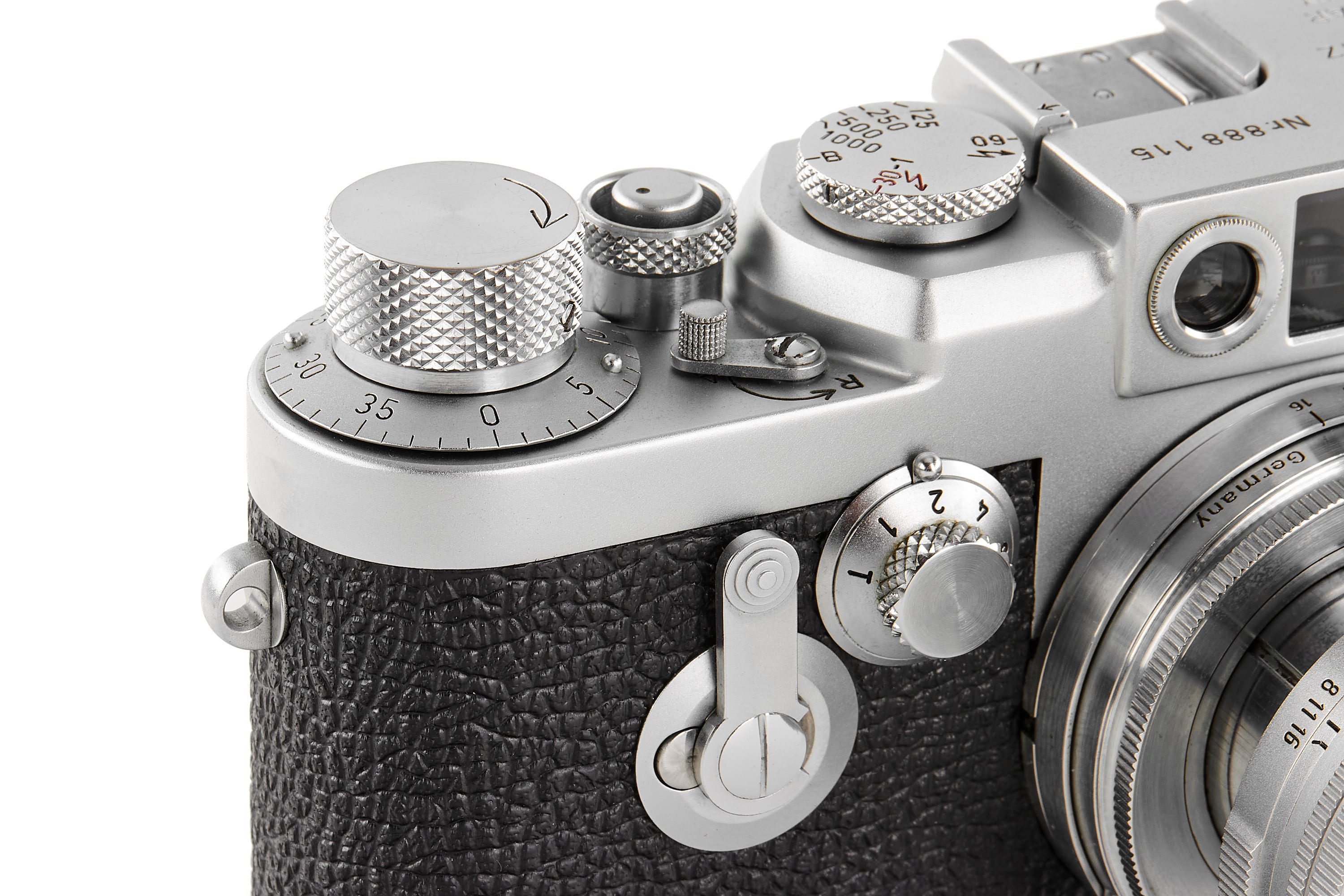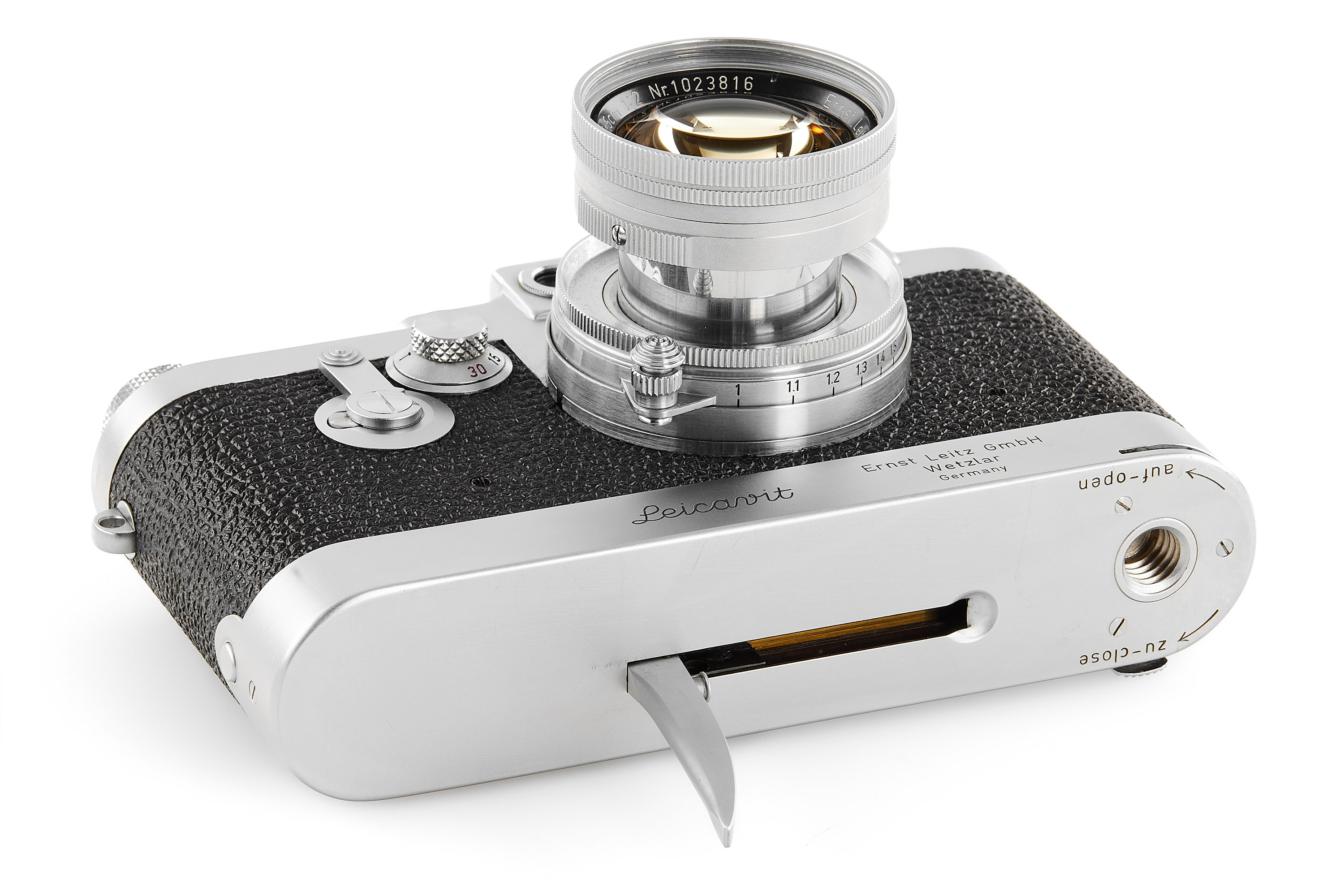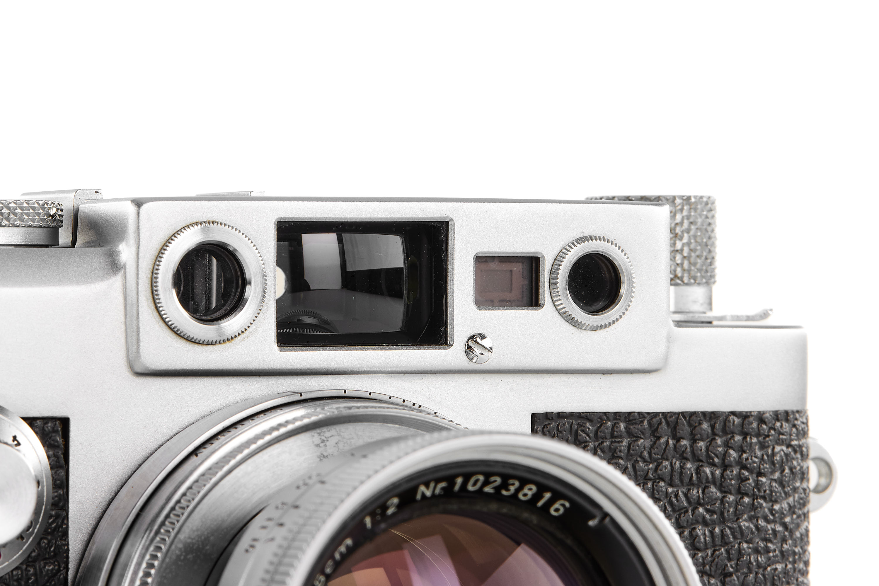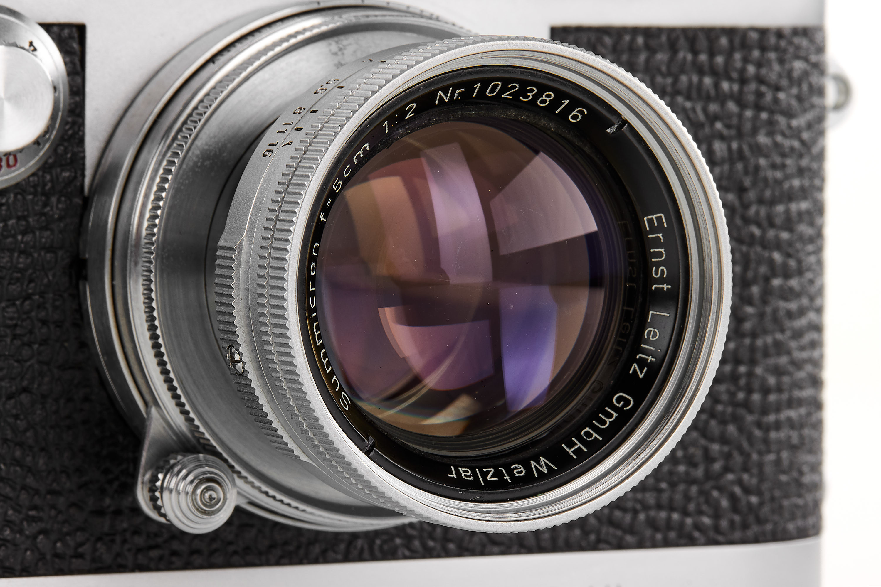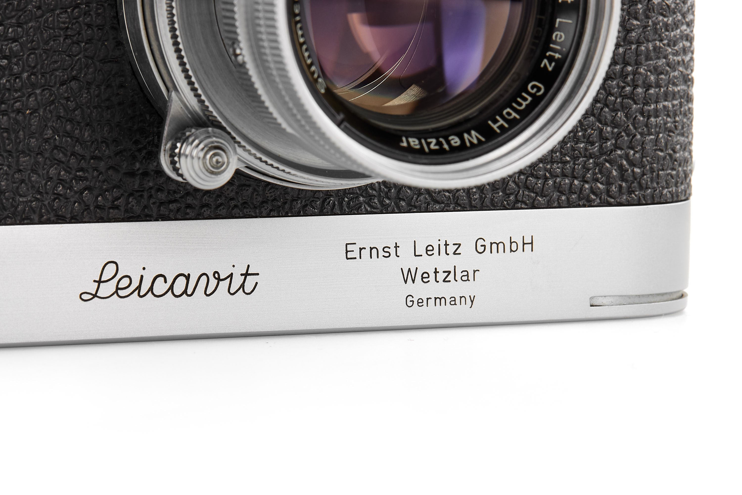 Beautiful IIIg in mint condition and working order, with sought-after Summicron 2/5cm no.1023816 with Thorium lenses, optics showing a very light haze, with front lens cap with custom engravings, with leicavit rapid winder.