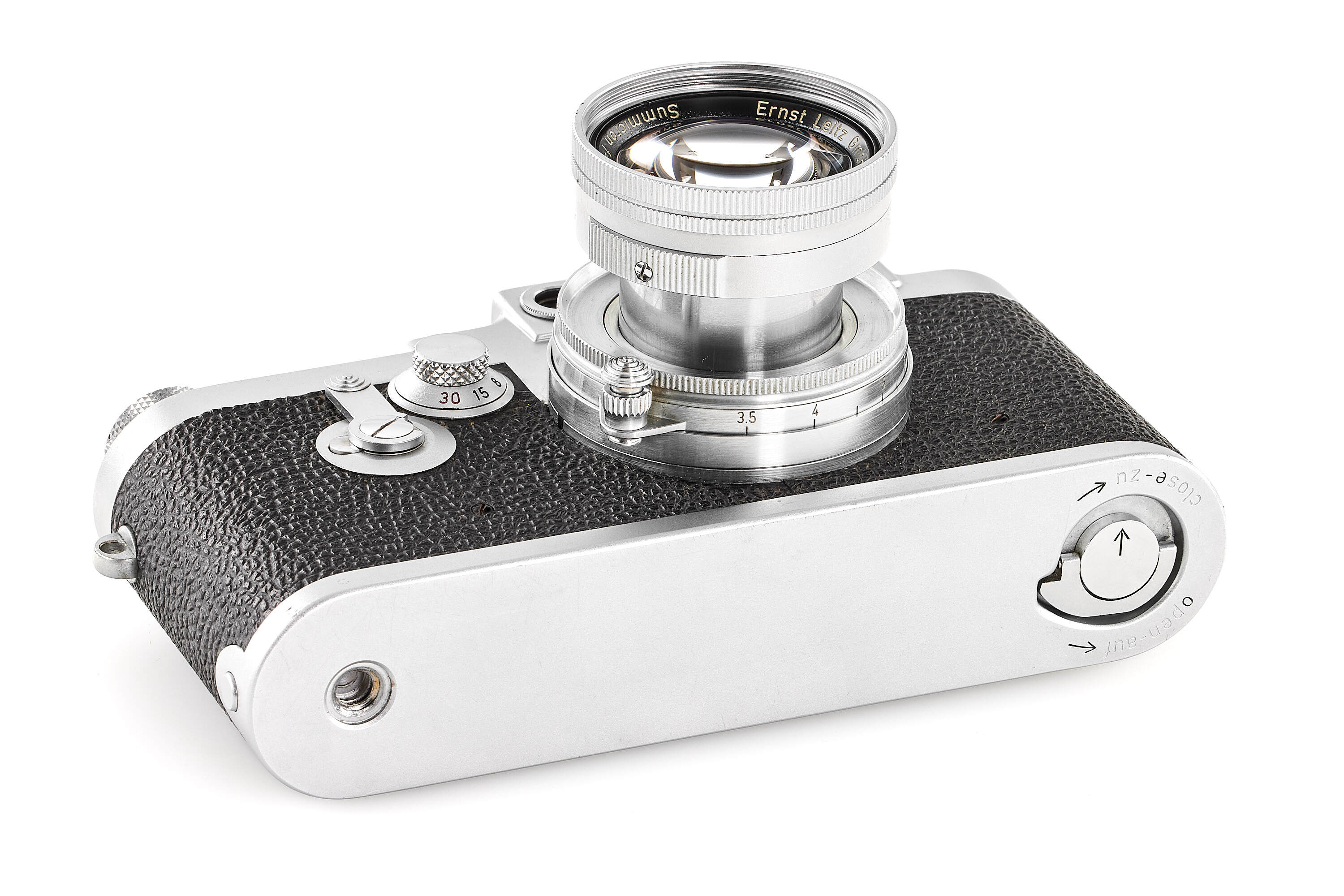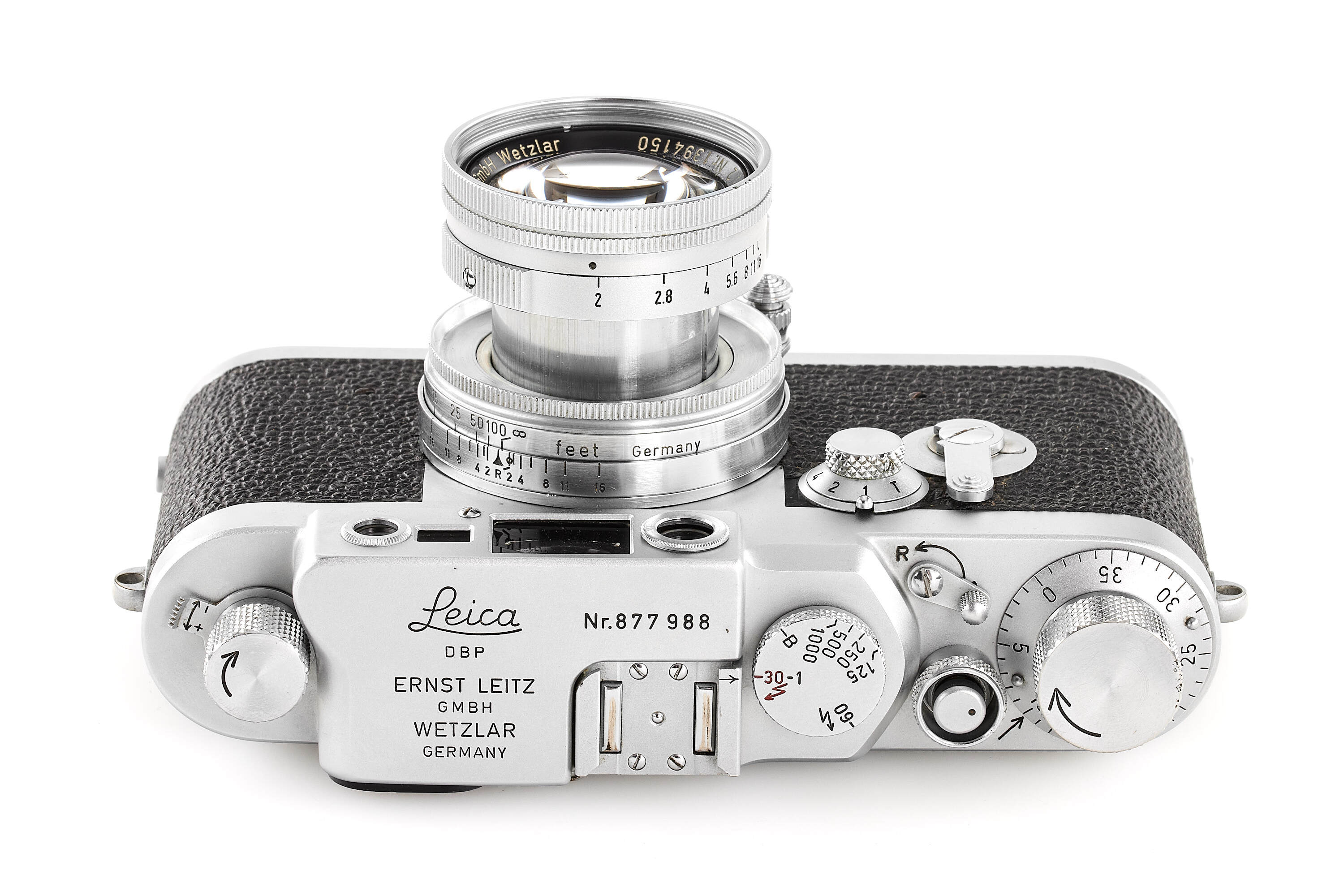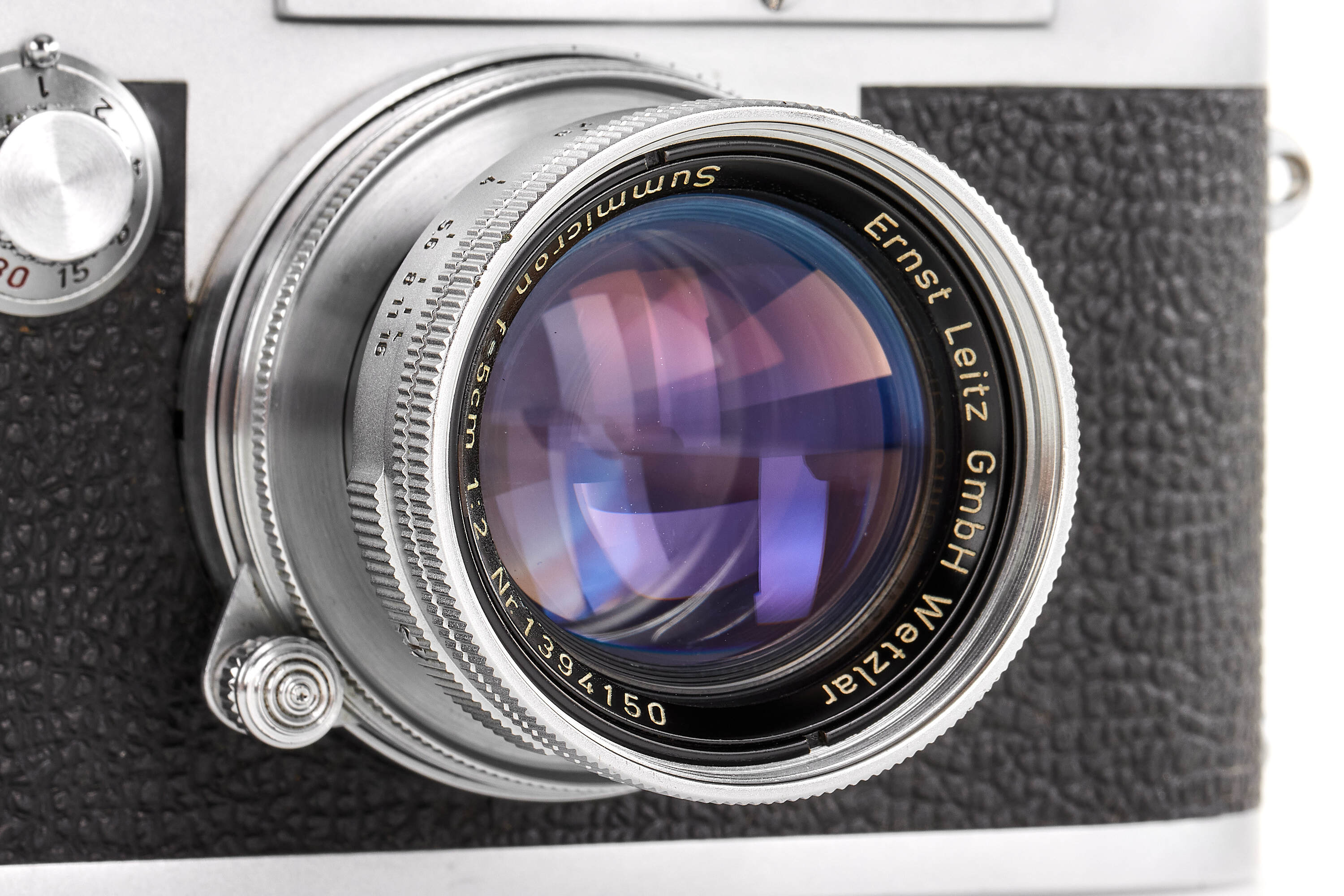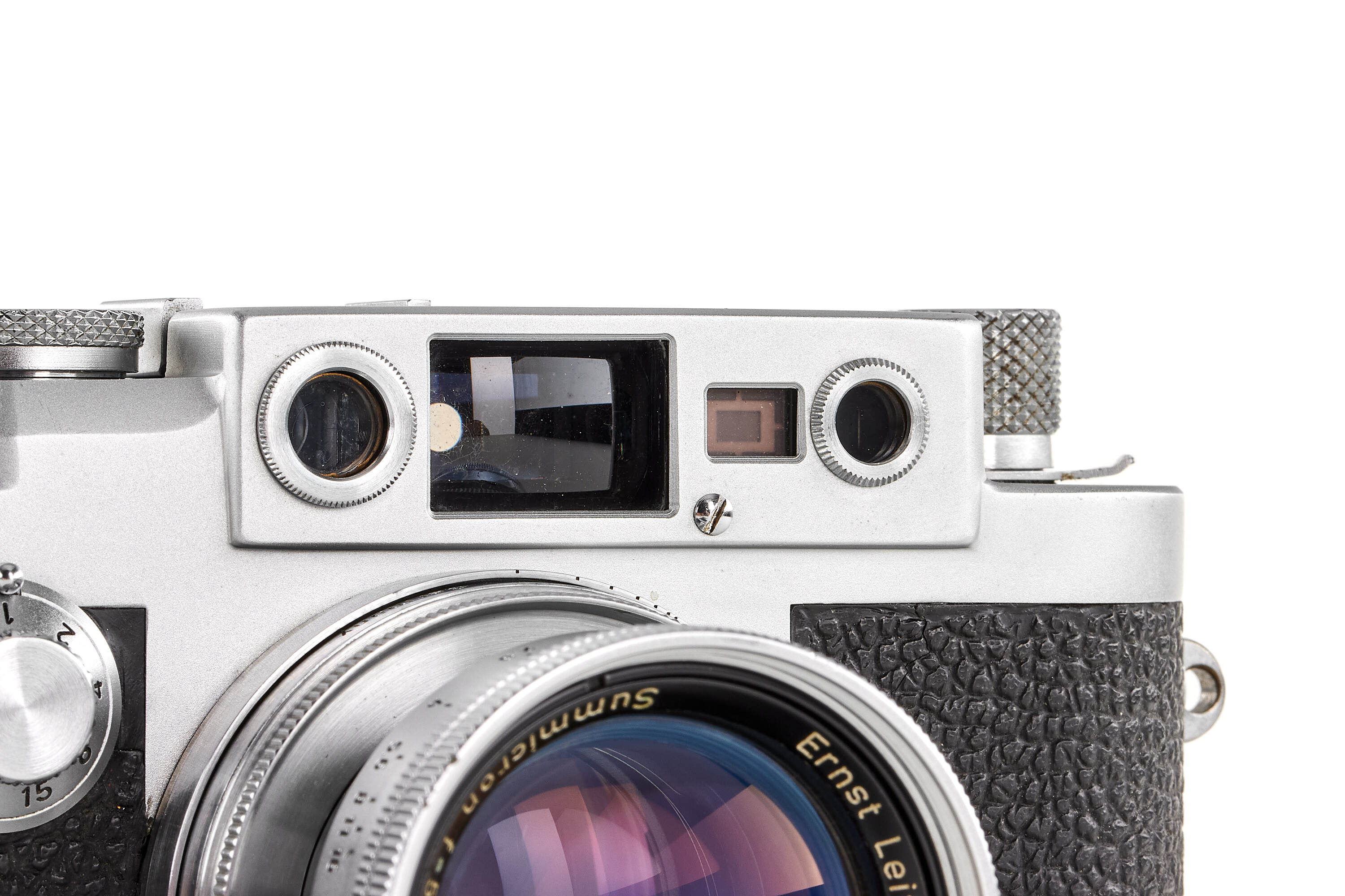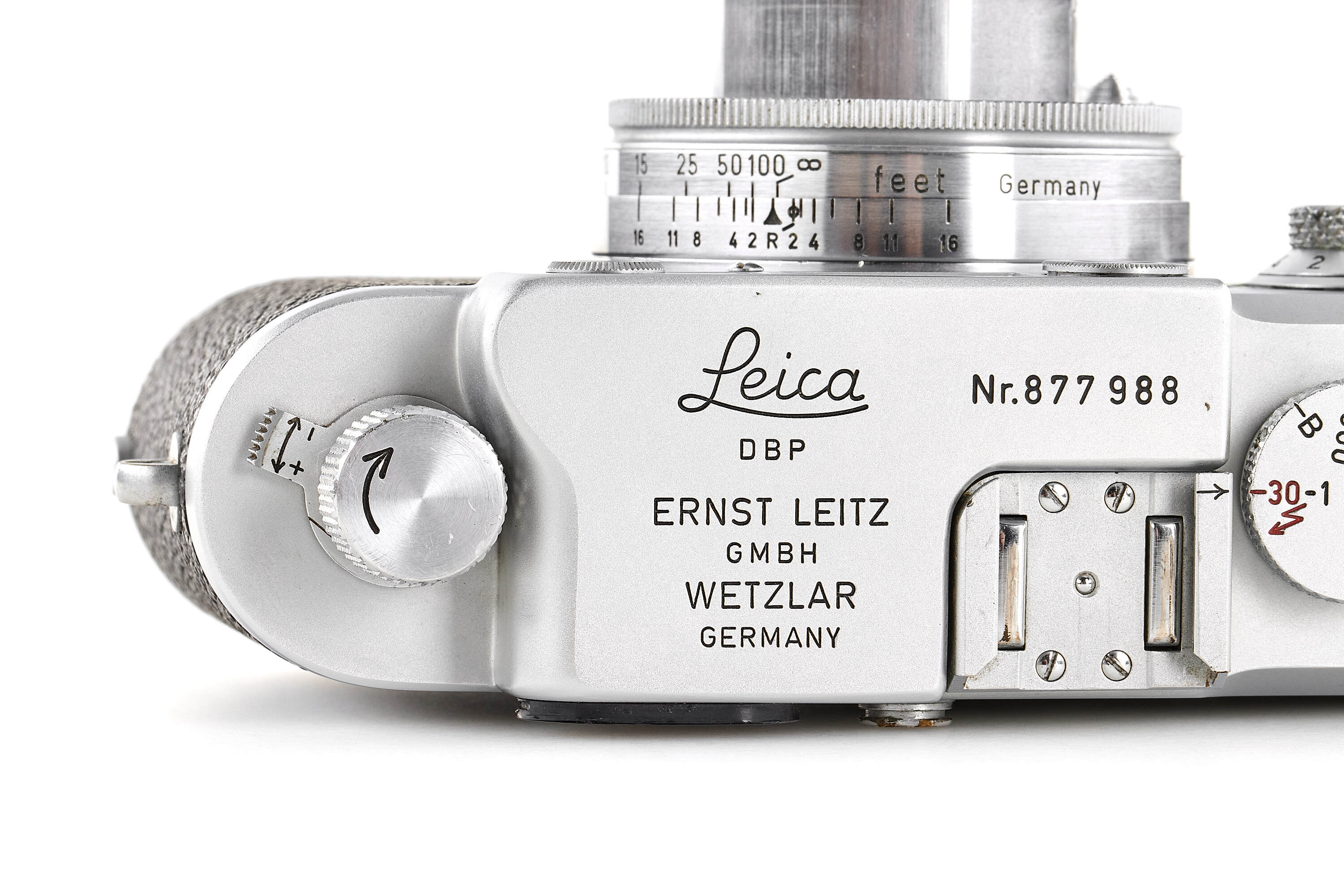 Beautiful IIIg in mint condition, the shutter needs attention, delivered to Manca, New York on 29.10.1958, together with Summicron 2/5cm no.1394150 in feet scale, good optics only showing a couple of razor-thin cleaning marks.