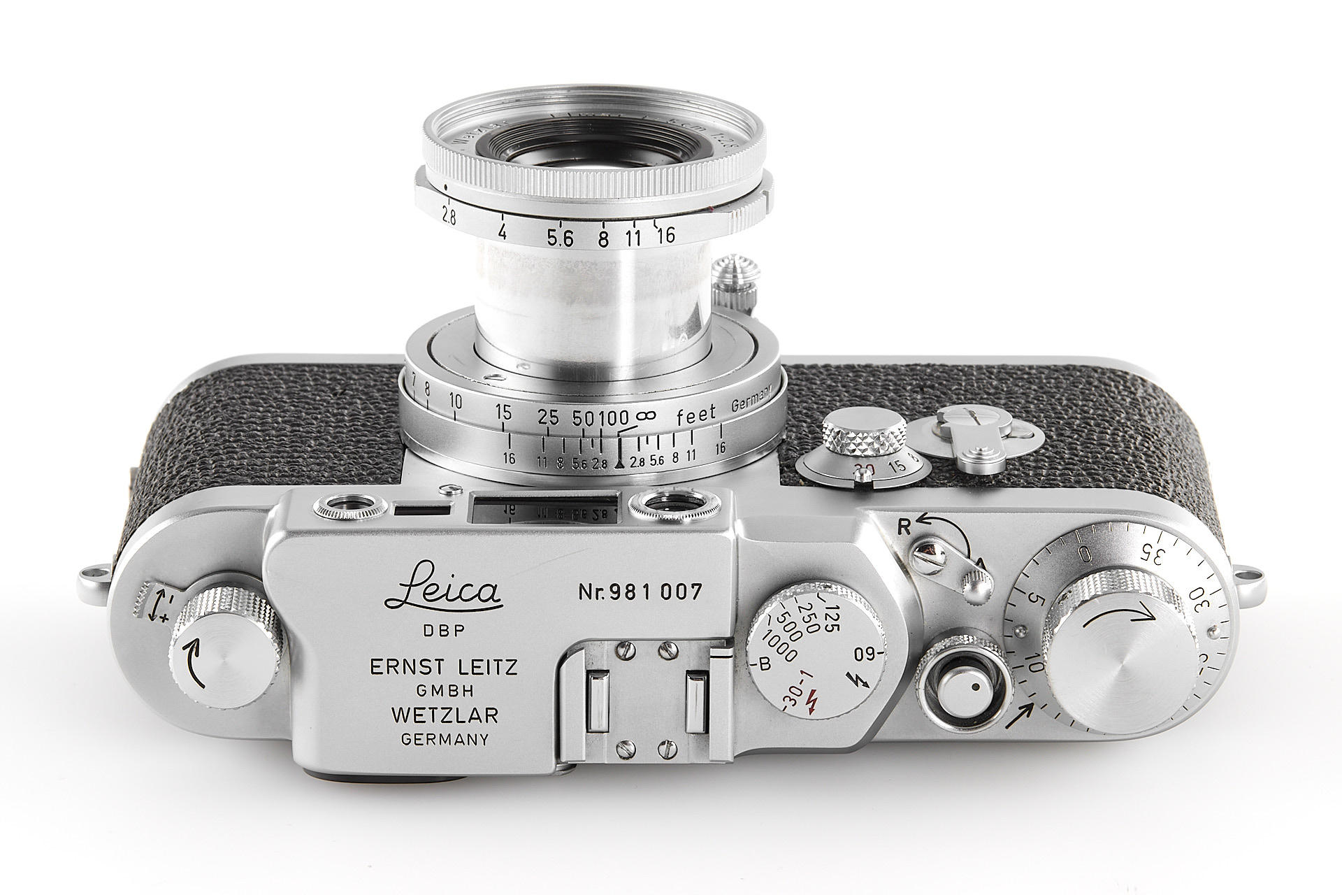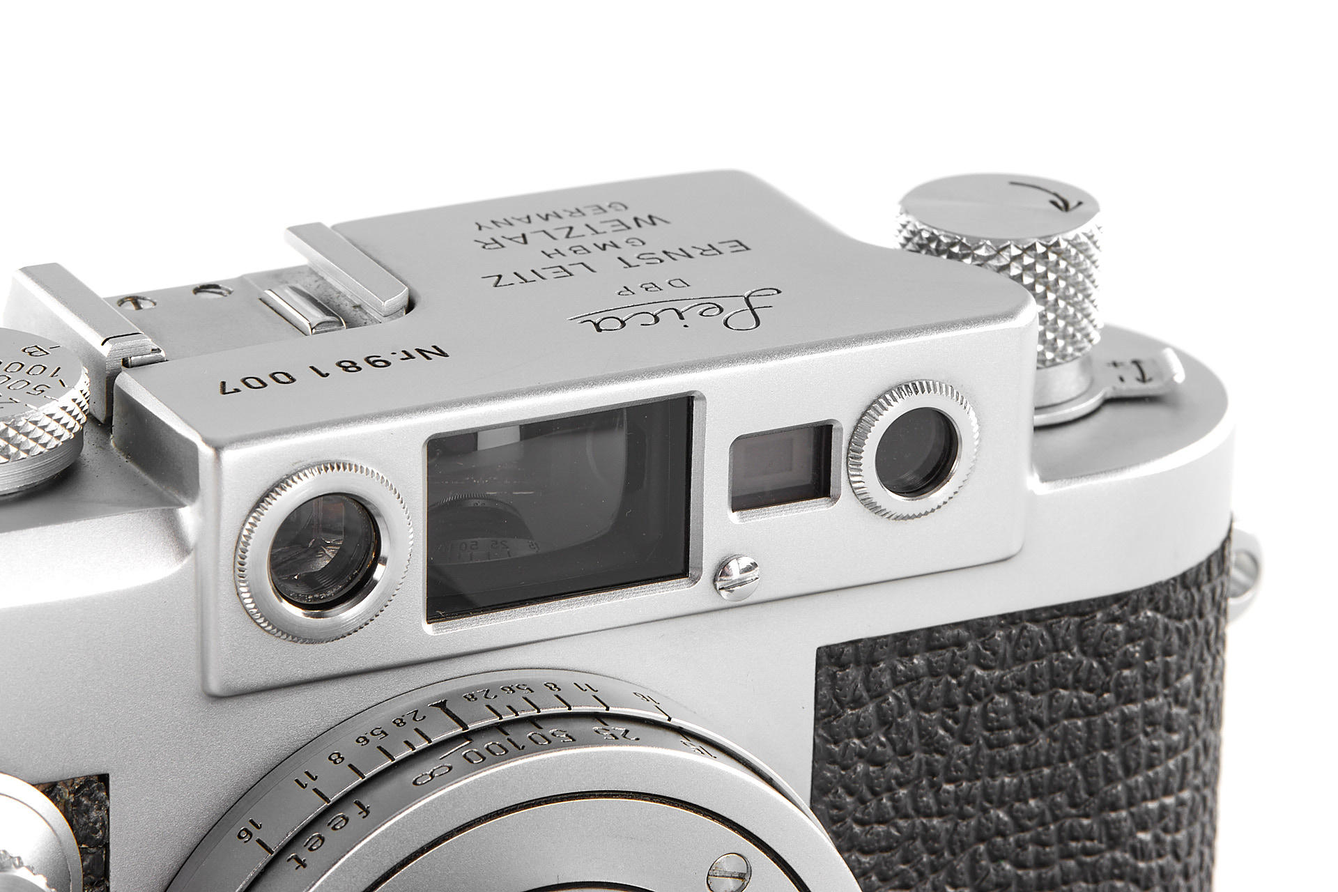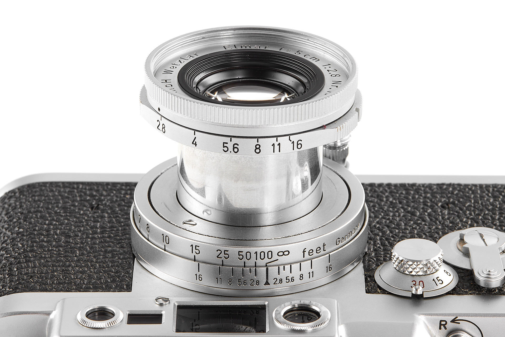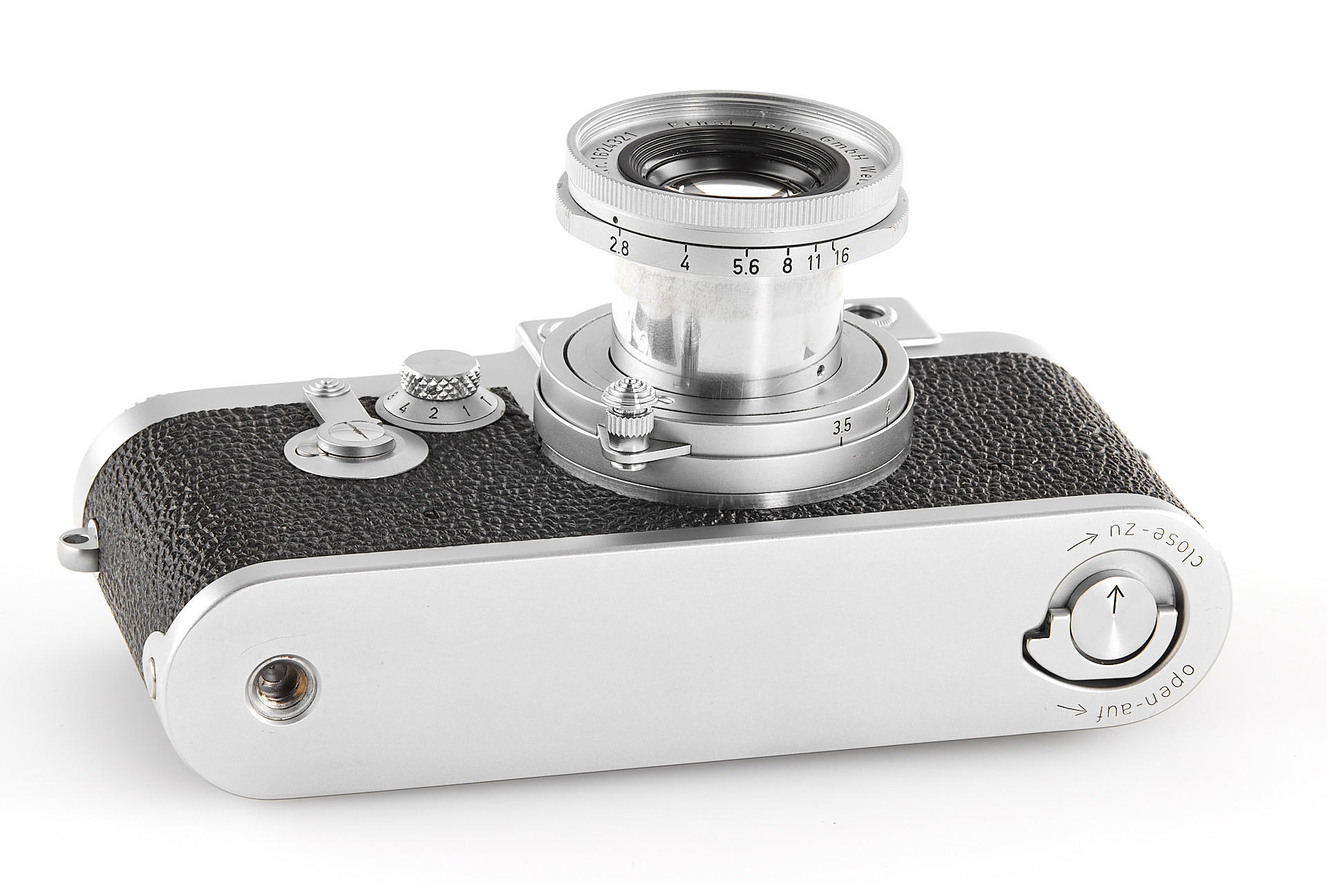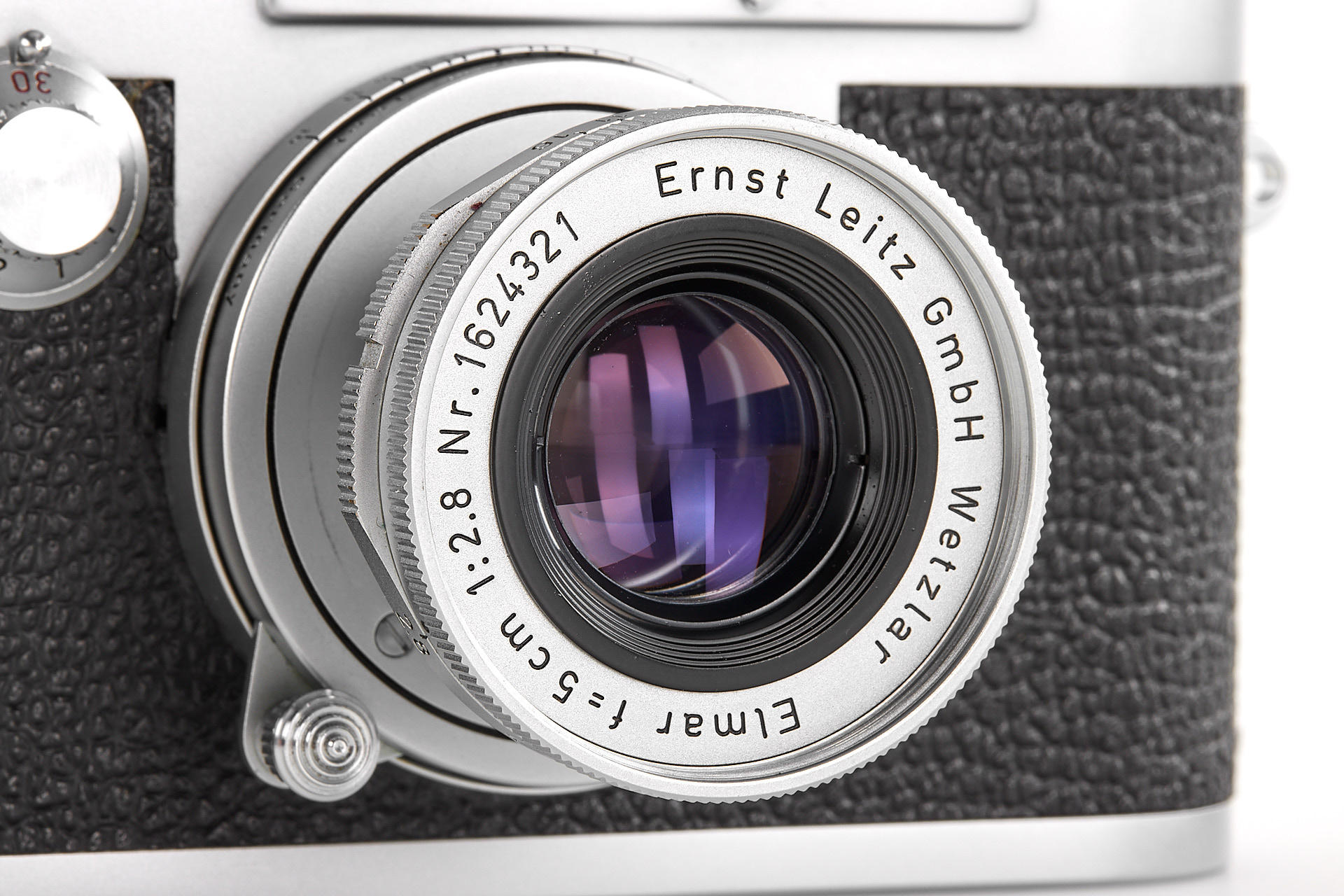 chrome body in beautiful, almost perfect condition and good working order, with near-mint Elmar 2.8/5cm no.1624321 (very good optics, front cap)