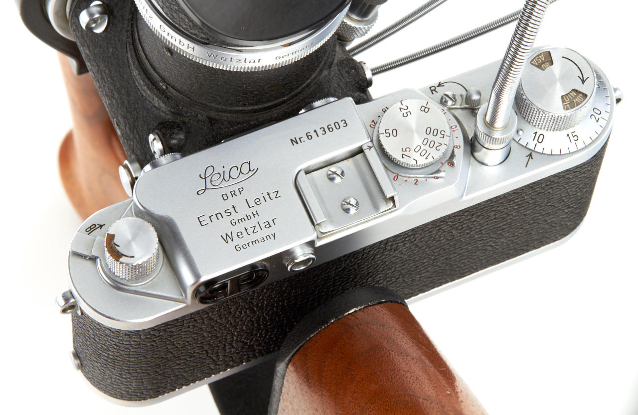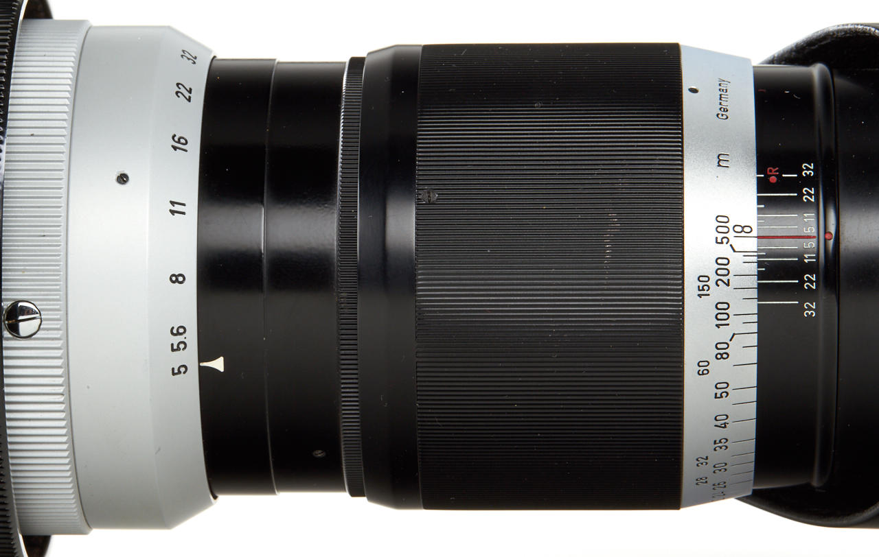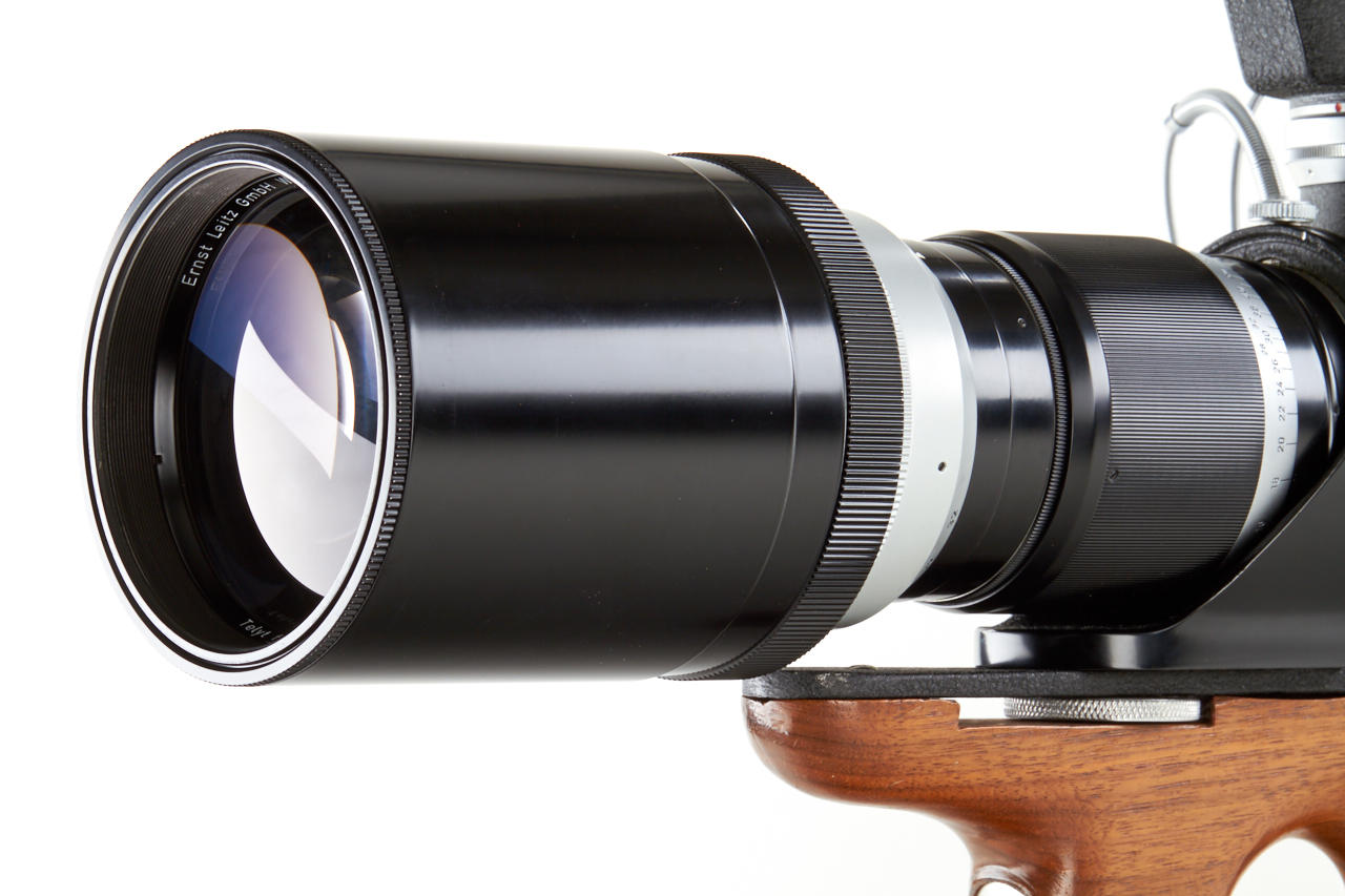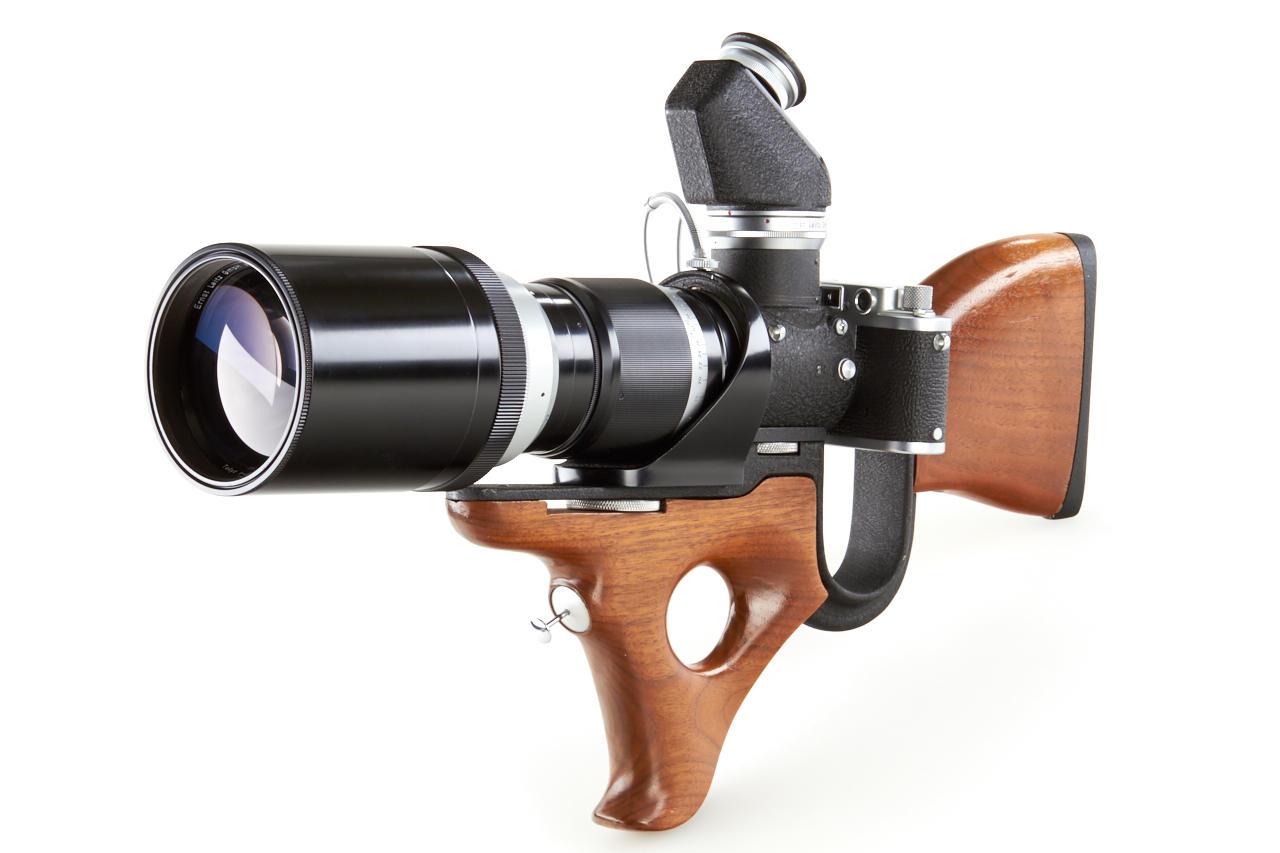 The complete set includes a matching Leica IIf no. 613603 and the Telyt 5/40 cm no. 1486109 (hood), Visoflex I no. 33925 with 45° PEGOO, SABRE gunstock with cable release – all in perfect condition. LITERATURE James L. Lager (ed.), Leica Illustrated History, Vol. II, Lenses, 1994, p. 188. The “Sabre Photographic Supply Company“, located in the state of Illinois in the USA, only produced the well known “Sabre Stock” Leica rifle, custom-made for the screw-mount and M-series Leicas, for one year (1956 to 1957), but this was never officially sold by Leitz. Therefore, we can only estimate how many of these were sold in the USA – conservative estimates ranging between two and three dozen. However, the “Sabre Stock”, painstakingly crafted in keeping with Leitz quality standards, was not only a piece of well thought-out photographic equipment for Leica cameras, but is also a joy to behold for any lover of high precision products. The use of high-quality materials as well as great accuracy and precision in its making led to a handy Leica rifle, sure to fascinate any Leica fan to this day.