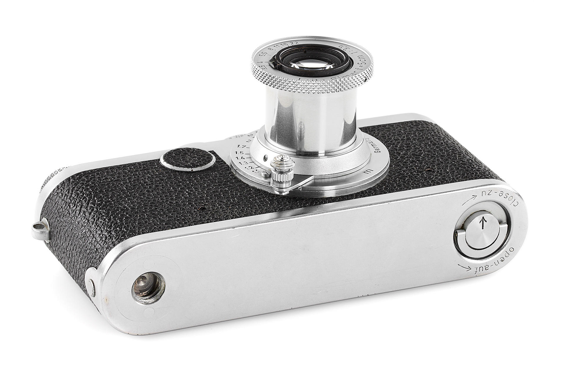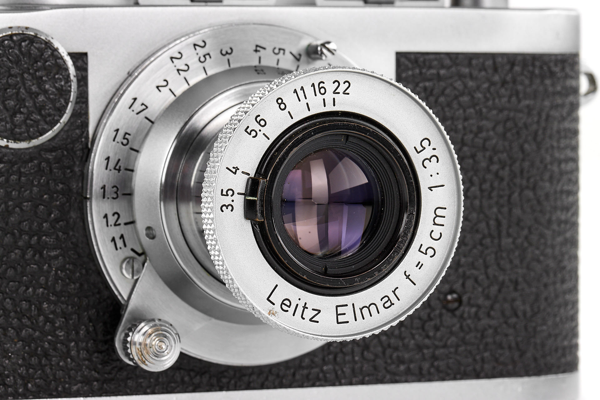 Highly collectable camera wearing the very first Leica Ic serial number with '*', denoting a double delivery (!), in near mint condition and working order, with Elmar 3.5/5cm no.1003653, SBOOI 5cm finder, FISON hood and front cap