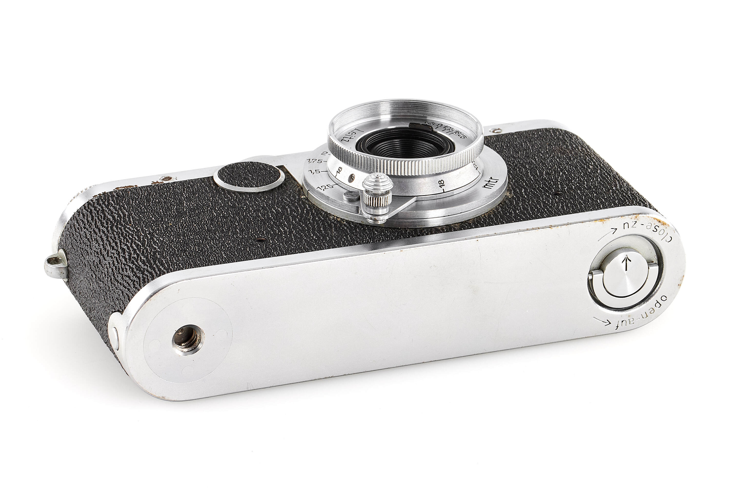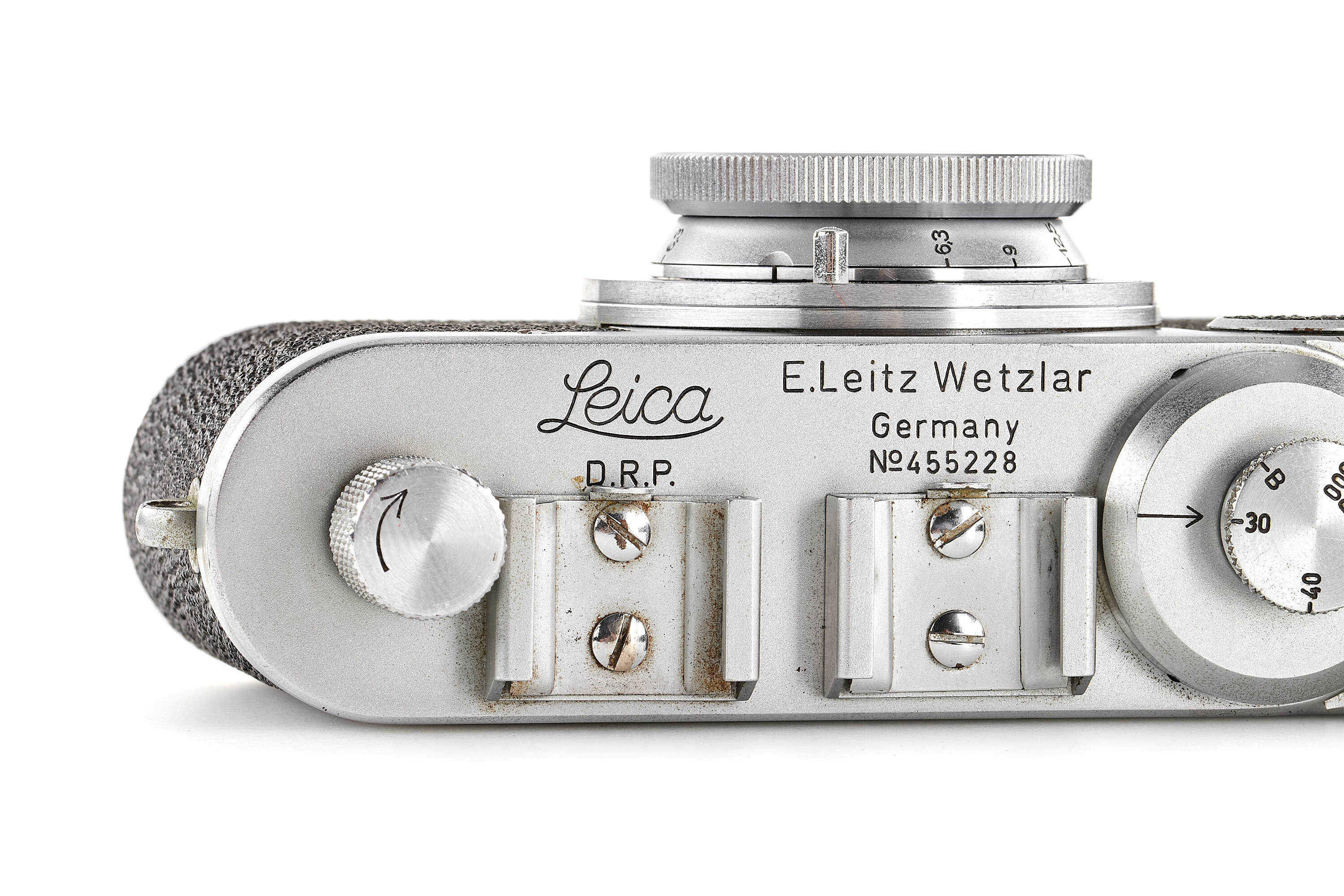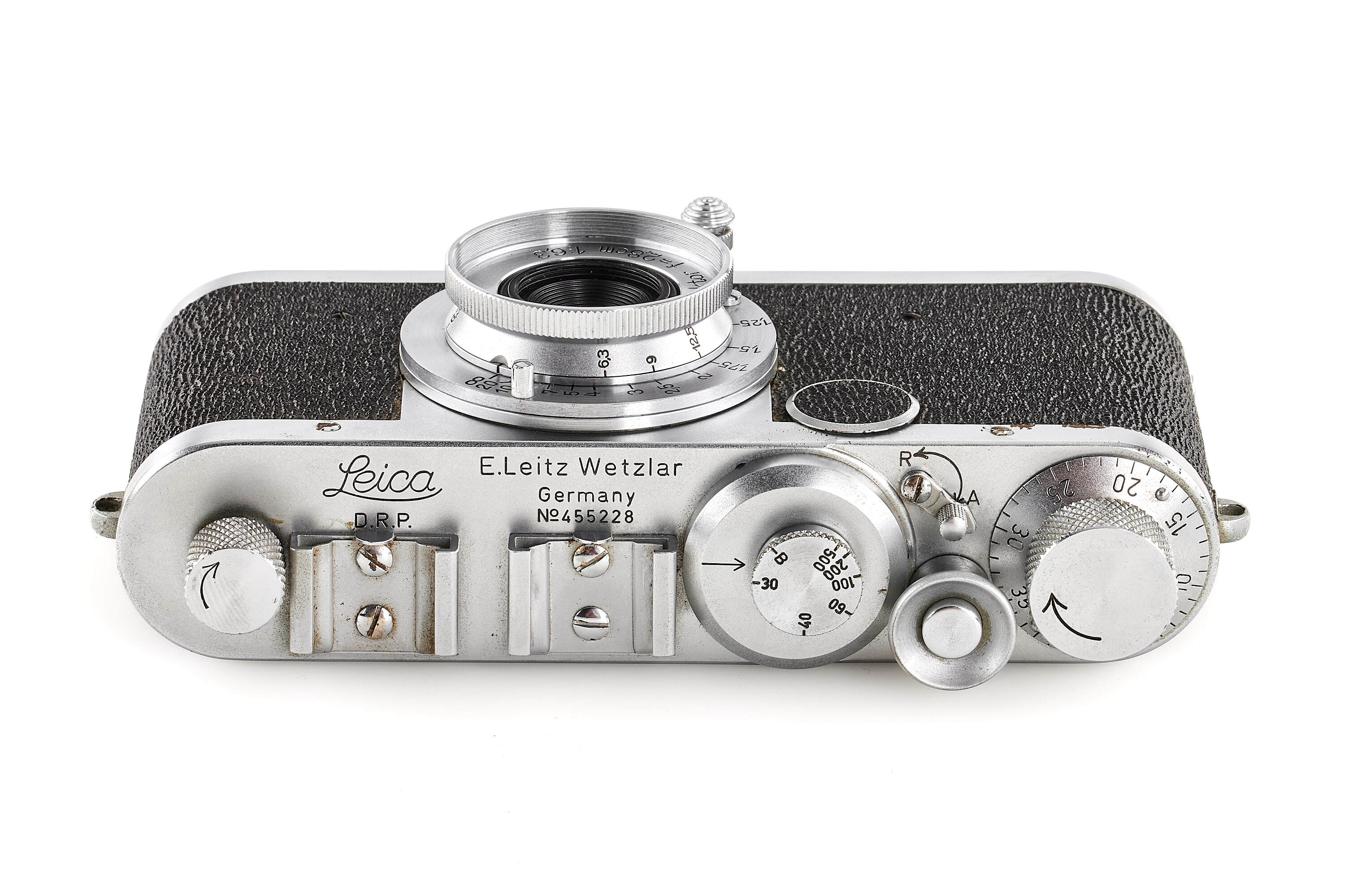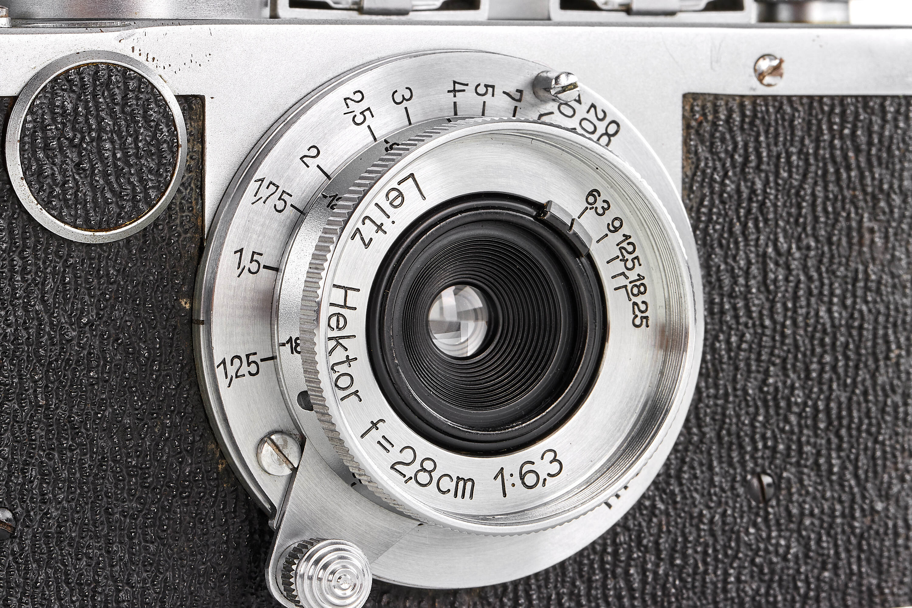 Early Leica Ic with sharkskin vulcanite covering, in excellent condition, with near-mint Hektor 6.3/2.8cm no.357430, leather case.