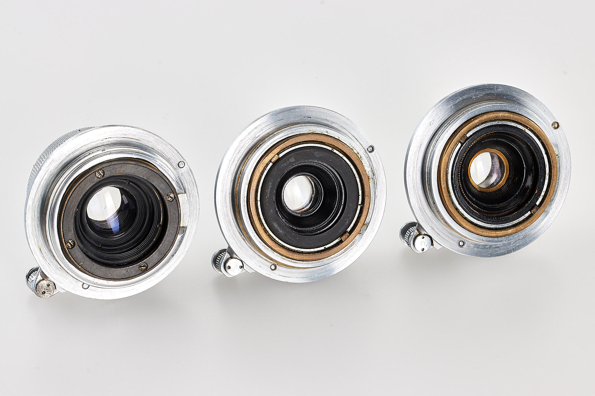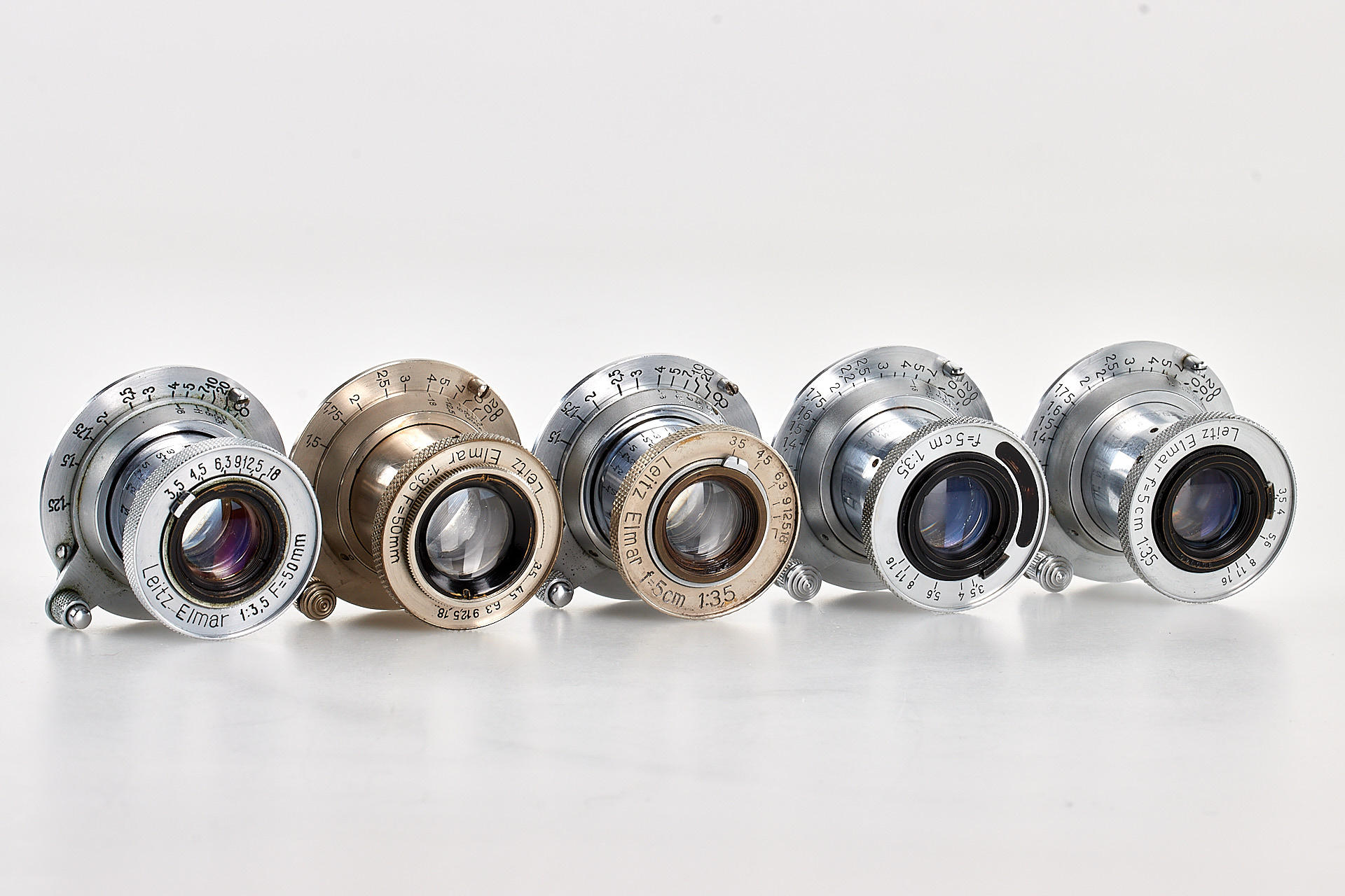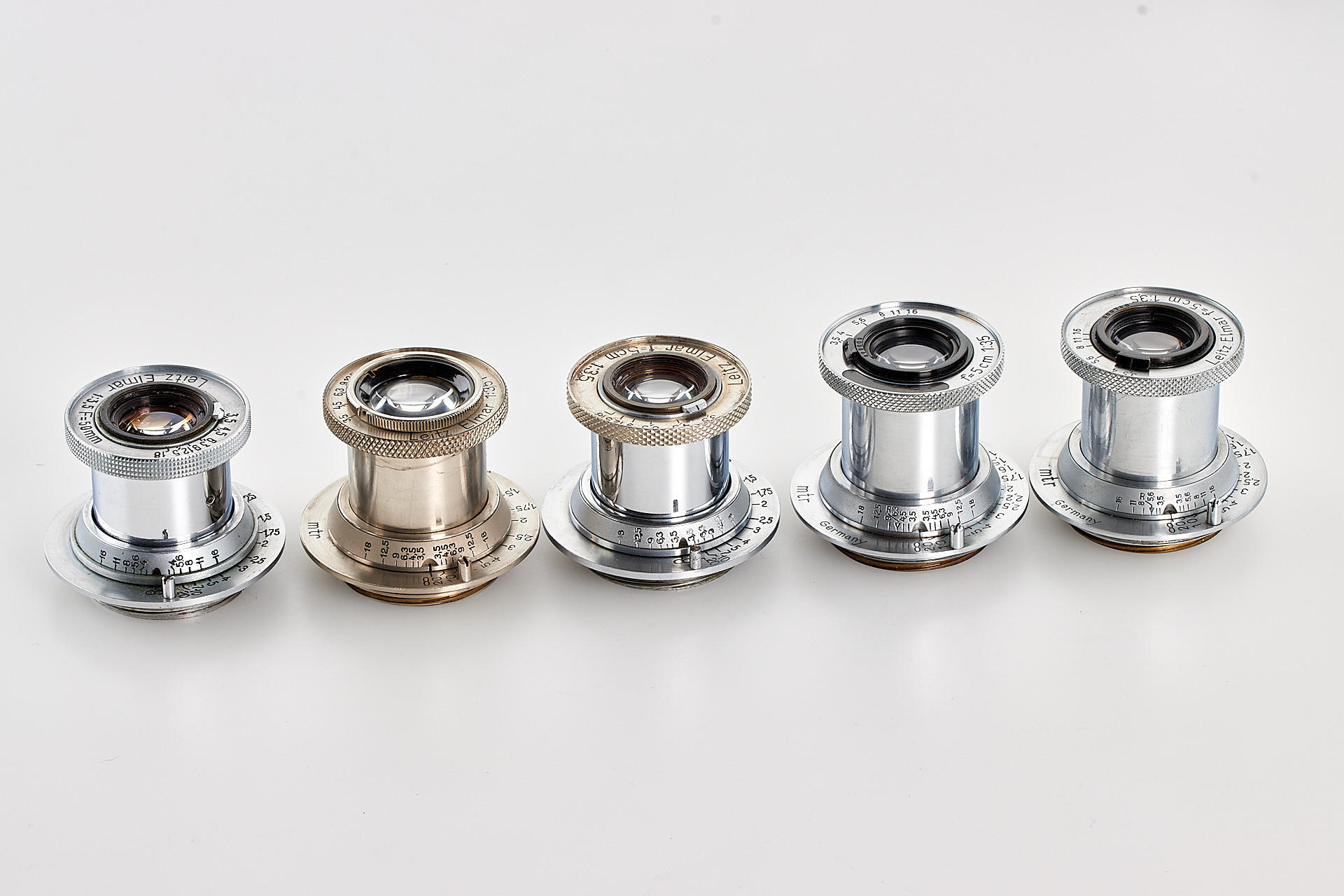 Very interesting collection of 19 fake Leica M39 lenses, ex Leica factory inventory, some very well made, composed of 2x Elmar 3.5/3.5cm, 1x Summaron 3.5/3.5cm, 5x Elmar 3.5/3.5 cm, 1x Summar 2/5cm, 2x Summitar 2/5cm, 4x Elmar 4/9cm, 3x Hektor 4.5/13.5cm and 1x finder VIOOH