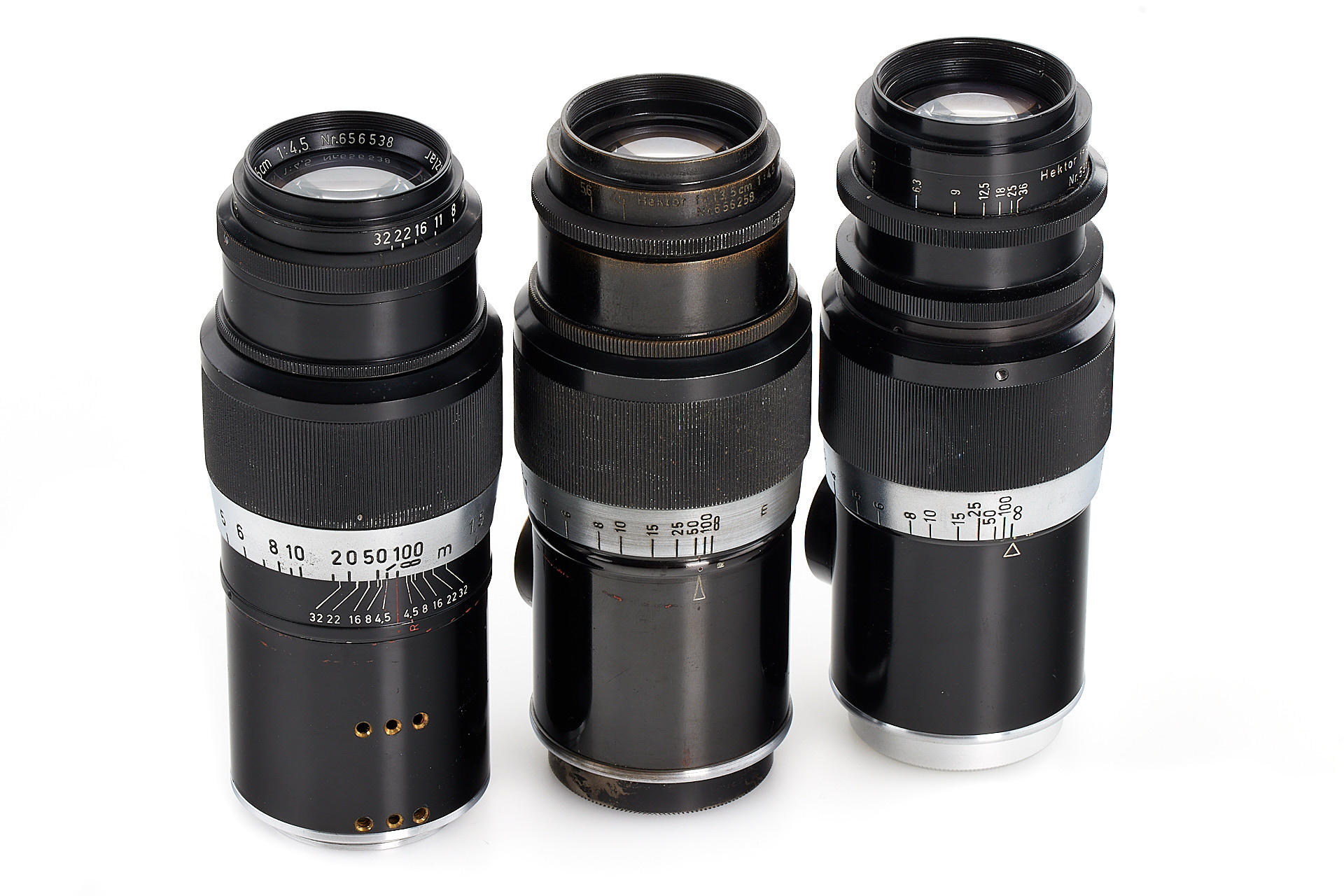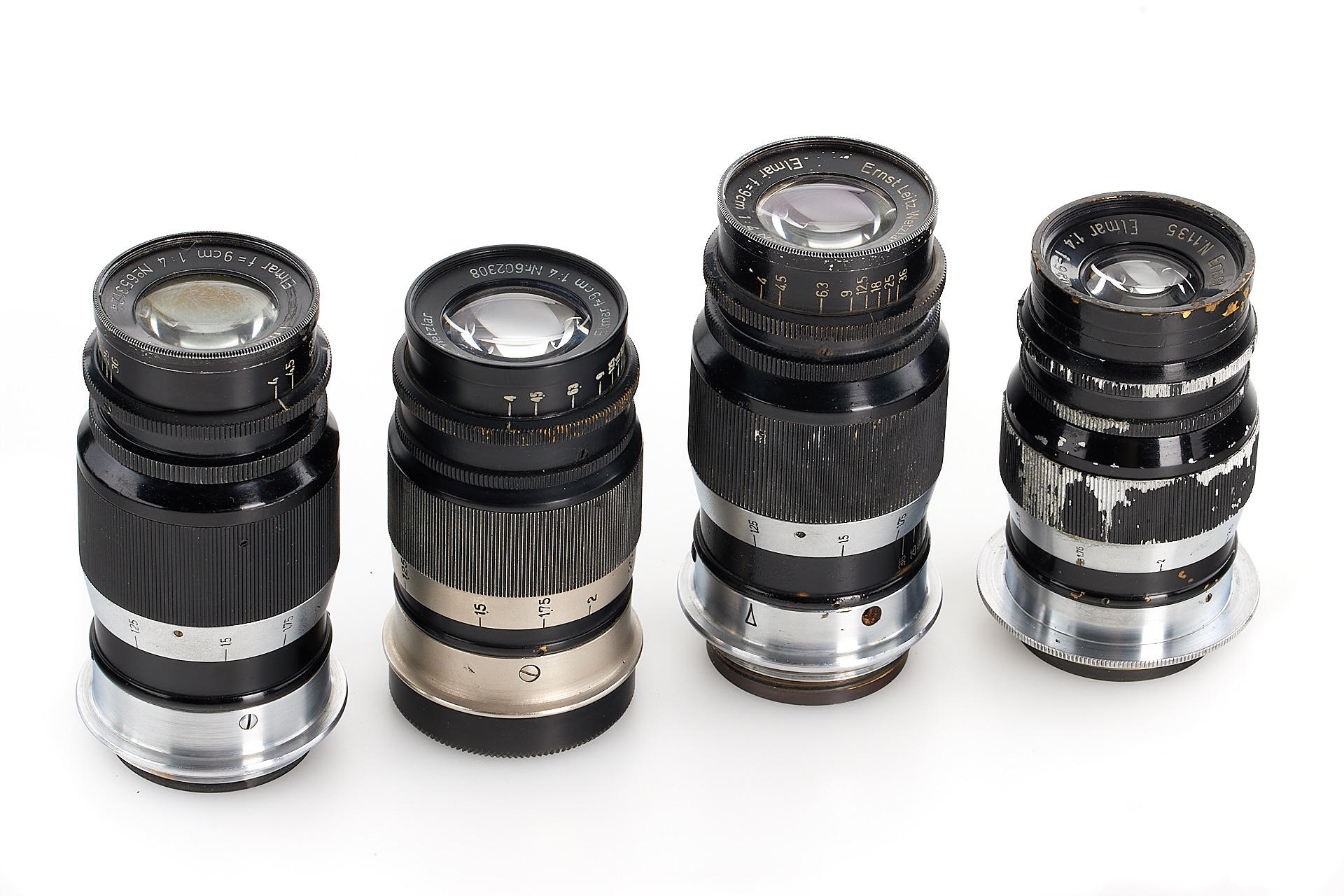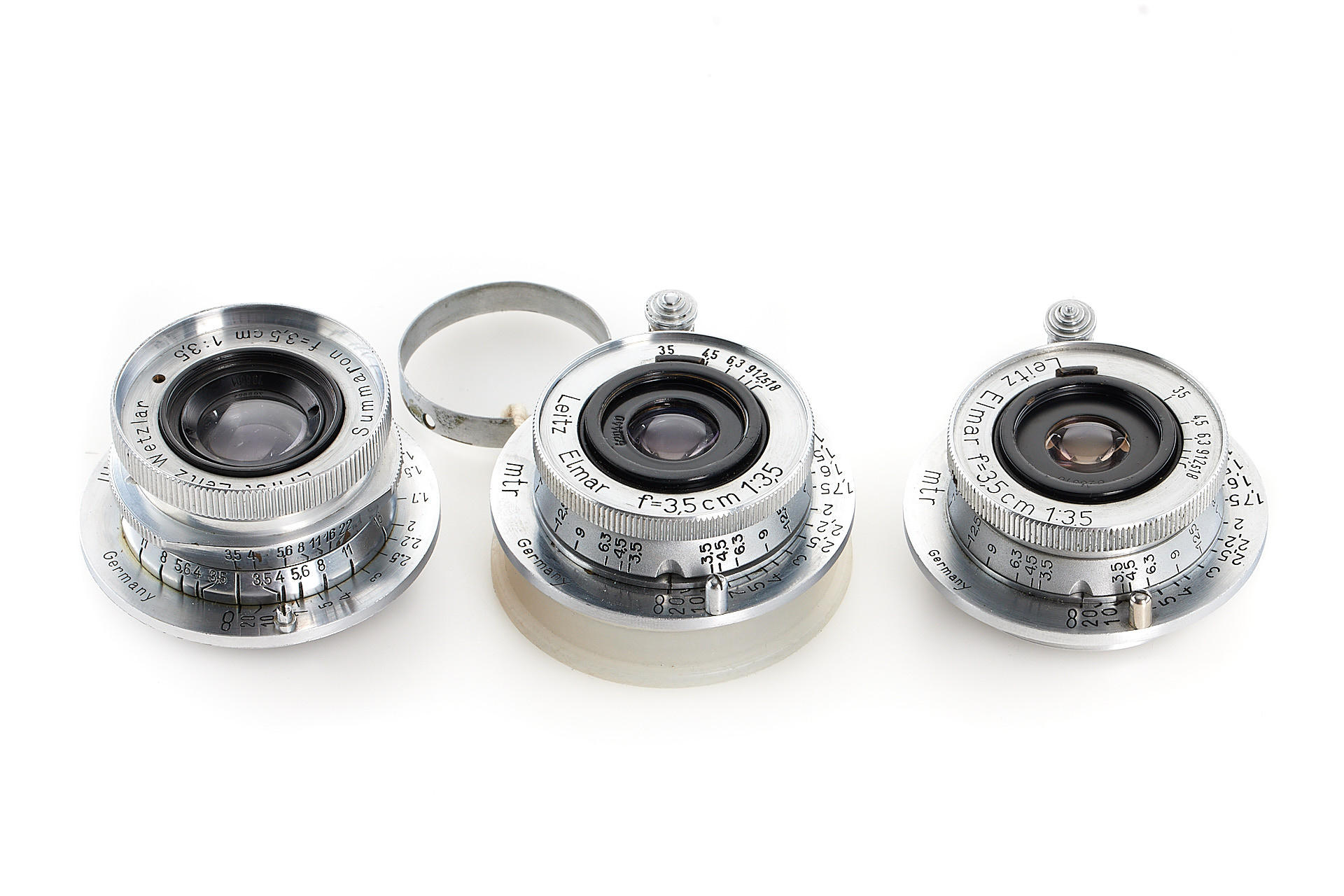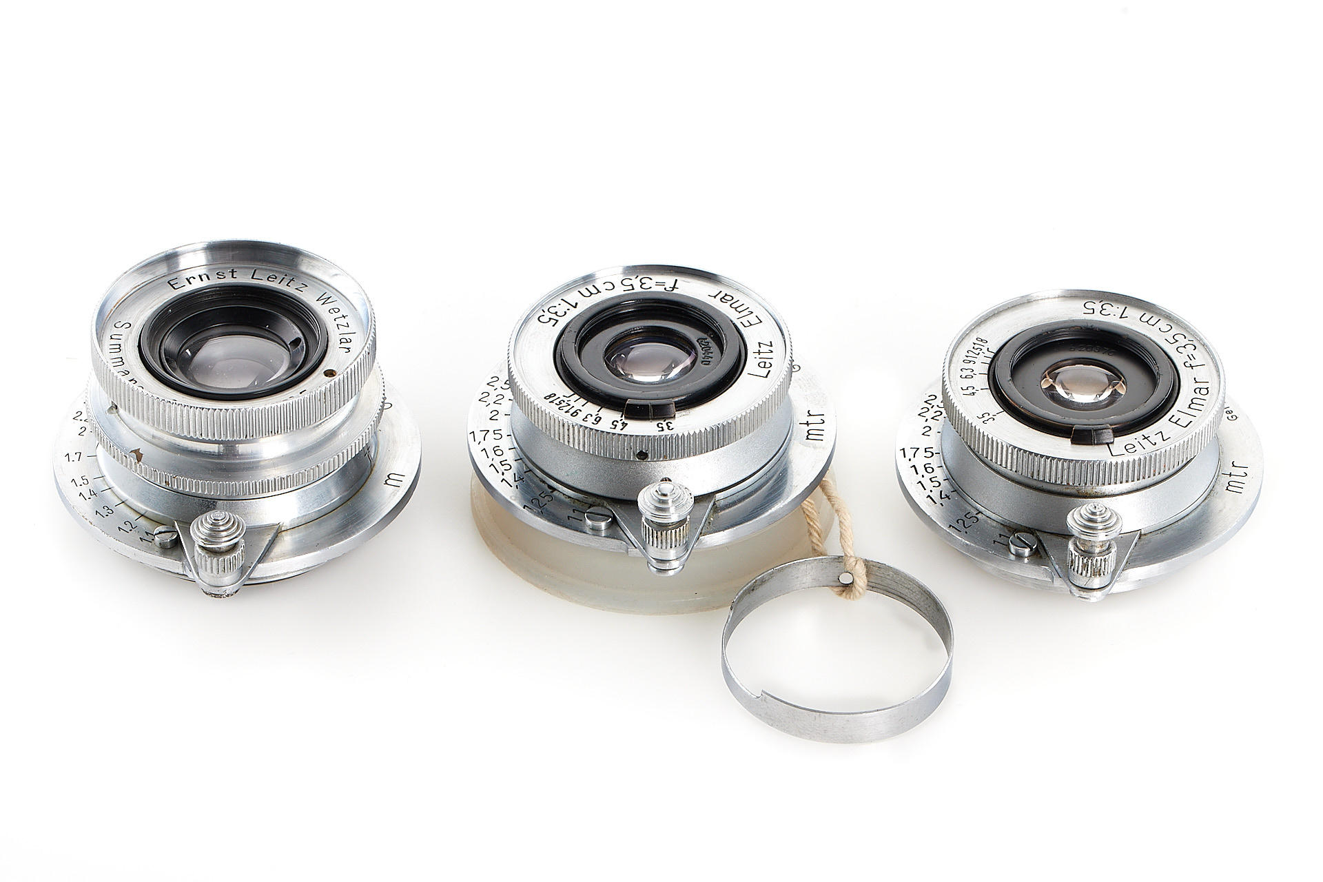 Very interesting collection of 19 fake Leica M39 lenses, ex Leica factory inventory, some very well made, composed of 2x Elmar 3.5/3.5cm, 1x Summaron 3.5/3.5cm, 5x Elmar 3.5/3.5 cm, 1x Summar 2/5cm, 2x Summitar 2/5cm, 4x Elmar 4/9cm, 3x Hektor 4.5/13.5cm and 1x finder VIOOH