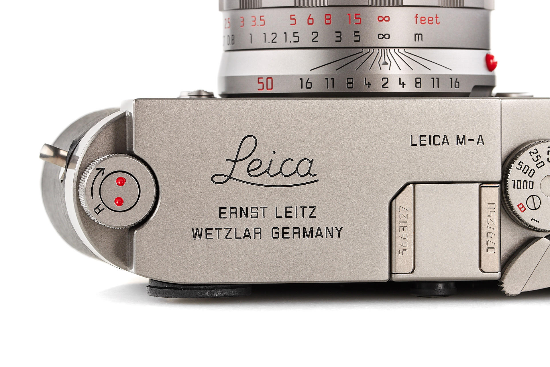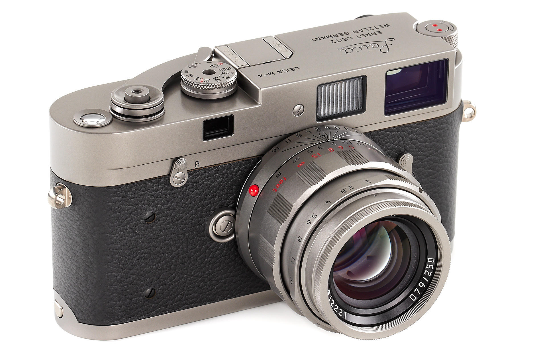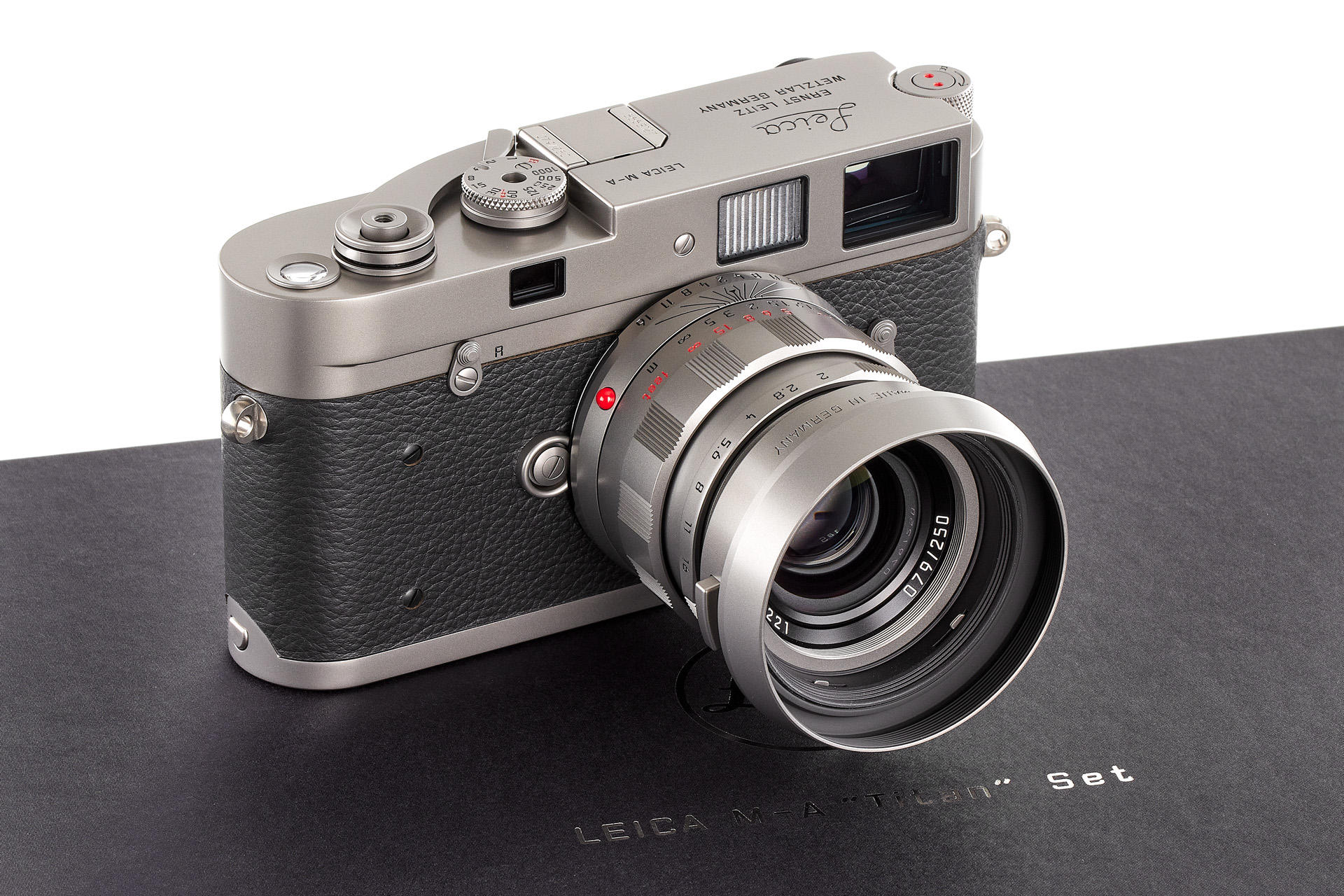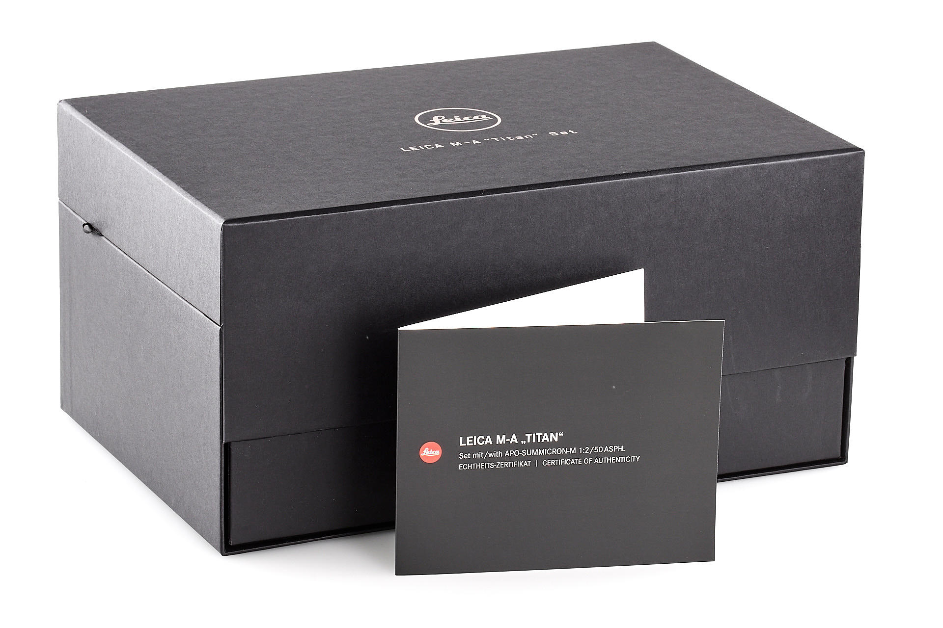 beautiful special edition set limited to 250 pieces, incl. body Leica M-A in Titanium finish, with special number 079/250, with special Titanium Apo-Summicon-M Asph. 2/50mm no.4812221 (also engraved 079/250), complete with all accessories, papers and maker's boxes, in perfect, unused condition
