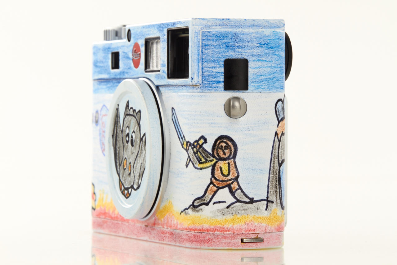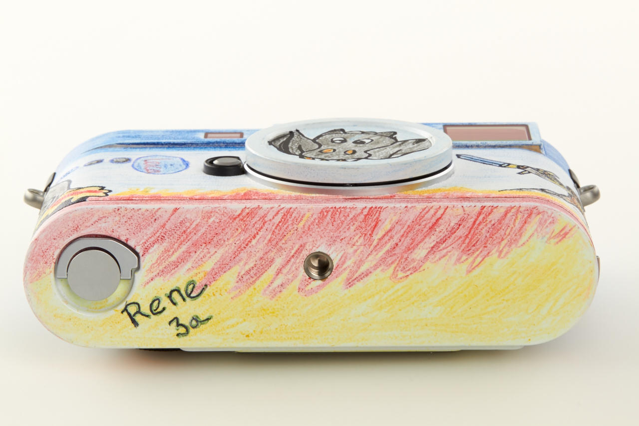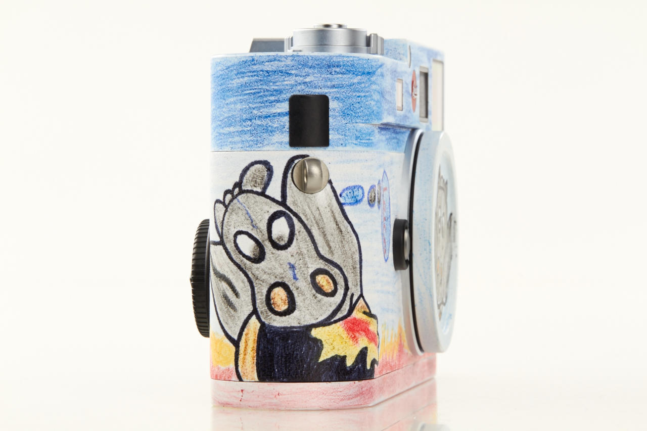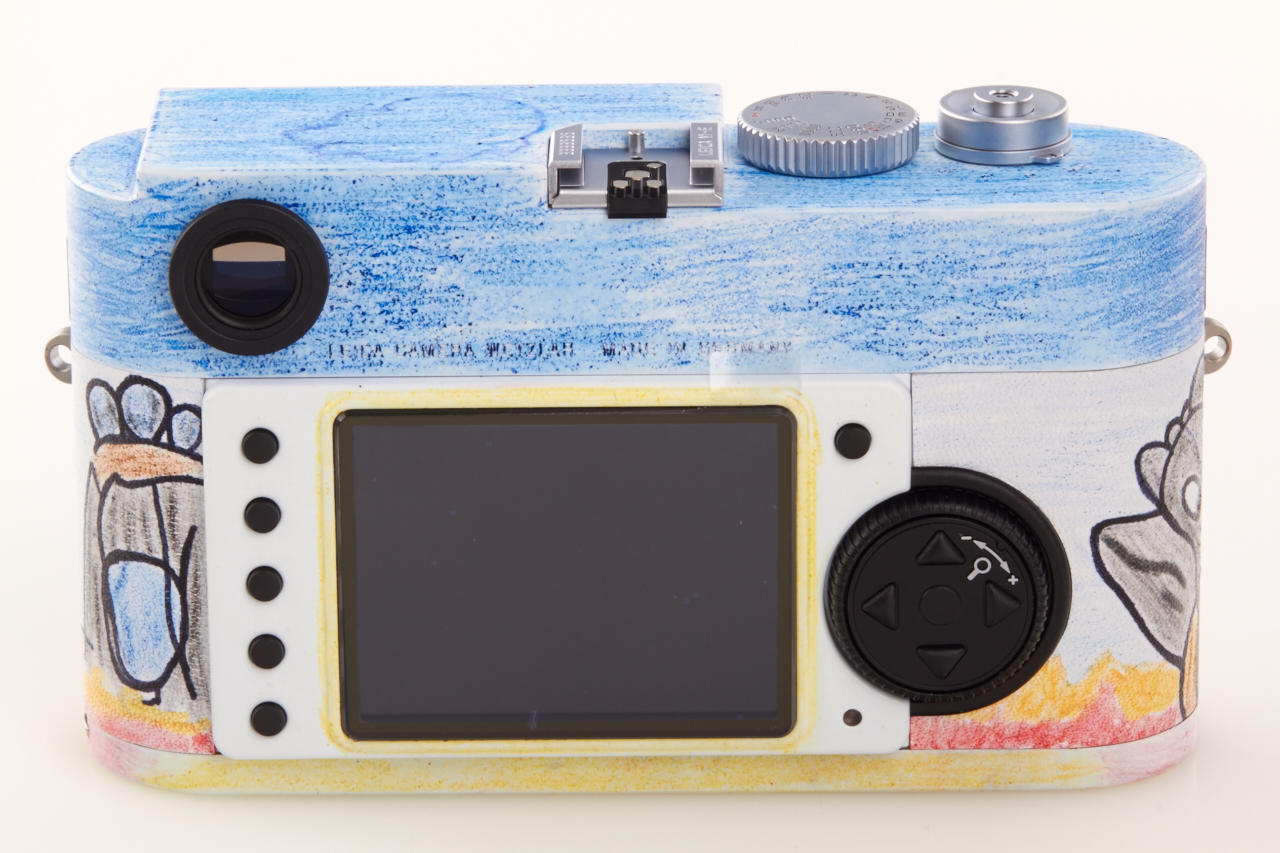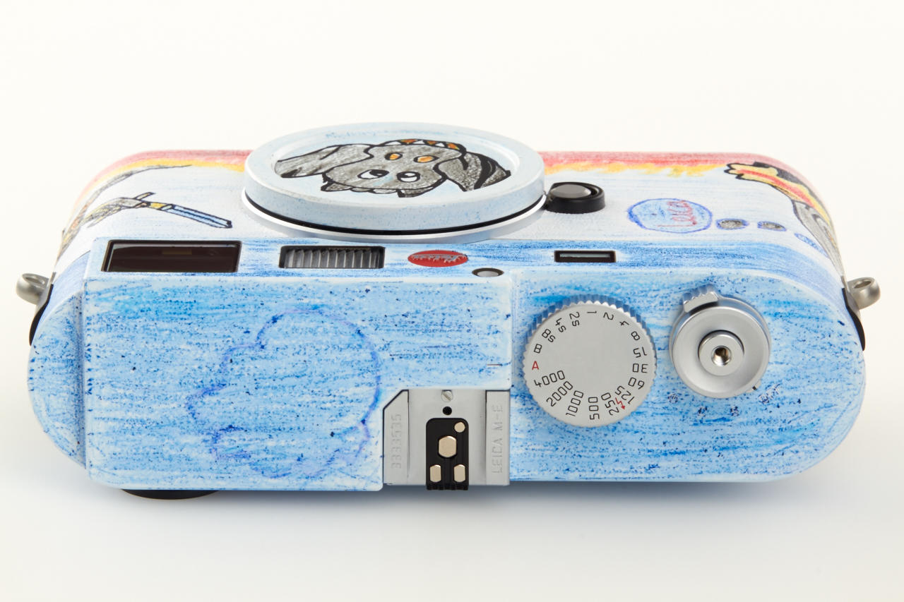 This camera is a fund-raiser based on the collaboration between Leica and the non-profit organisation Kinderlachen e.V. It is one of two unique Leica cameras (Leica M no.4889418 and Leica M-E no.3333535) with Kinderlachen designs. All of the proceeds will go towards projects carried out by Kinderlachen e.V. Two unique Leica models were created as part of a Kinderlachen e.V. project with children in Dortmund. The children were given cardboard versions of the Leica M rangefinder camera, which they were free to paint and decorate as they pleased. The result was 140 paper works of art, which are still exhibited at the Leitz Park in Wetzlar. In return for the vivid designs, the company chose two cardboard cameras that served as a template for the Munich-based artist Helmut Lutter to transform real Leica products to yield two remarkable and truly unique Leica rangefinder cameras. The M Kinderlachen is available in the previous lot.