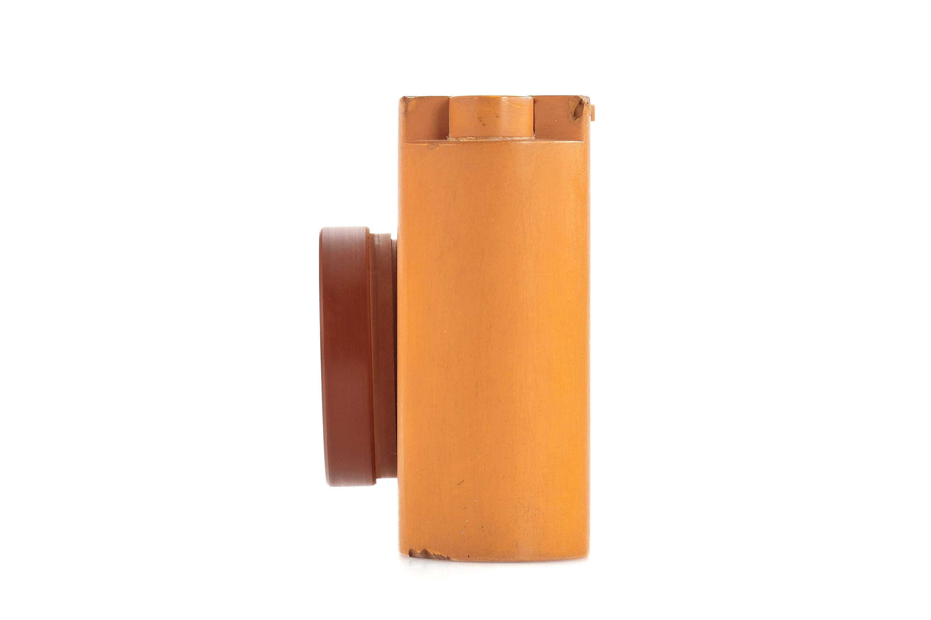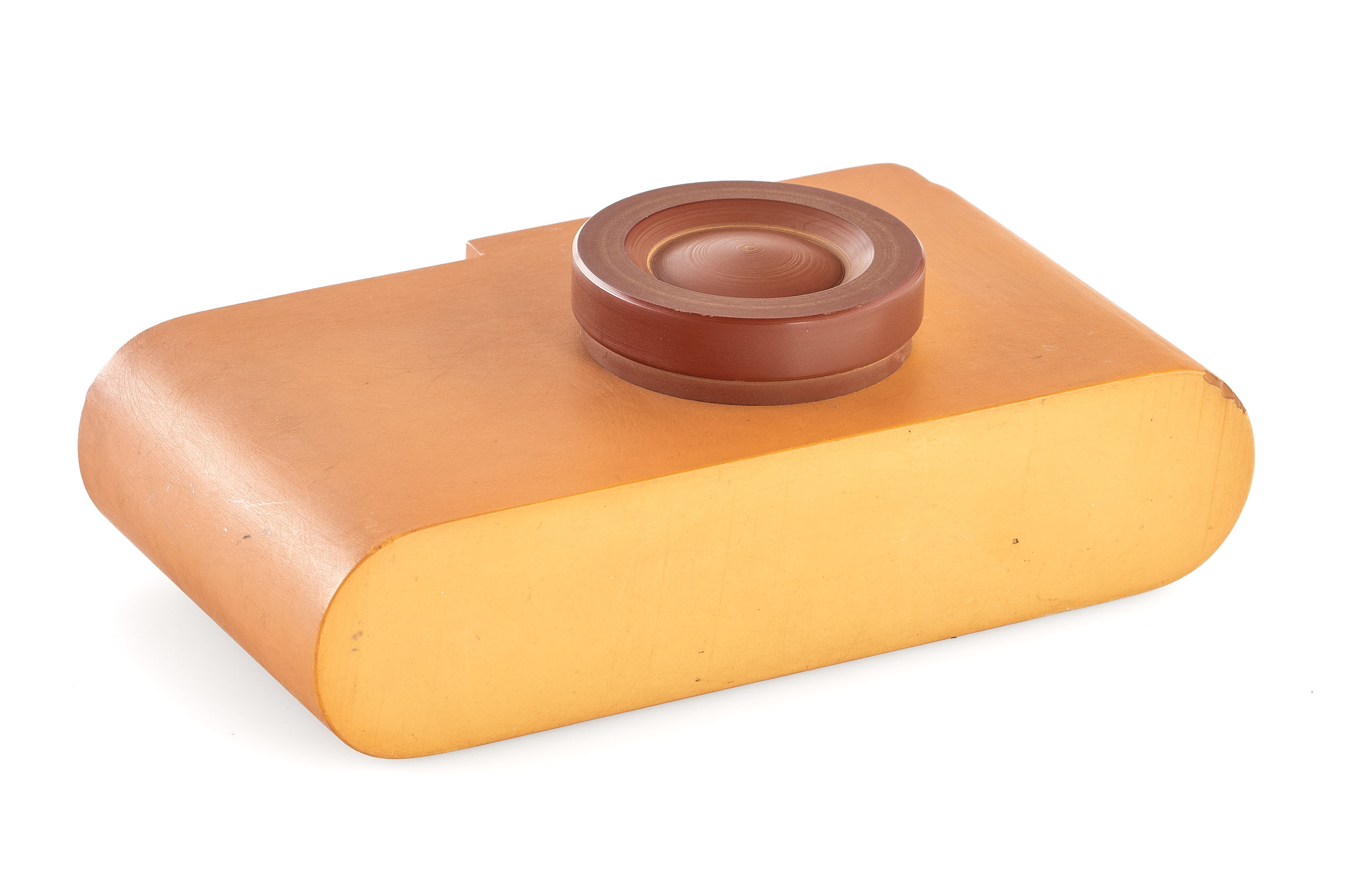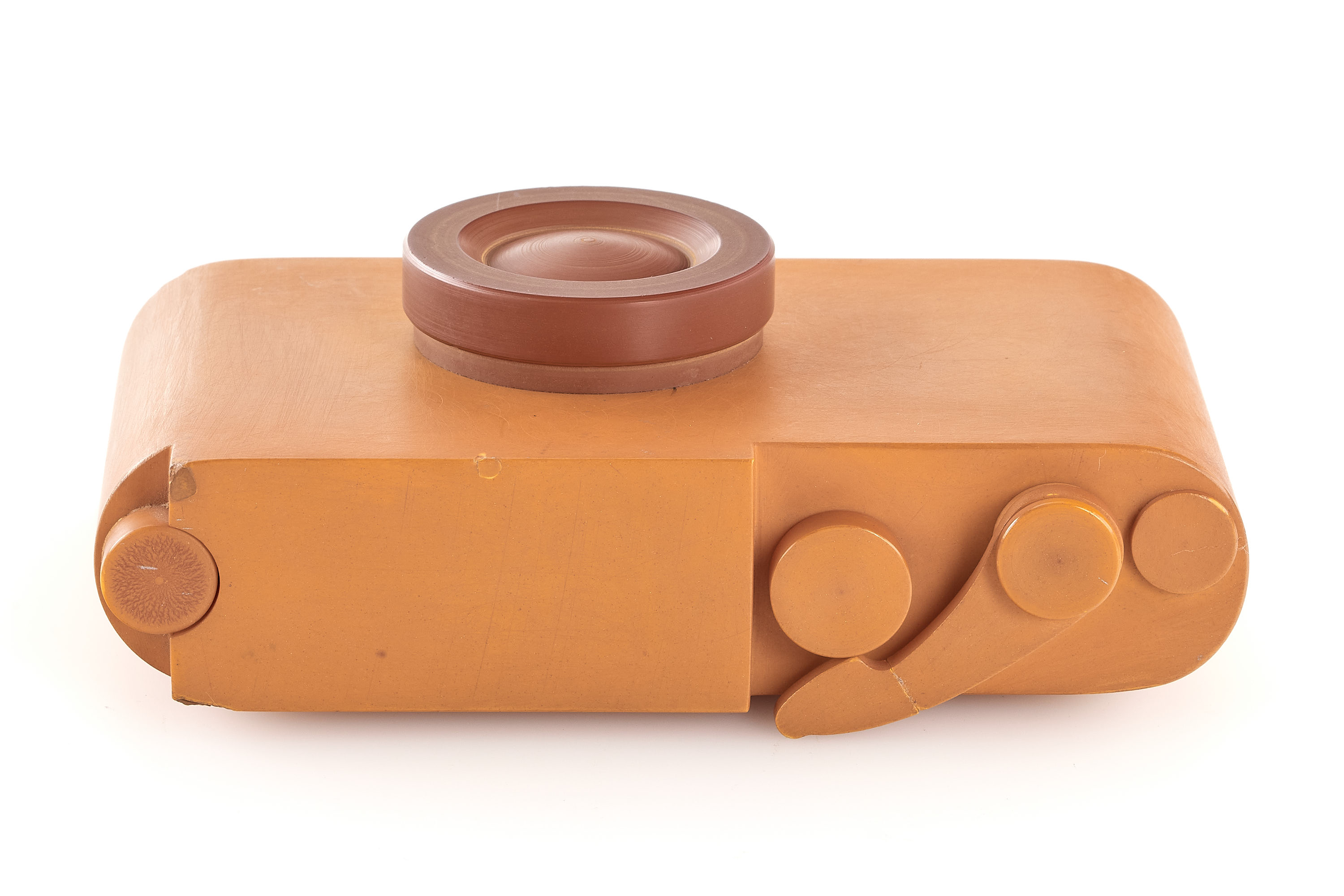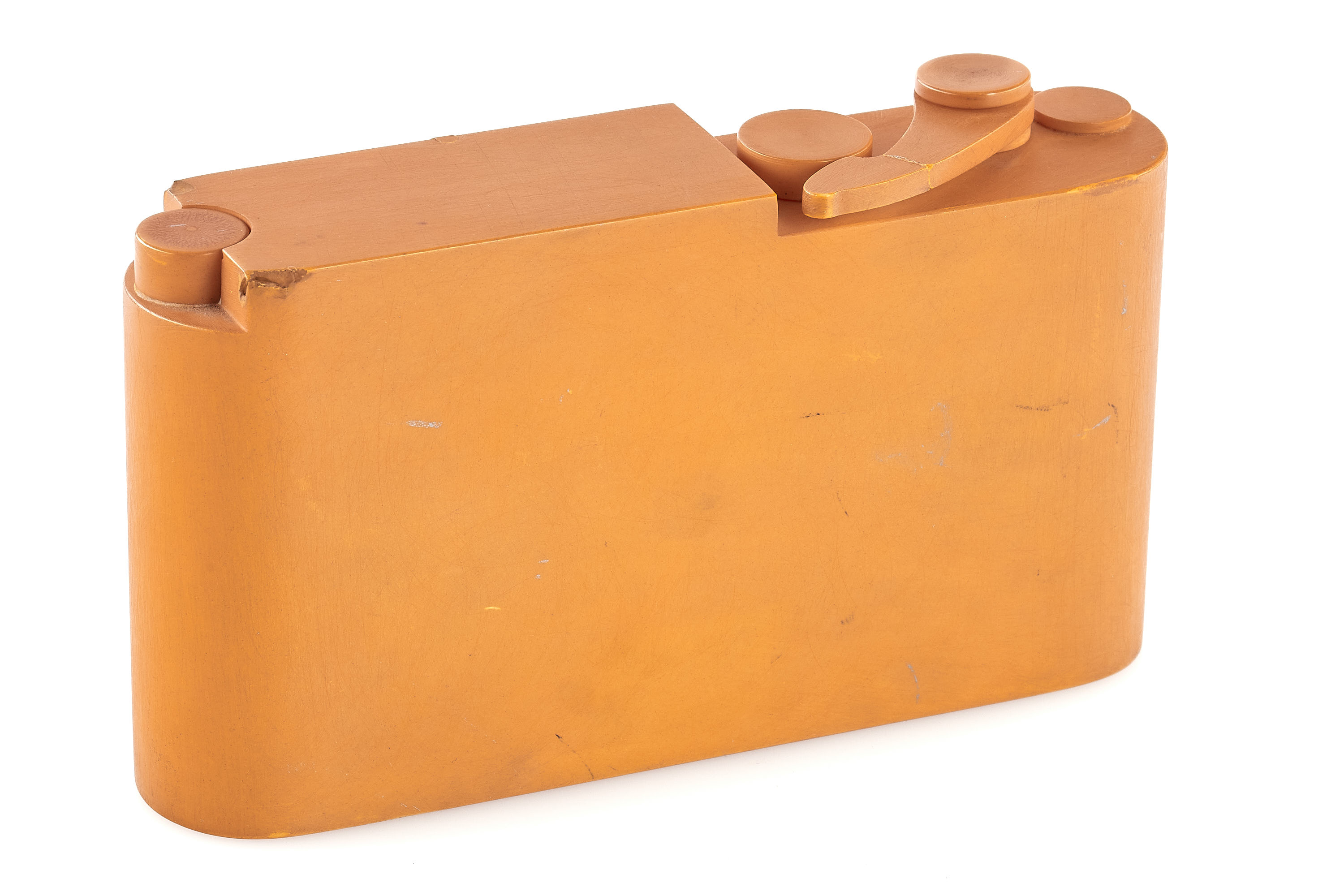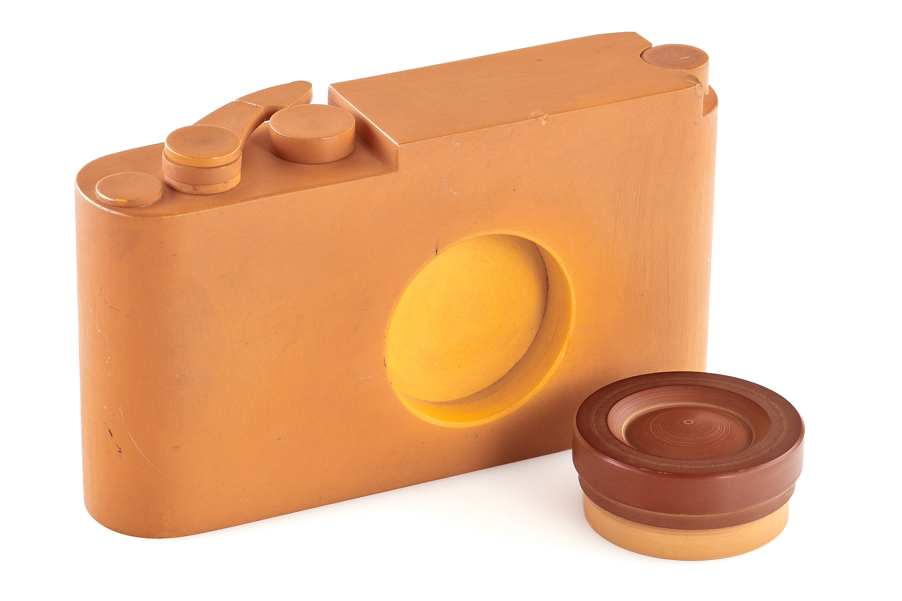 An original early design study model of the Leica M3, just like the earliest prototype cameras (see previous lot), this plastic model is around 2mm shorter than the production M3, it still shows the iconic shape of the camera body and is equipped with an external film counter and a lens resembling the Summicron 2/5cm in the collapsed position, it is an interesting piece showing an important step in the development of the M3.