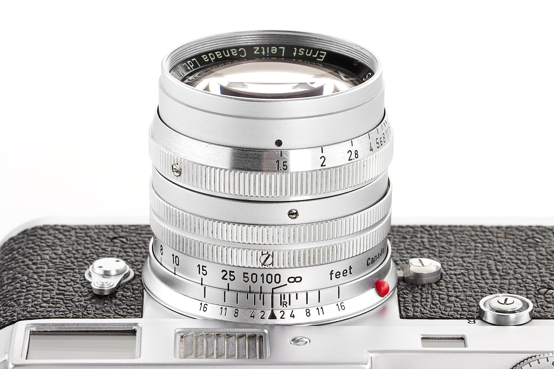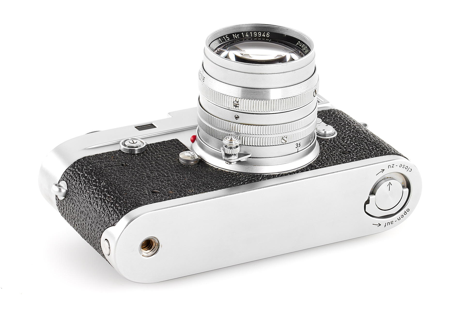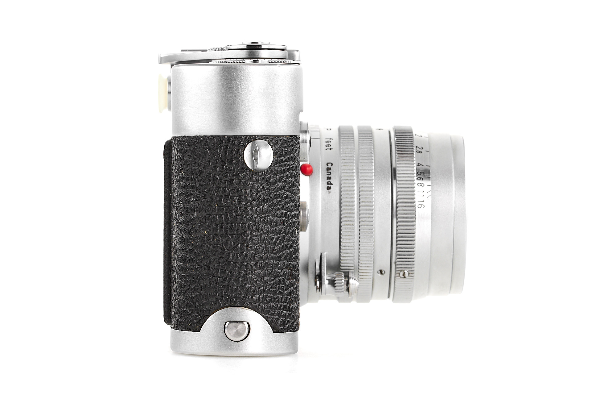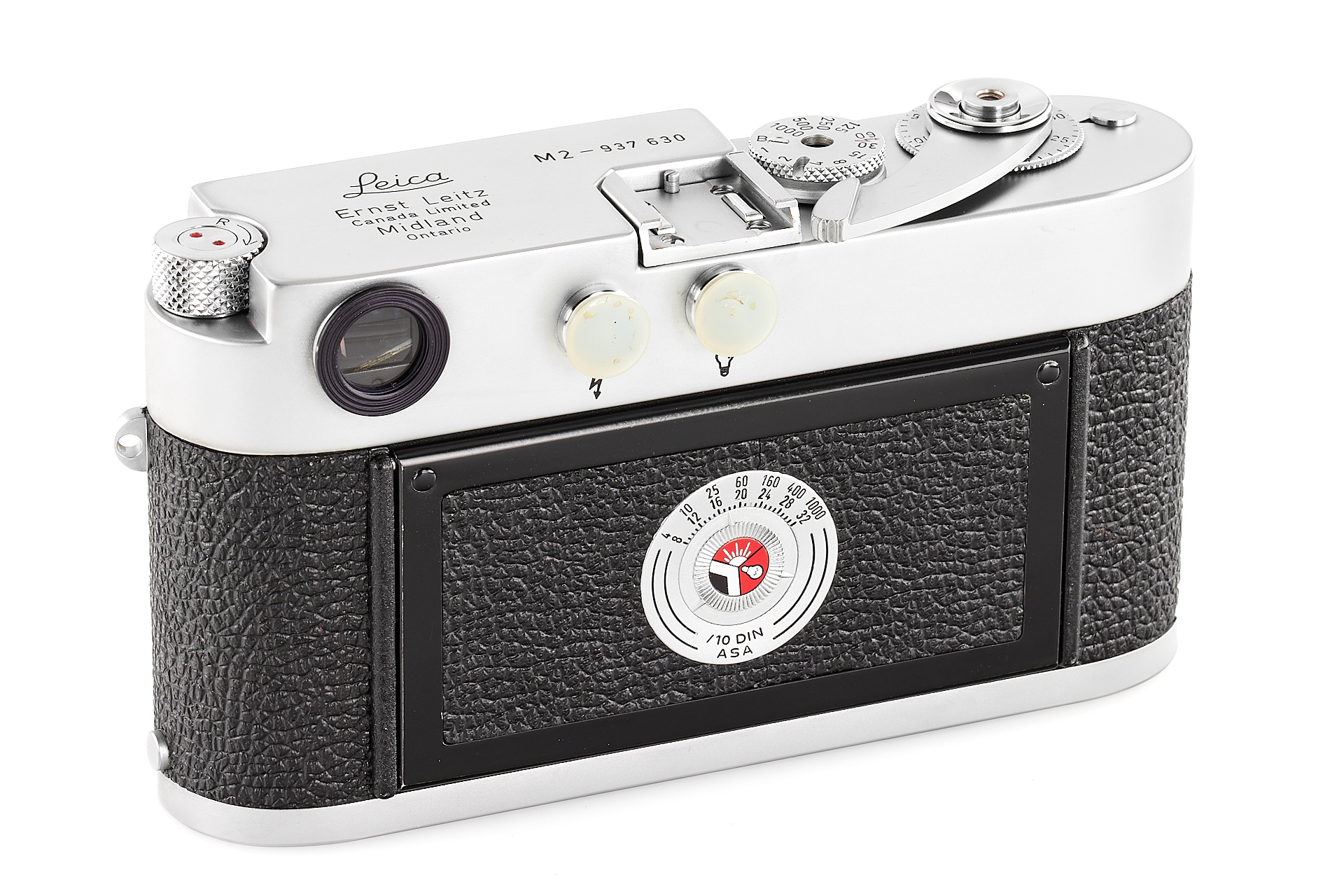 Very rare Leica M2 in near mint condition produced in Canada, engraved "Ernst Leitz Canada Limited Midland Ontario" on the top plate. Only about 1,500 units of the Leica M2 were assembled at the Leitz plant in Canada, while the total production number was more than 76.000. Usually, these cameras were equipped with top plates from the Wetzlar production. Just a handful of examples carried the “Leitz Canada“ engravings and were intended as samples. Included with the camera is a matching, rare, original Midland Summarit 1.5/5cm no.1419946, also in beautiful, near-mint condition.