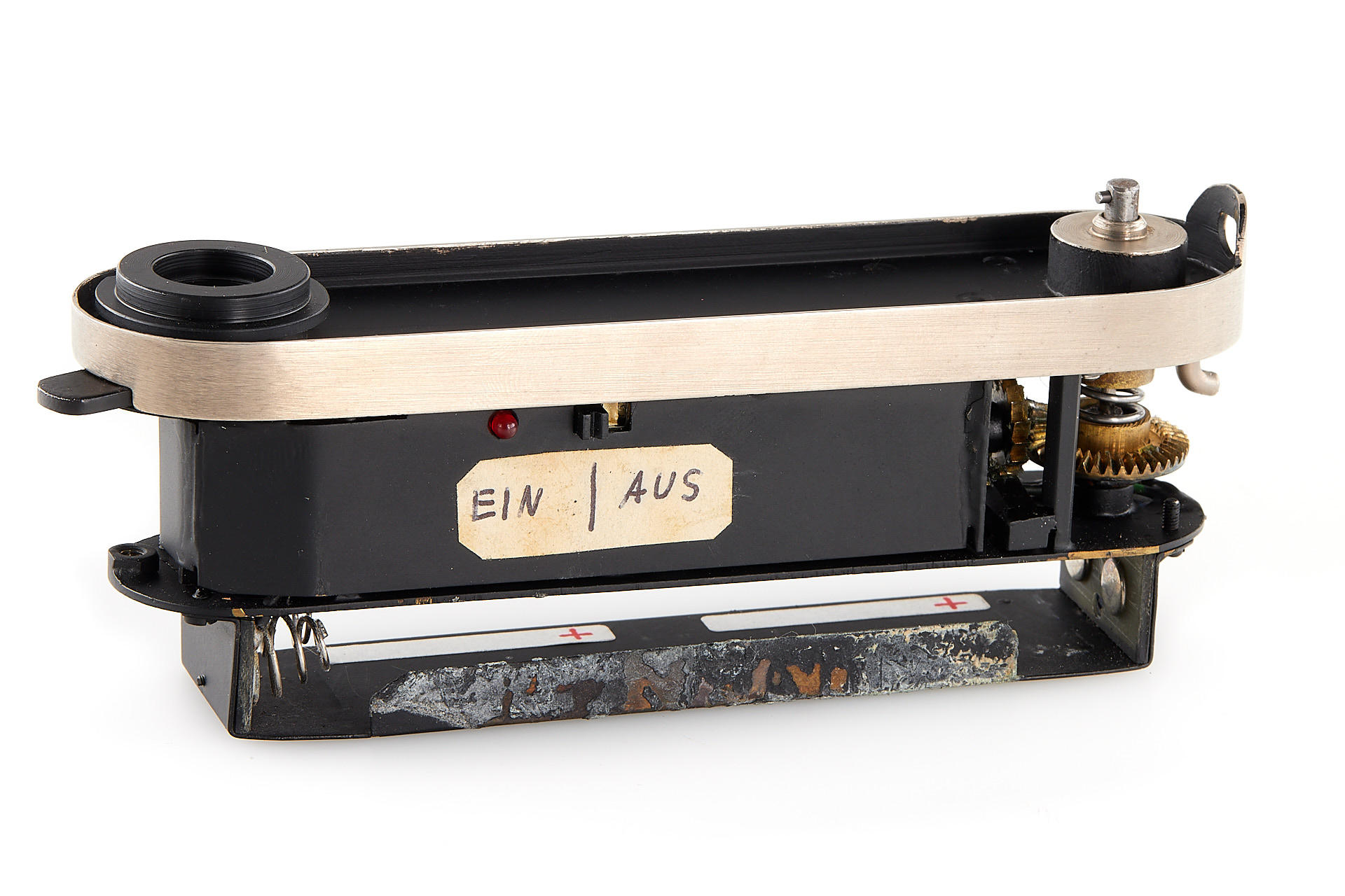 Extremely rare electric motor-drive for Leica M2 powered by 4x AA batteries, developed and produced by Gerhard Mühr in Germany (only 24 units have been manufactured between 1979-81), in near mint condition and working order