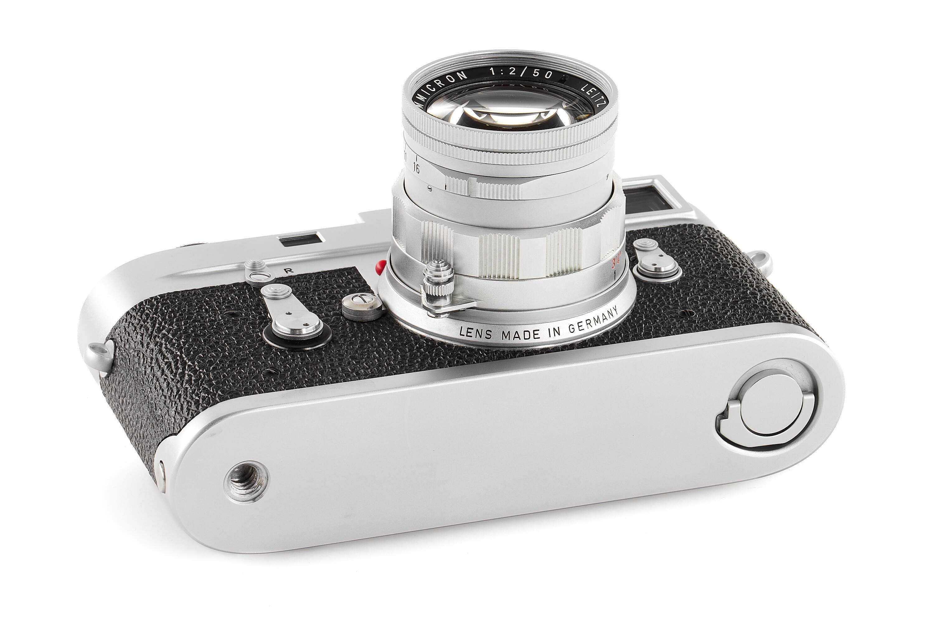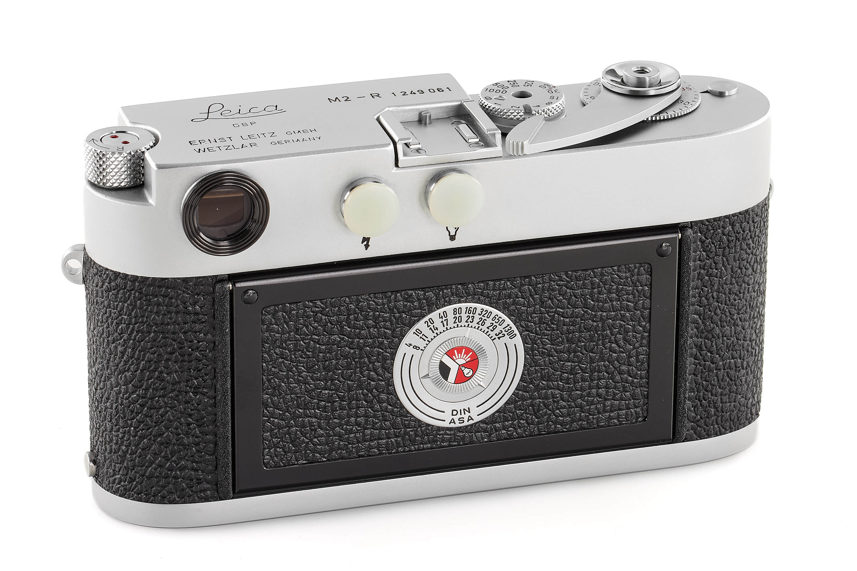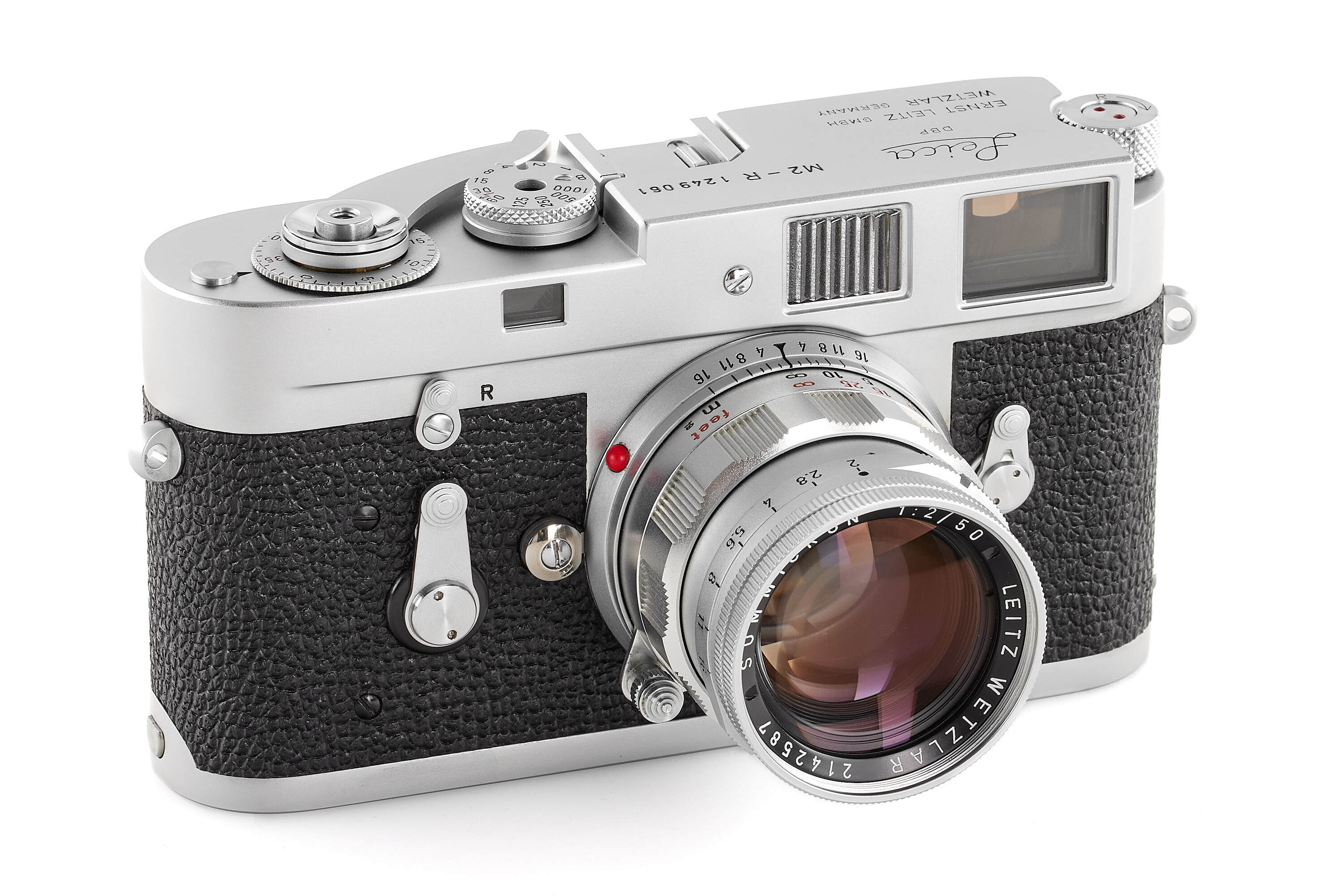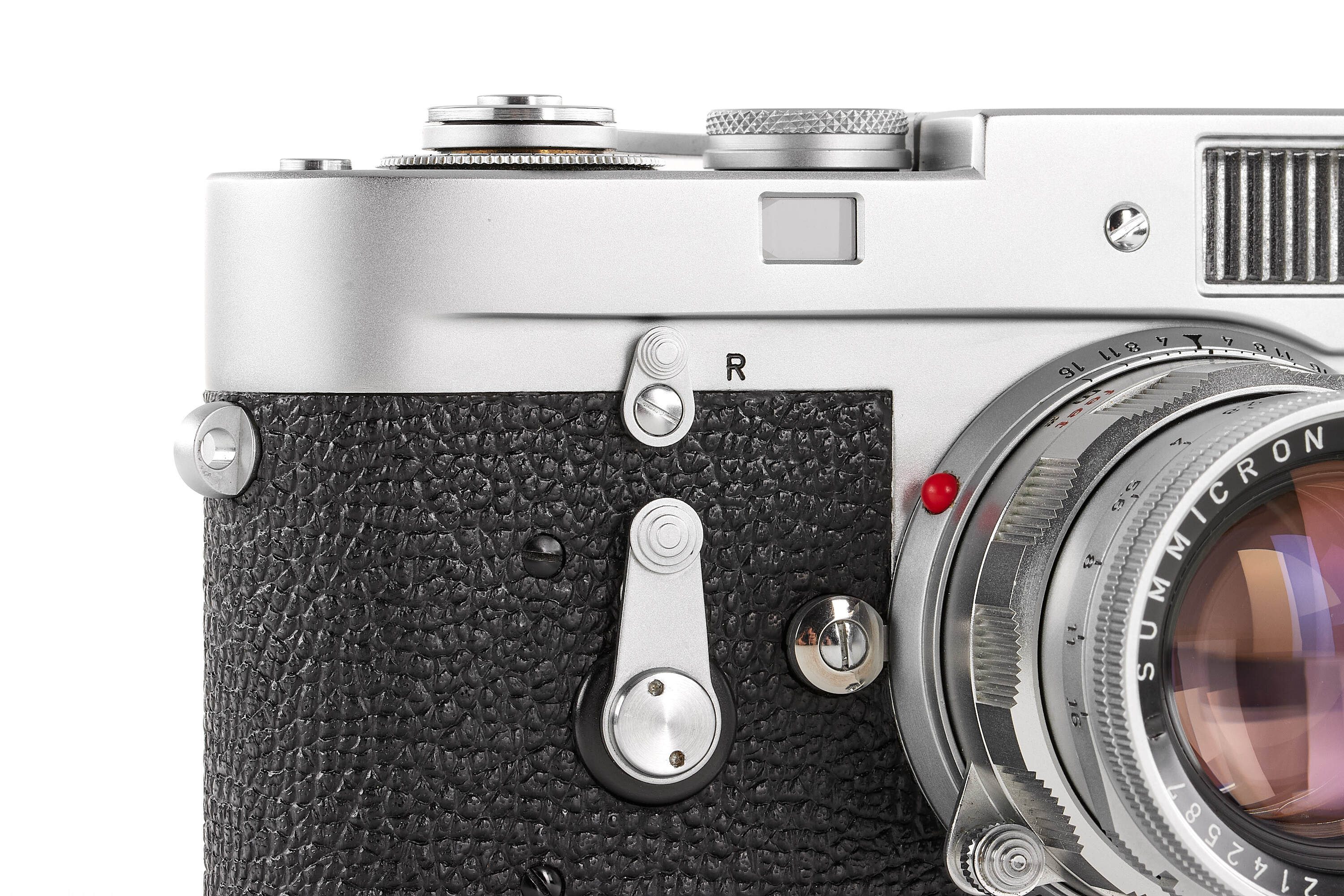 The Leica M2-R represents the final production run of the Leica M2, equipped with the rapid-load film system of the later Leica M4. In Leica’s own literature, it was described as “a limited edition of the famous Leica M2.”