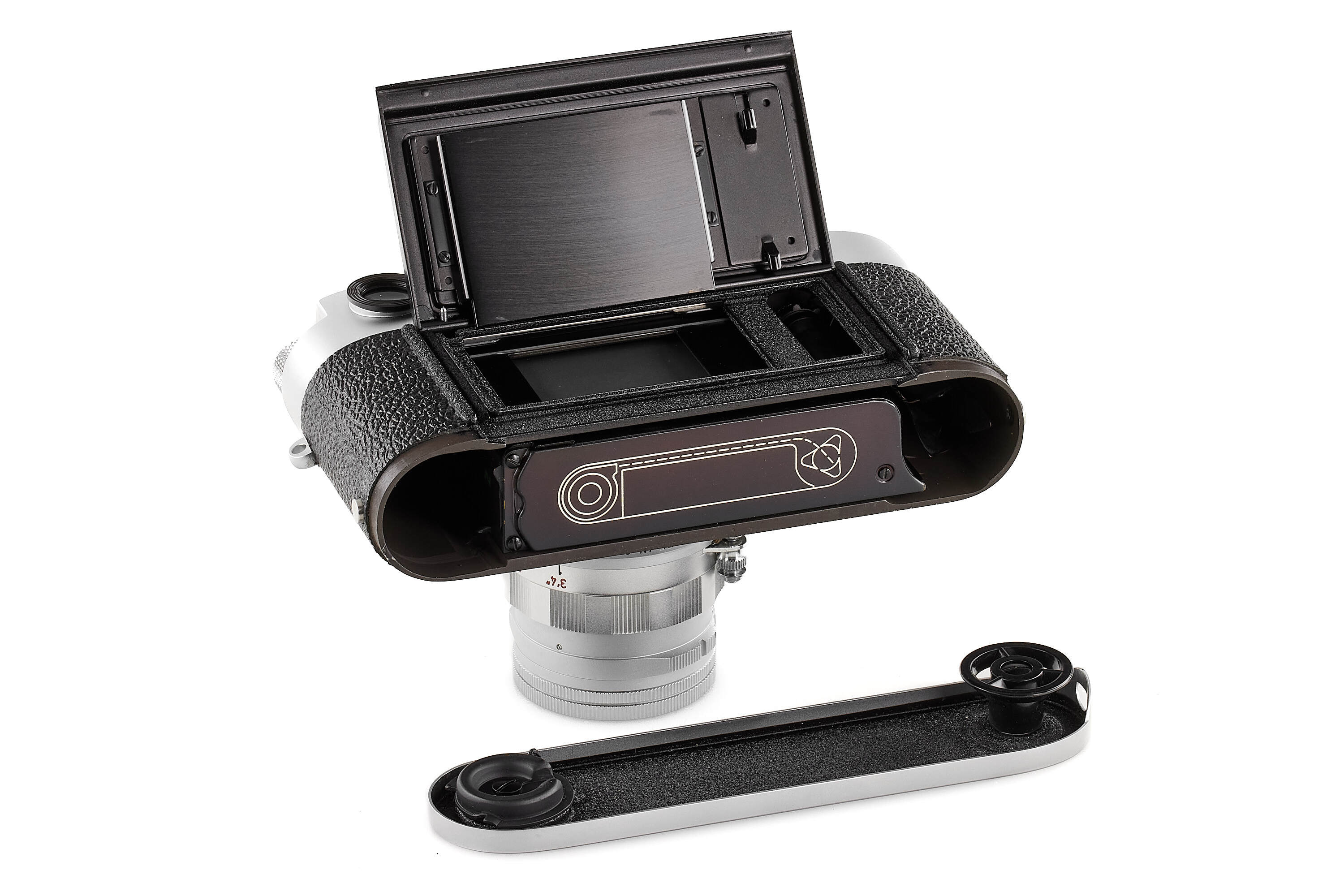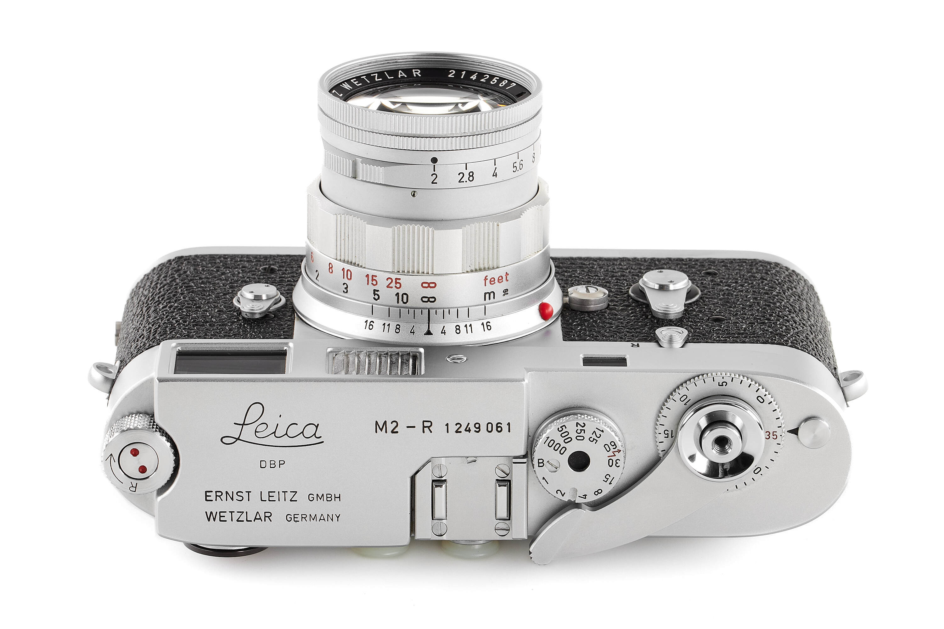 The camera offered here is in exceptional, mint condition and perfect working order. It is accompanied by a matching rigid Summicron 2/50mm no.2142587, black leather case, rare original instructions, and the maker’s box with matching serial number. It is without doubt the finest example of this uncommon model we have encountered.