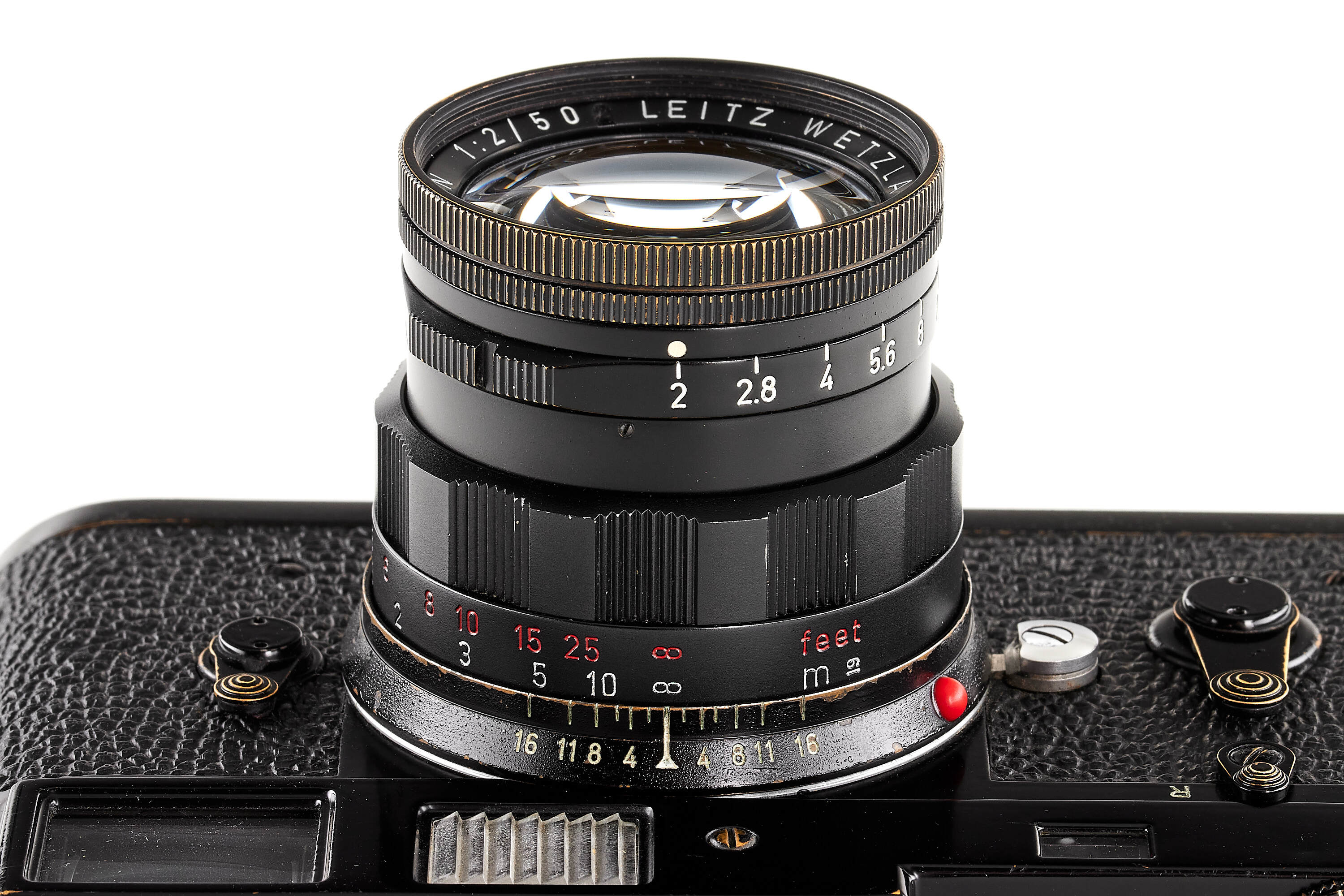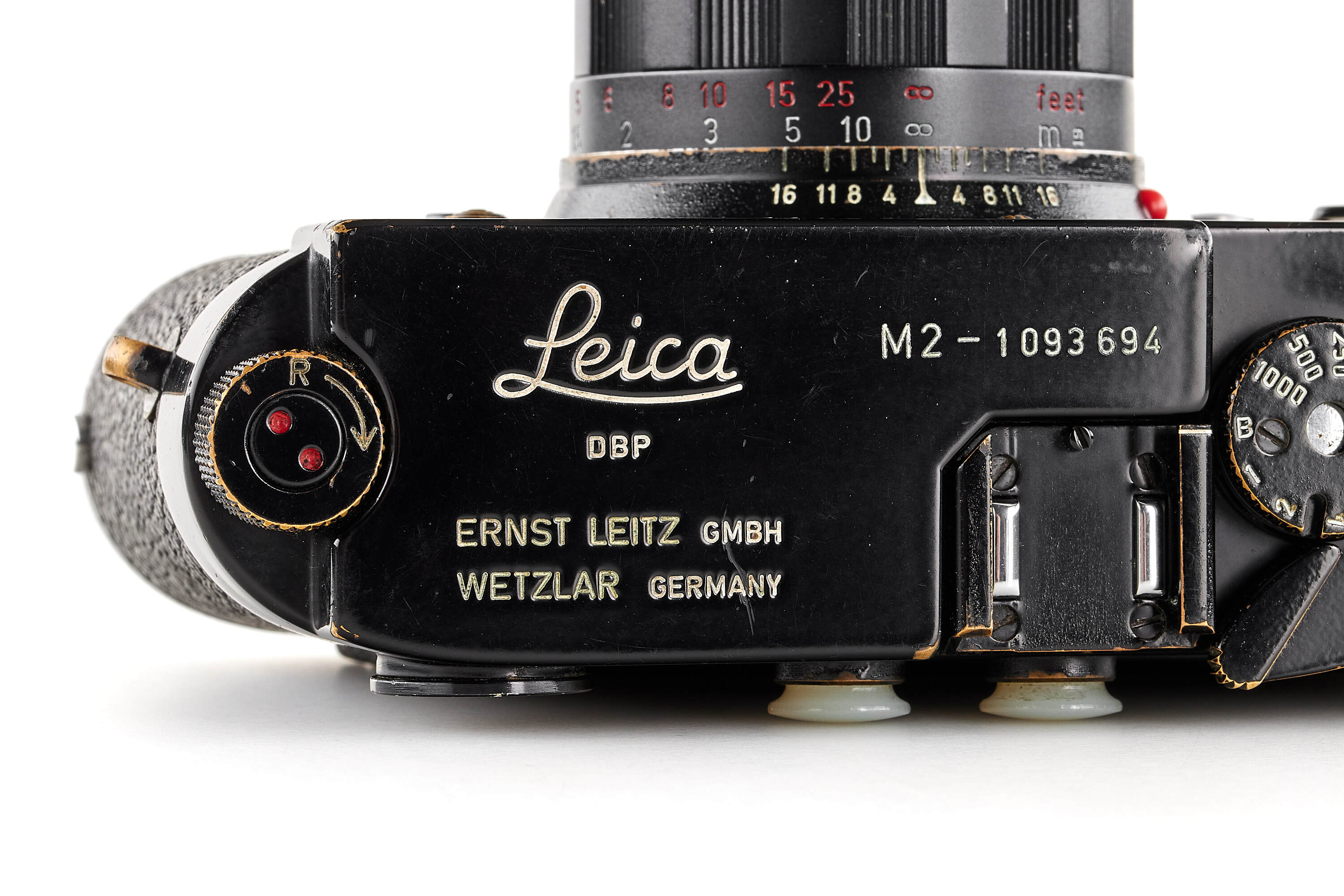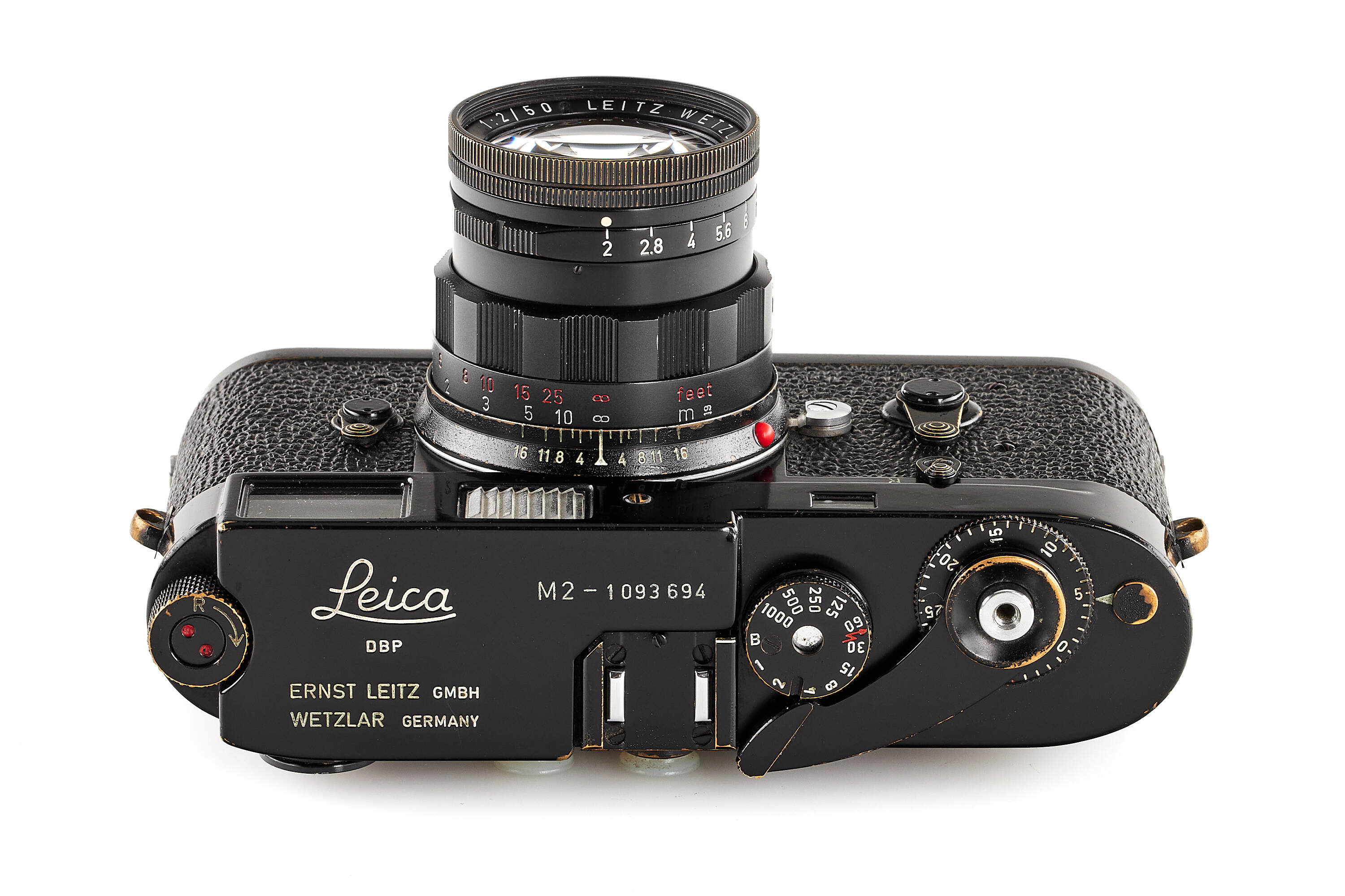 A rare, sought-after Leica M2 in original black paint finish, from a batch of 250 units with nos.1093501-10930750, in good condition, showing an attractive light patina and small bubbles appearing in paint, together with a matching original black paint Summicron 2/50mm no.1954636 with clean and clear optics, both delivered in 1964 to Leitz Hamburg.