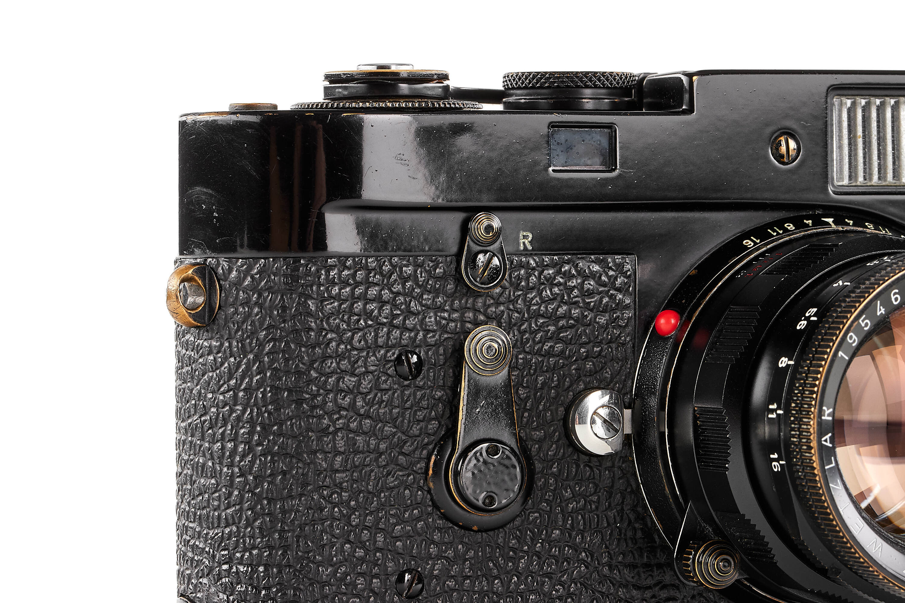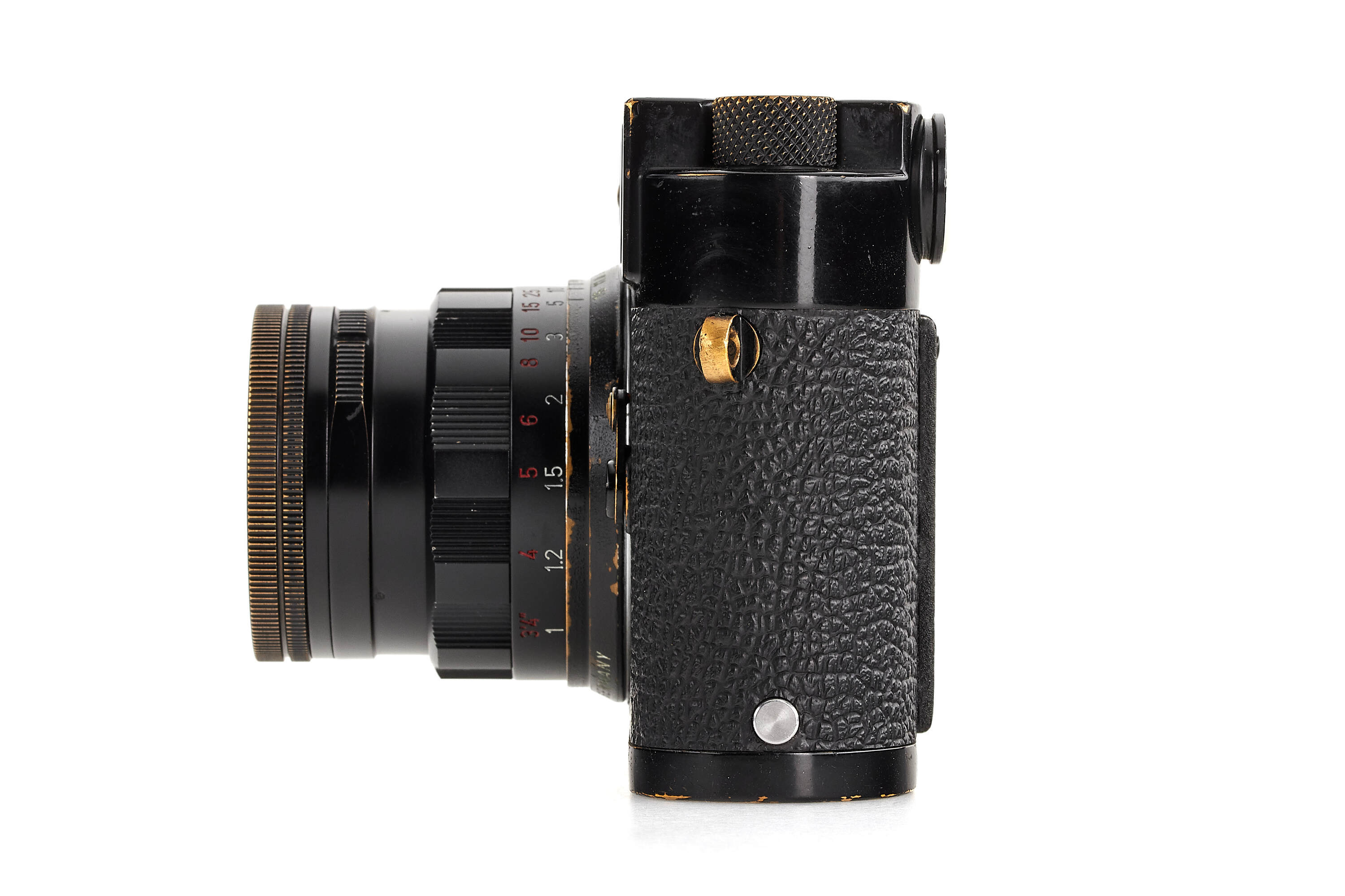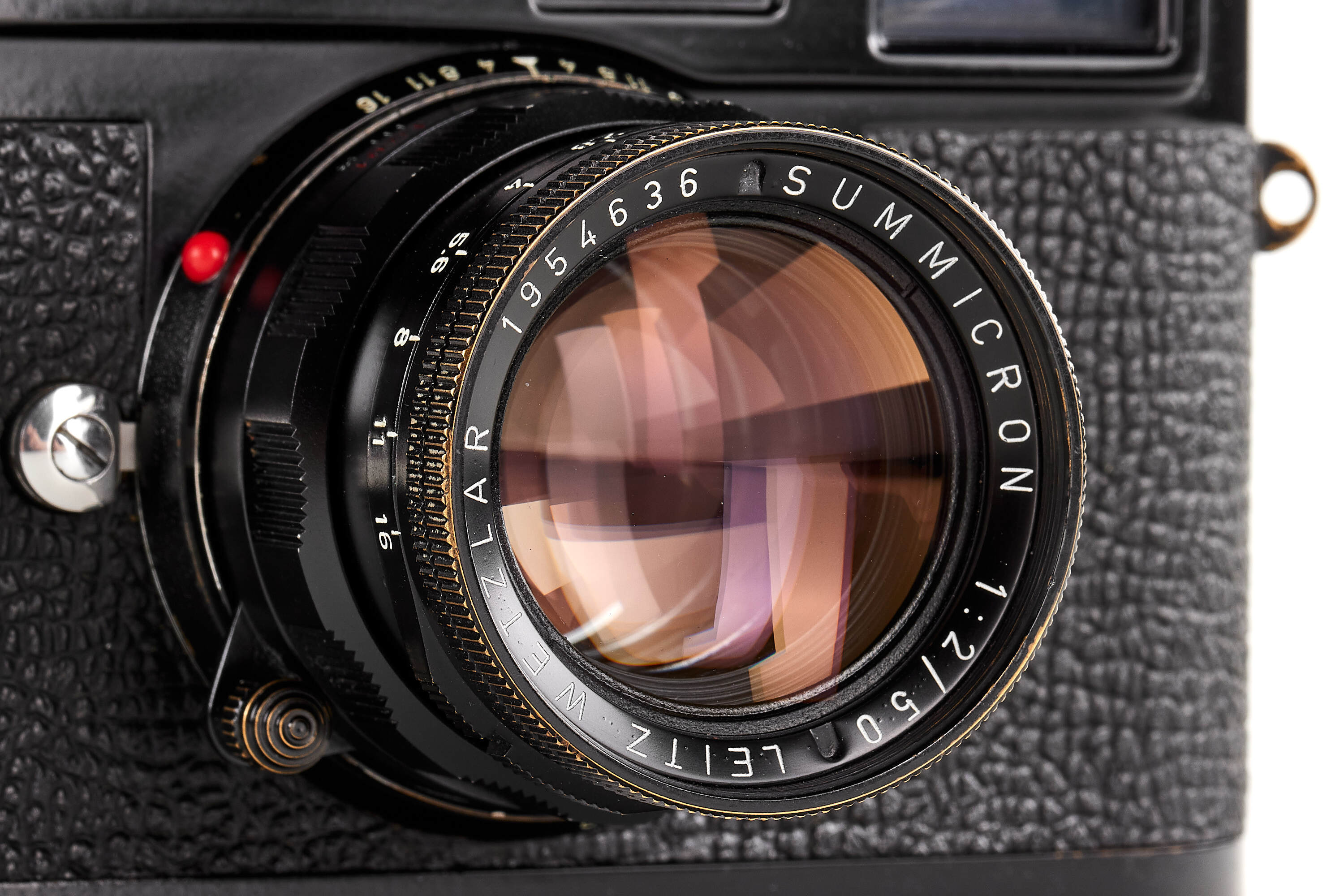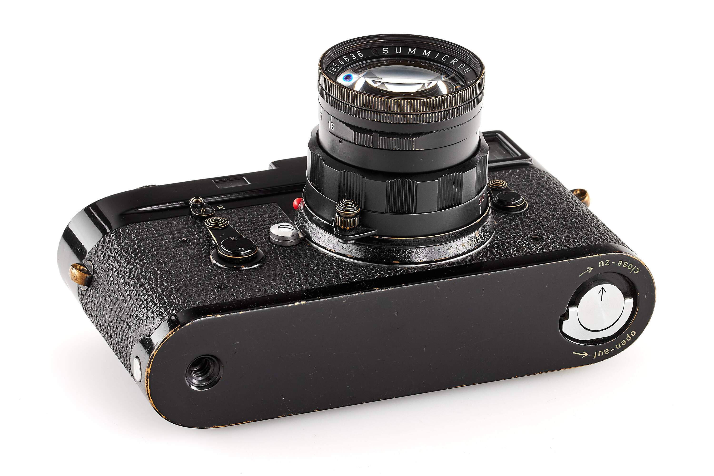 A rare, sought-after Leica M2 in original black paint finish, from a batch of 250 units with nos.1093501-10930750, in good condition, showing an attractive light patina and small bubbles appearing in paint, together with a matching original black paint Summicron 2/50mm no.1954636 with clean and clear optics, both delivered in 1964 to Leitz Hamburg.