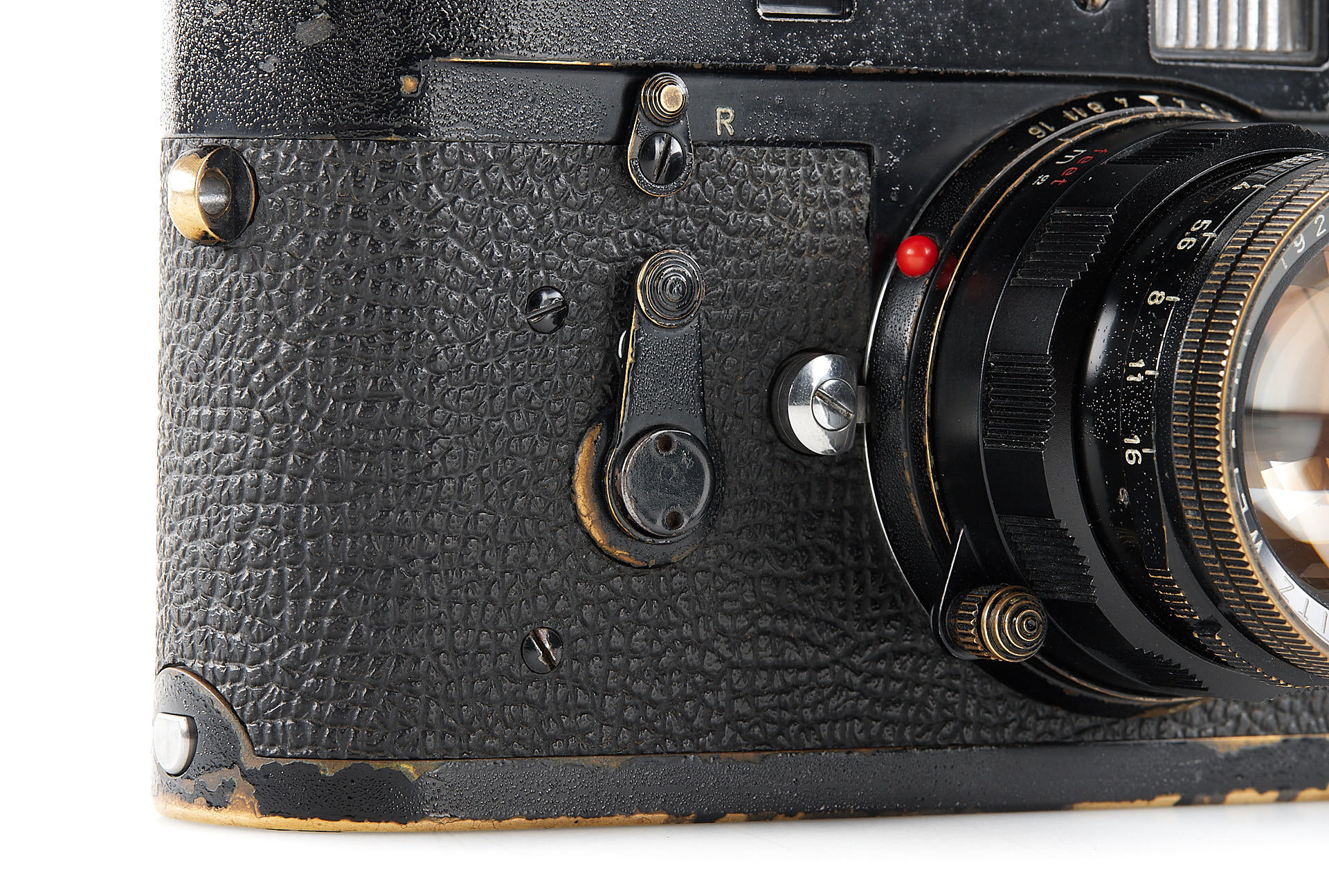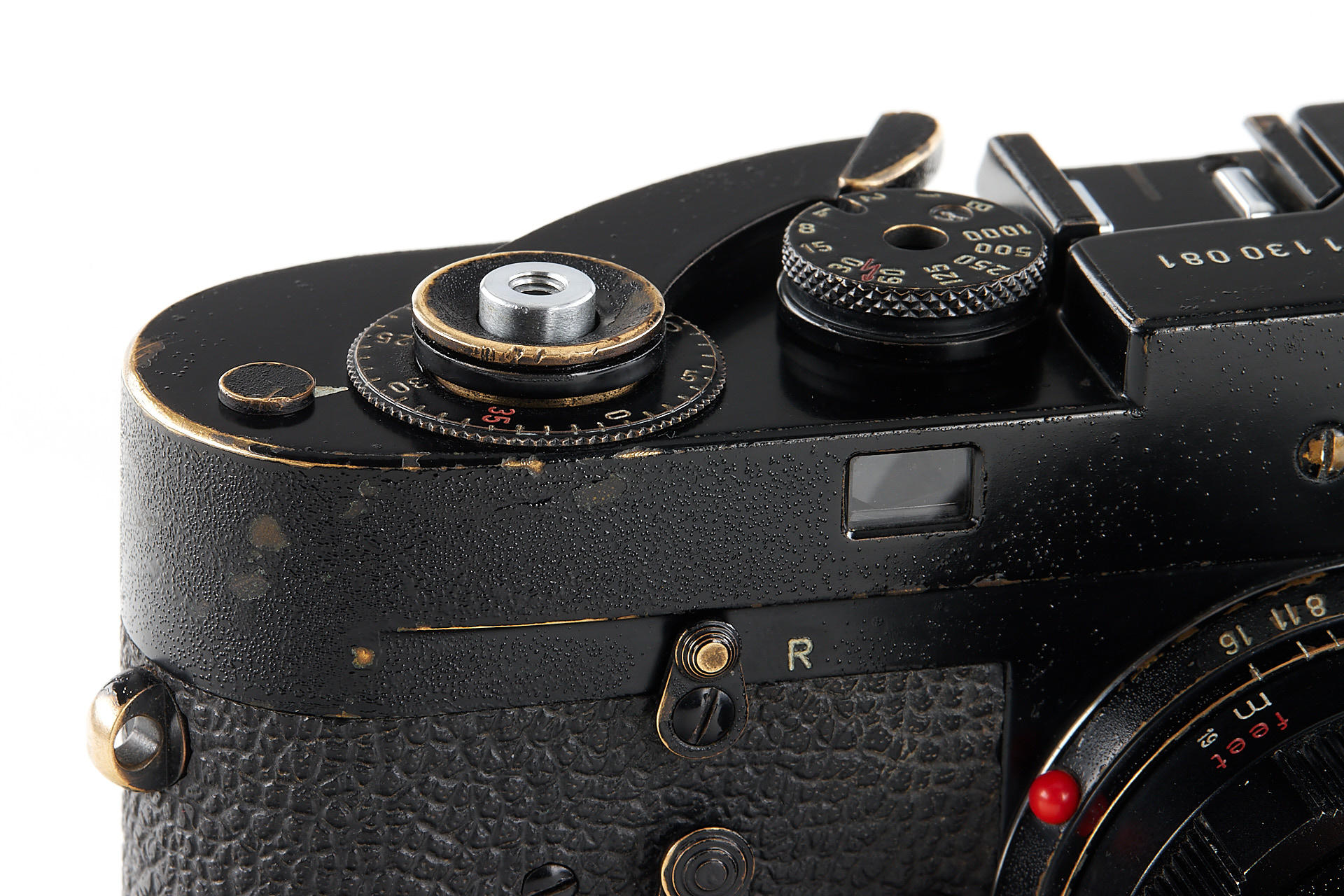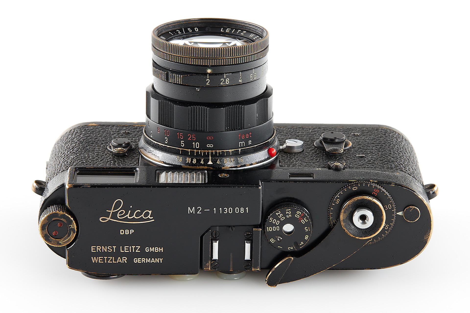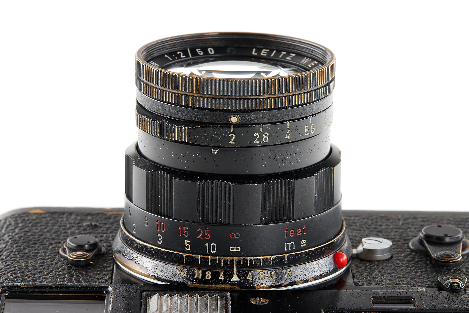 a beautiful, original black paint M2, from an official batch of 300 cameras issued in 1965, in very good condition, small bubbles appearing in the paint, with black paint Summicron 2/50mm no.1926669, black paint lens cap, black paint Leica-Meter MR no.23654