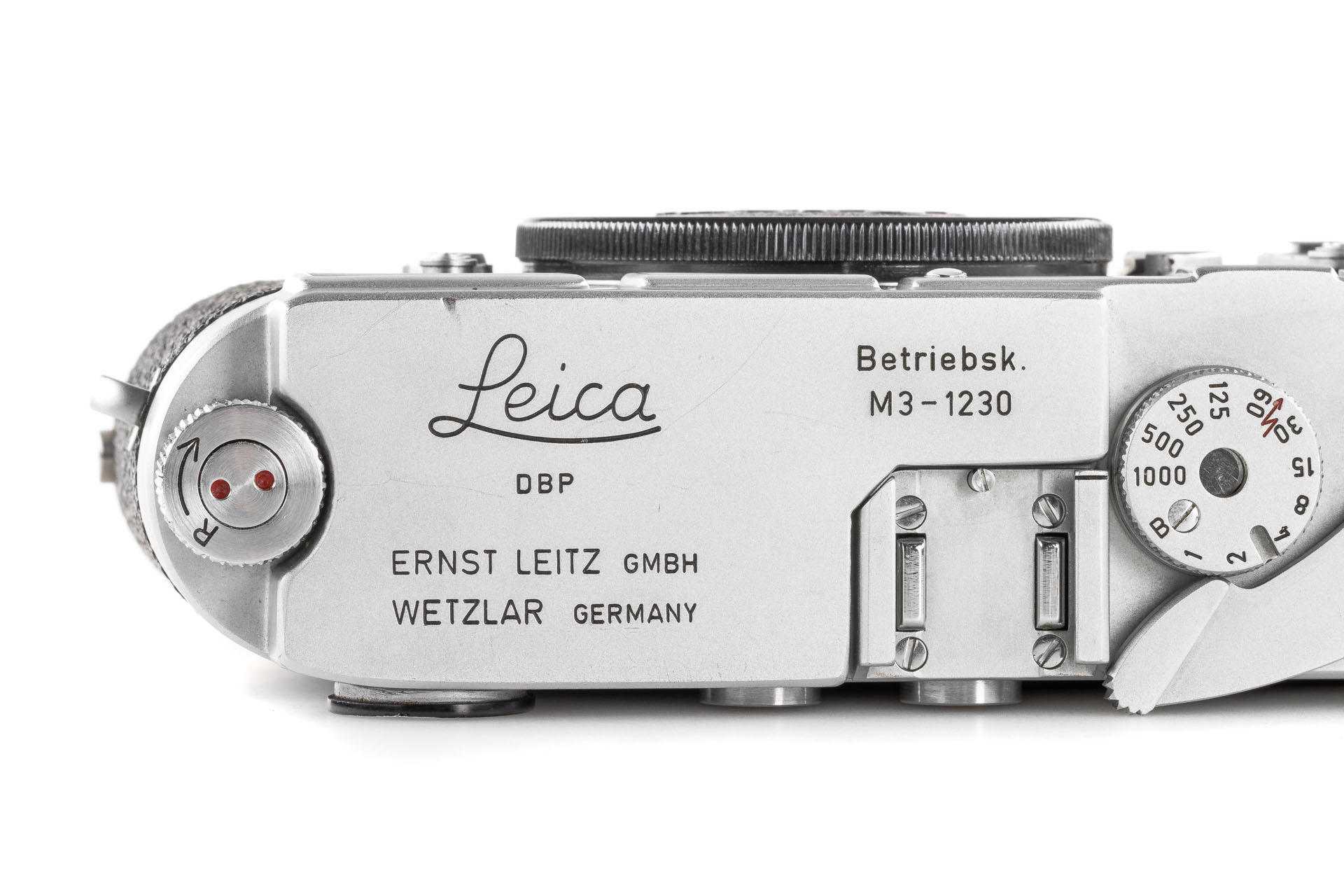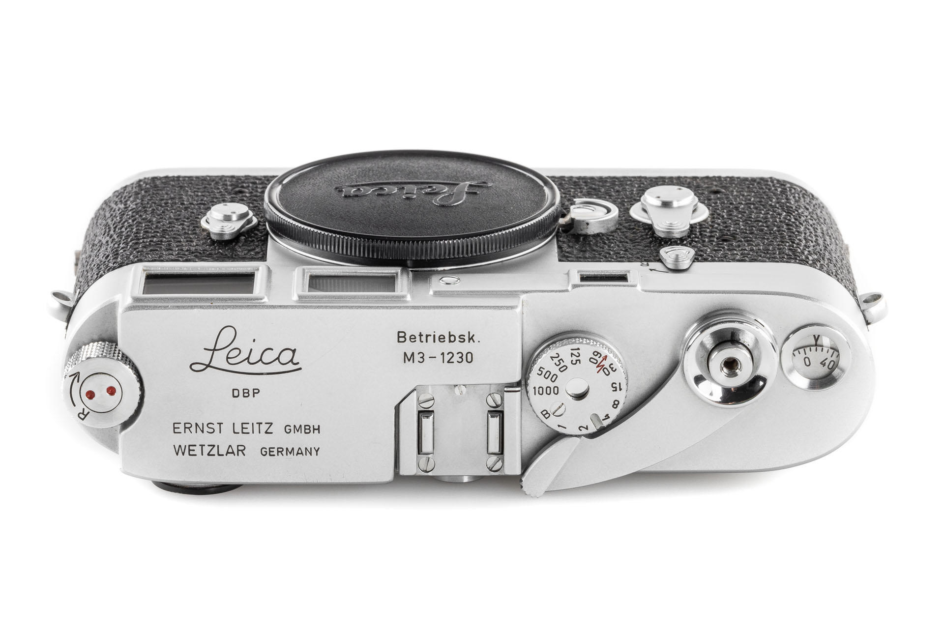 Rare Leica M3 Betriebskamera (for internal use only), in very good cosmetic condition and working order, top plate engraved 'Betriebsk. M3 – 1230'. Provenance: Prof. Helmut Marx - head of the photographic lens design at Leitz, inventor of the Summicron 50mm and Noctilux 1.2. Included with this special camera is a copy of a letter from Leitz from 1986, confirming that the camera was the property of Prof. Marx.