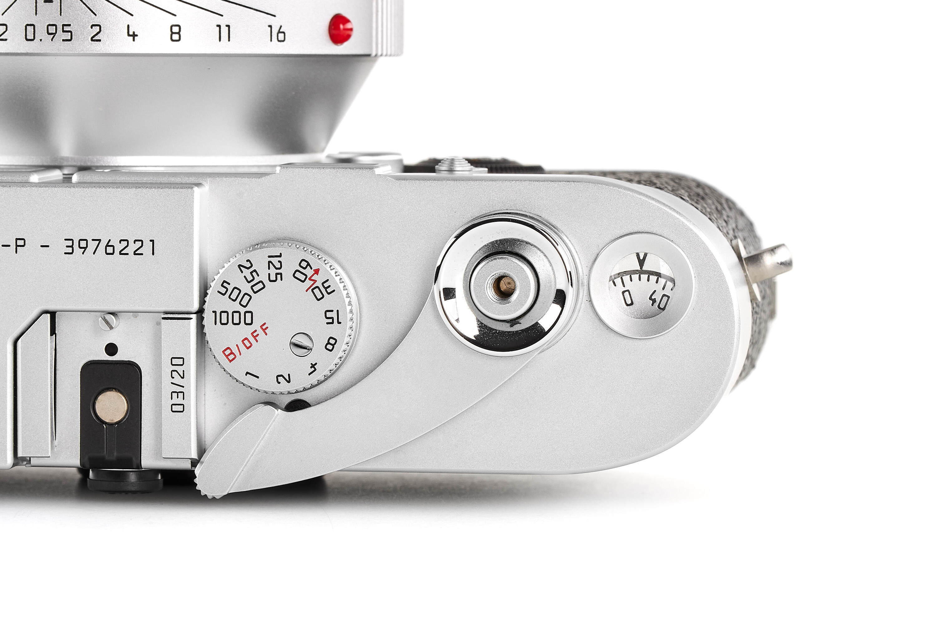 The camera is a modern reinterpretation of the legendary Leica M3, featuring an integrated exposure meter. It is finished in silver chrome with vulcanite cladding and a top plate styled in the classic M3 design. The top plate is engraved with the iconic Leica script and the serial number, while the Special Edition number is marked on the accessory shoe.