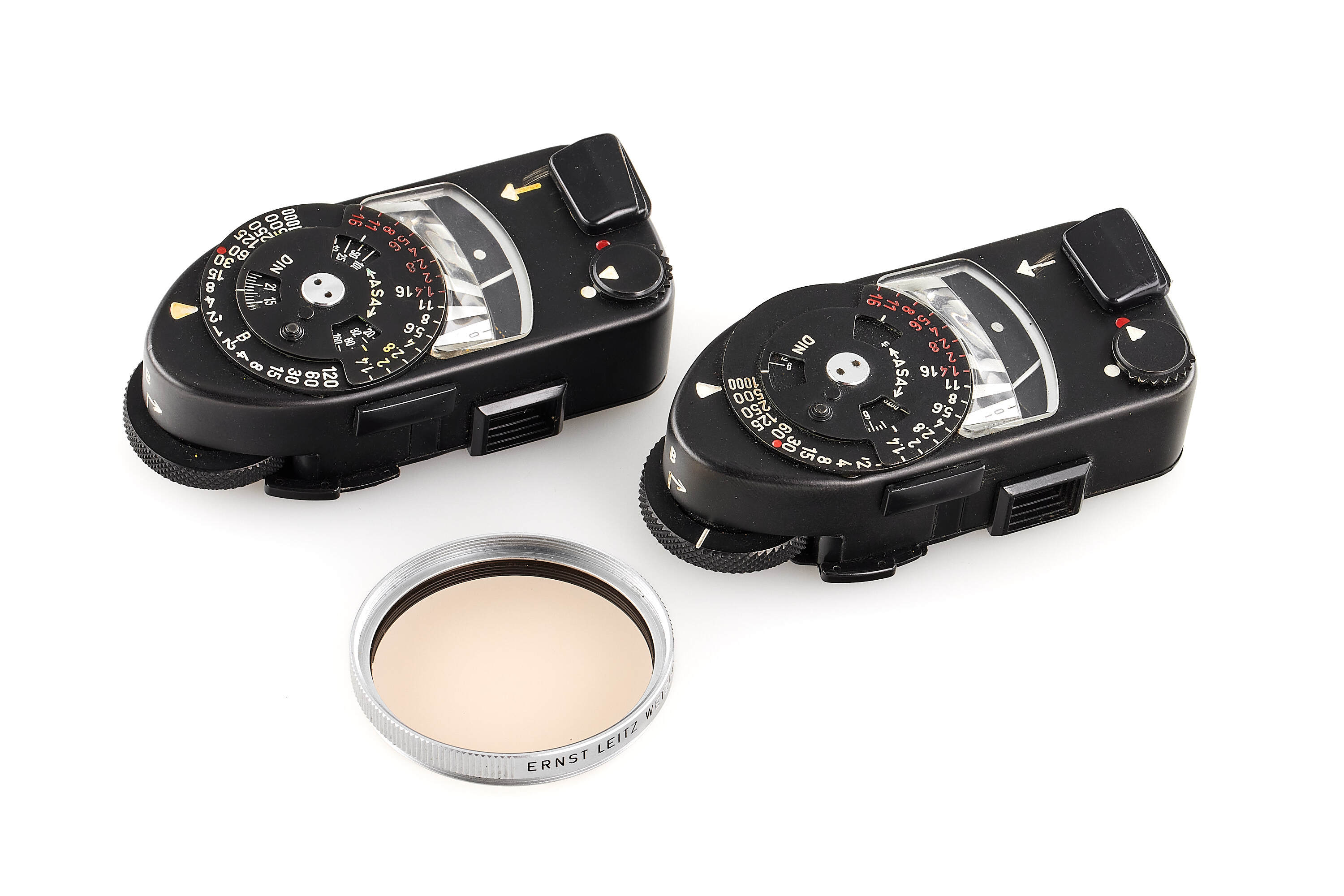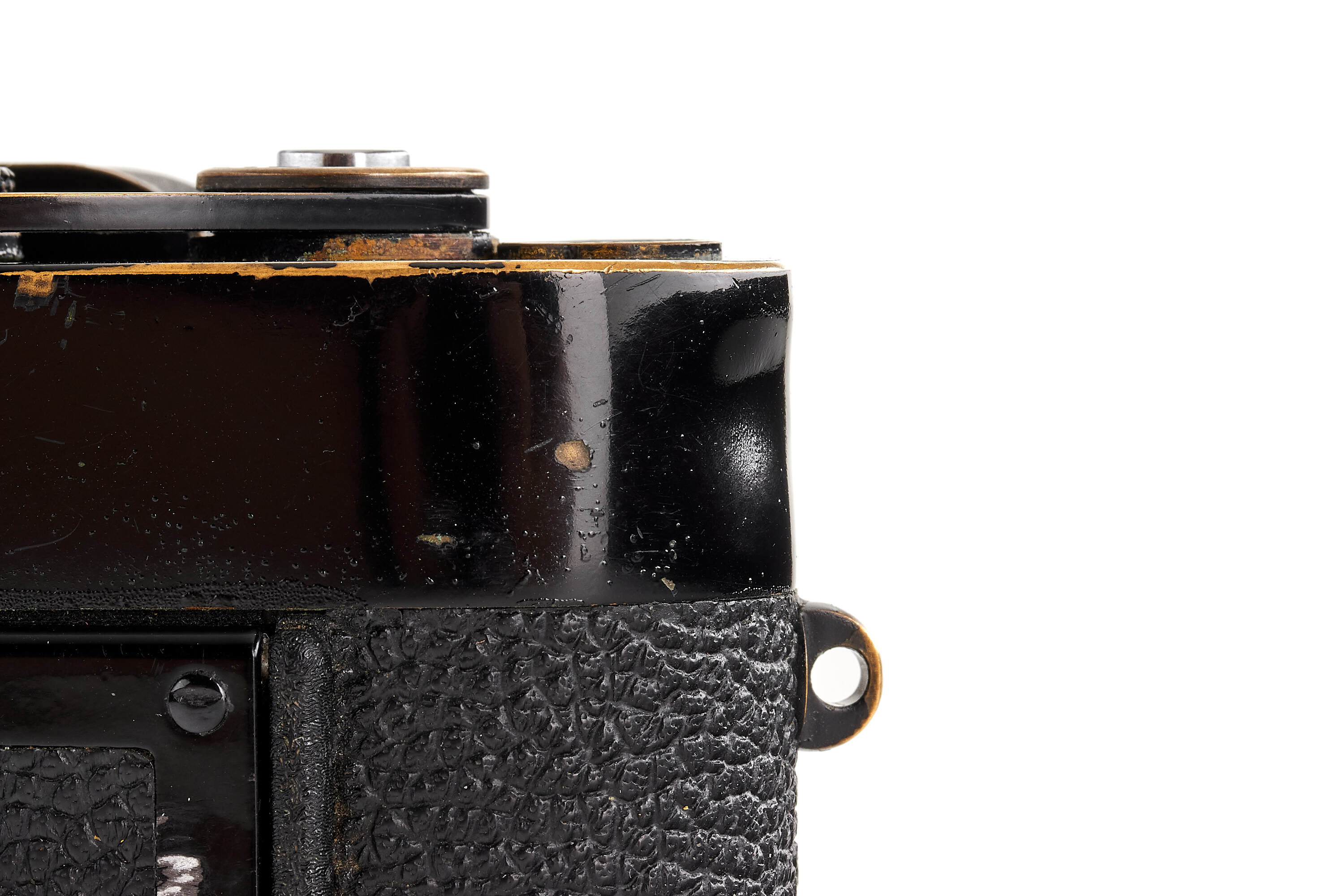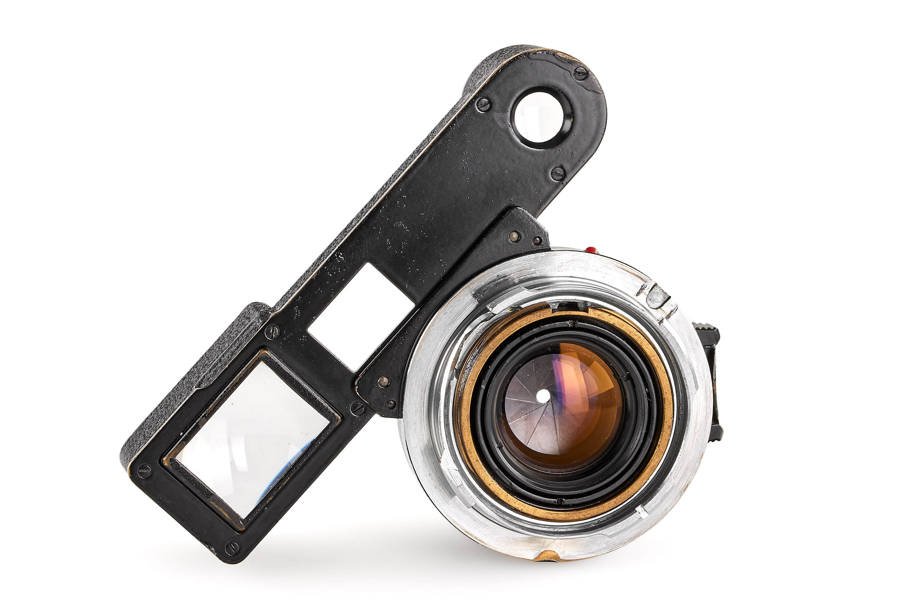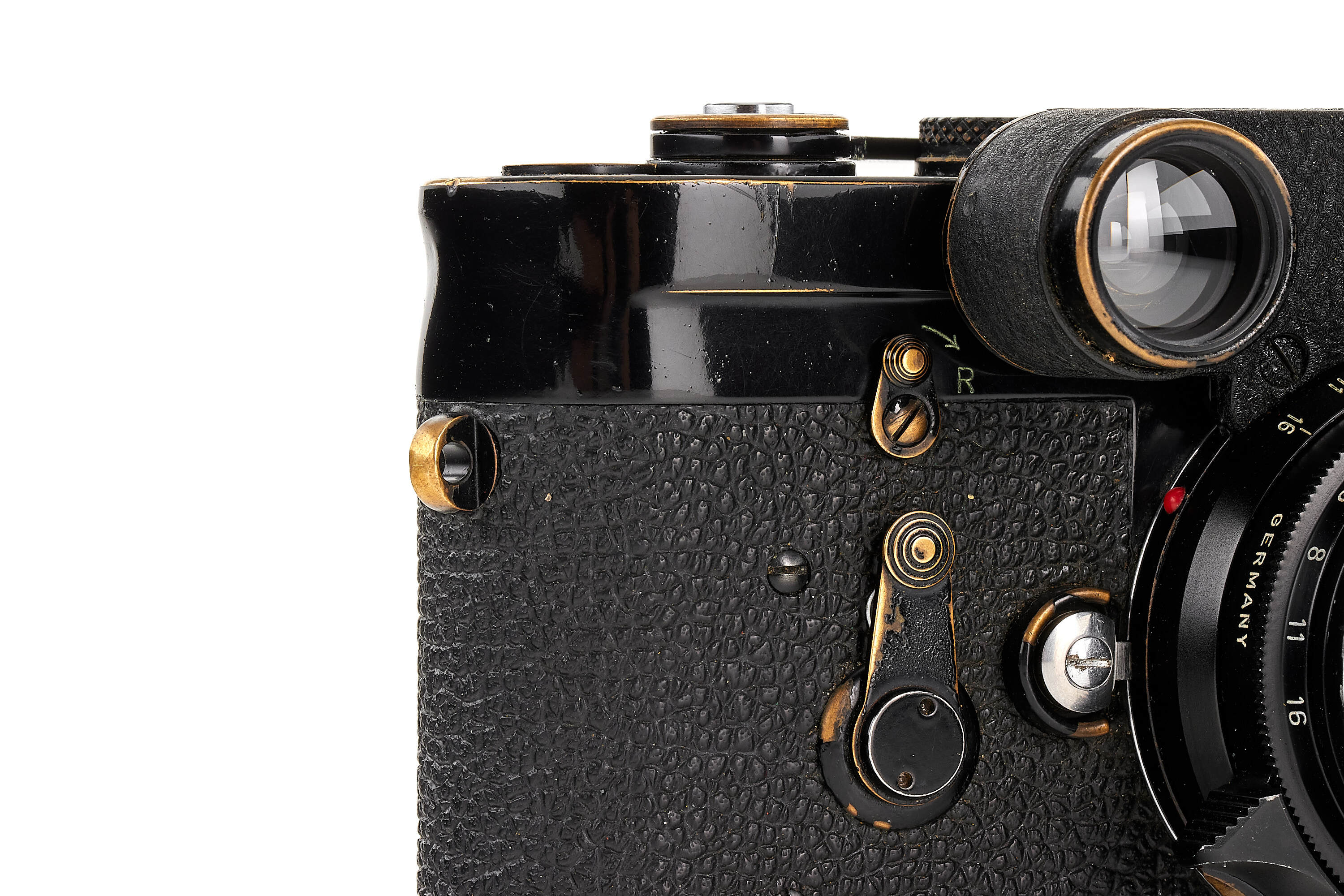 An original M3 black paint from an official batch of 150 cameras issued in 1962, in good condition with a nice patina, a dent on the right side, with sought-after matching black paint Summicron 2/35mm 8-element #1631910, optics showing a few light cleaning marks, both delivered to German Leica retailer Süss in April and May 1963, with hood 12585, eveready case and German instructions.