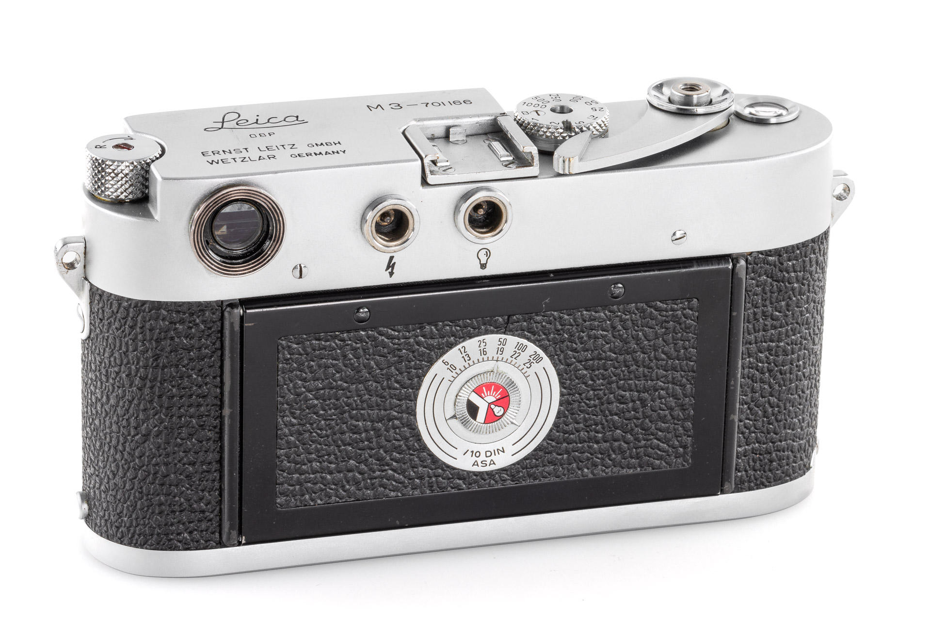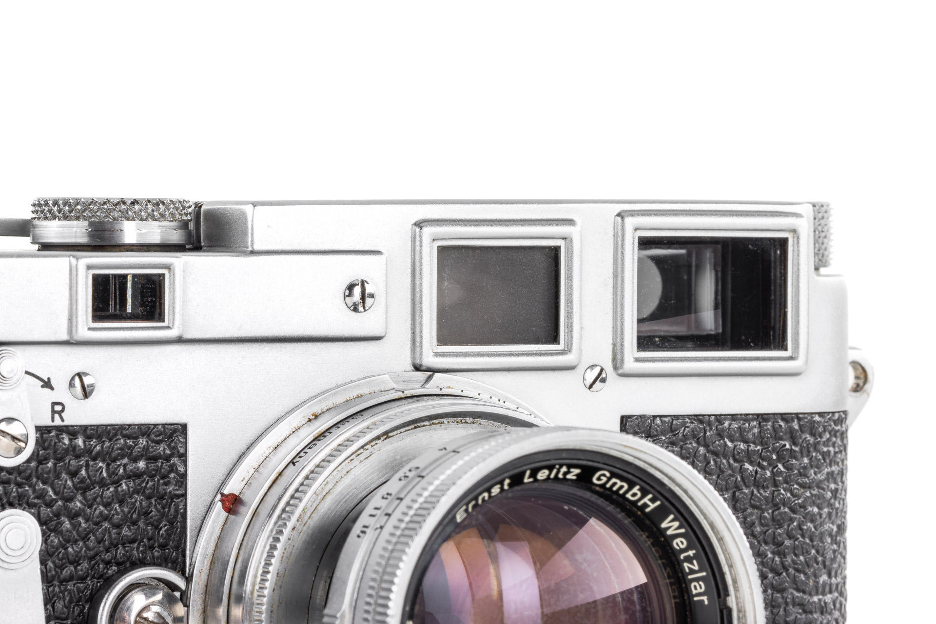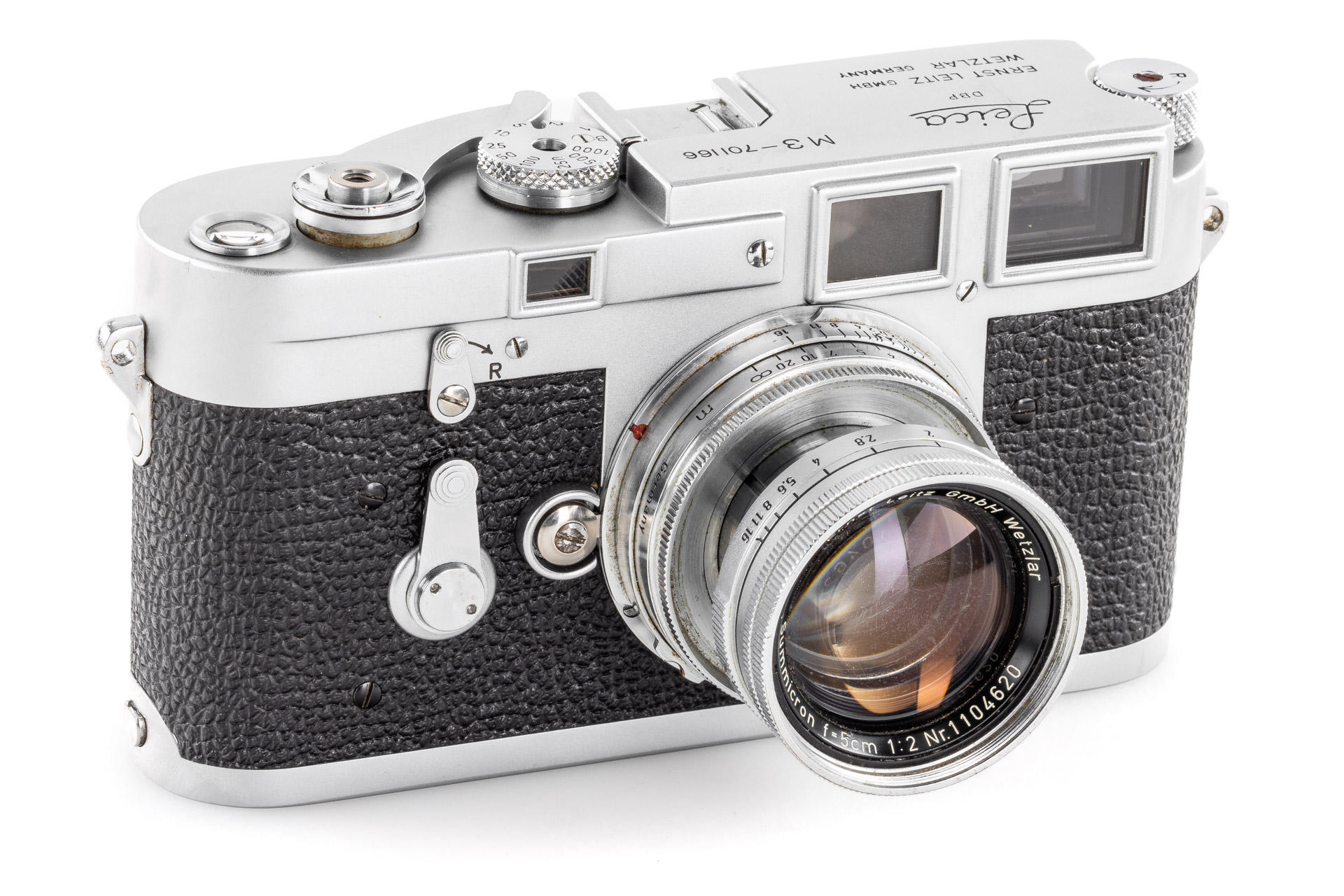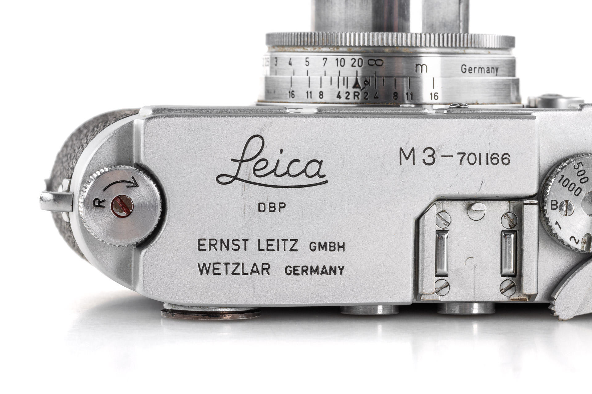 a very early M3 in excellent cosmetic condition and very good working order, with all early features like a shorter winding lever, lack of the 'L' seal, early-type back door with ceramic pressure plate etc., worth mentioning is a different style of the M3 engraving, the camera has been delivered on 25.03.1954 to New York, included in the lot is an early collapsible Summicron 2/5cm no.1104620 (M39 with an M-adapter, some cleaning marks on the front element), lens cap, leather case