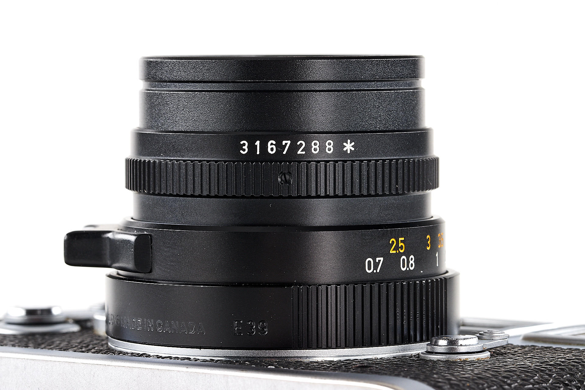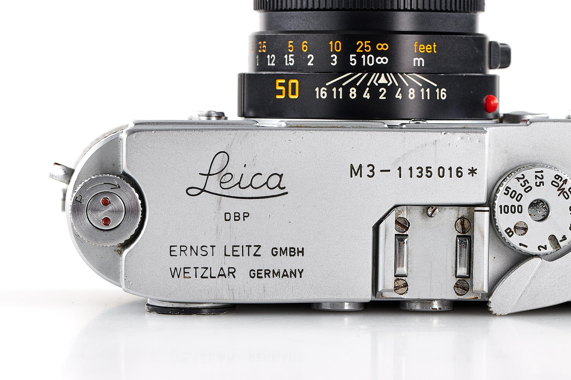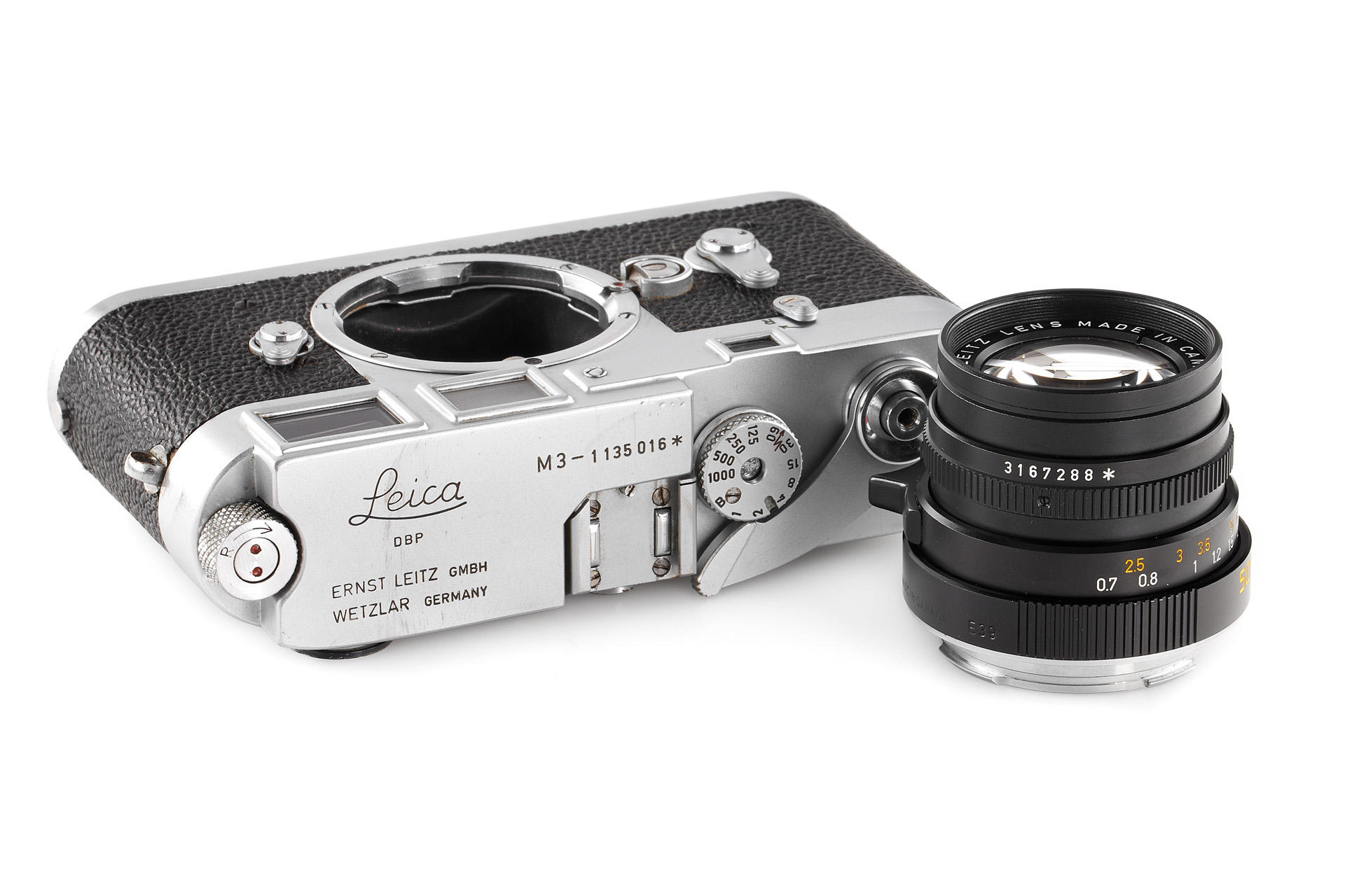 quite rare single stroke body assembled by ELCAN in Canada, in very good condition and working order - from a batch of 100 cameras (nos.1135001-1135100) finished in Midland in 1965, with mint Summicron 2/50mm no.3167288* (Cond. A-) also made in Canada, clean and clear lenses, with 12538 hood and front cap, it is interesting to note that both camera and lens have a serial number with a '*', denoting a duplicate delivery