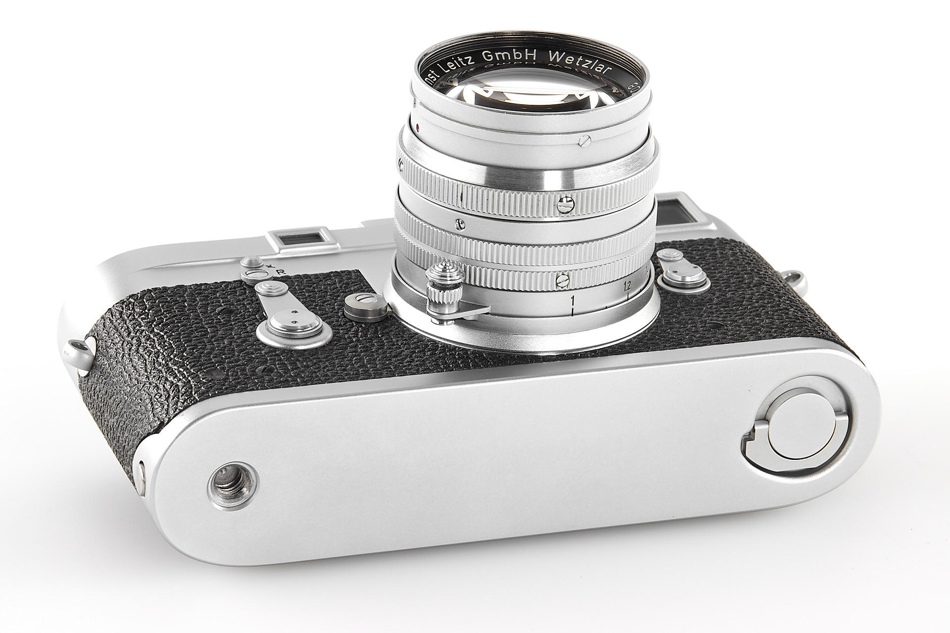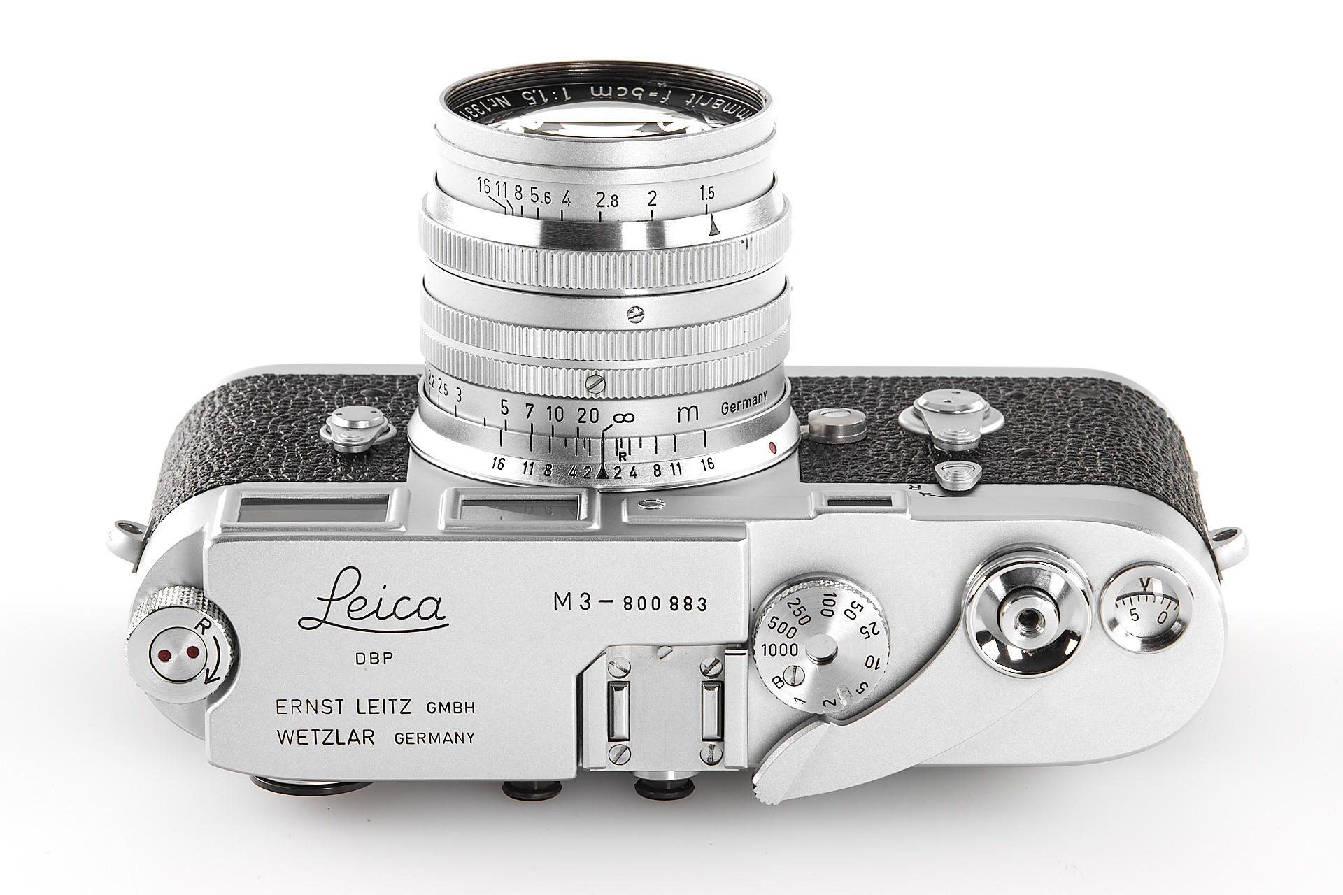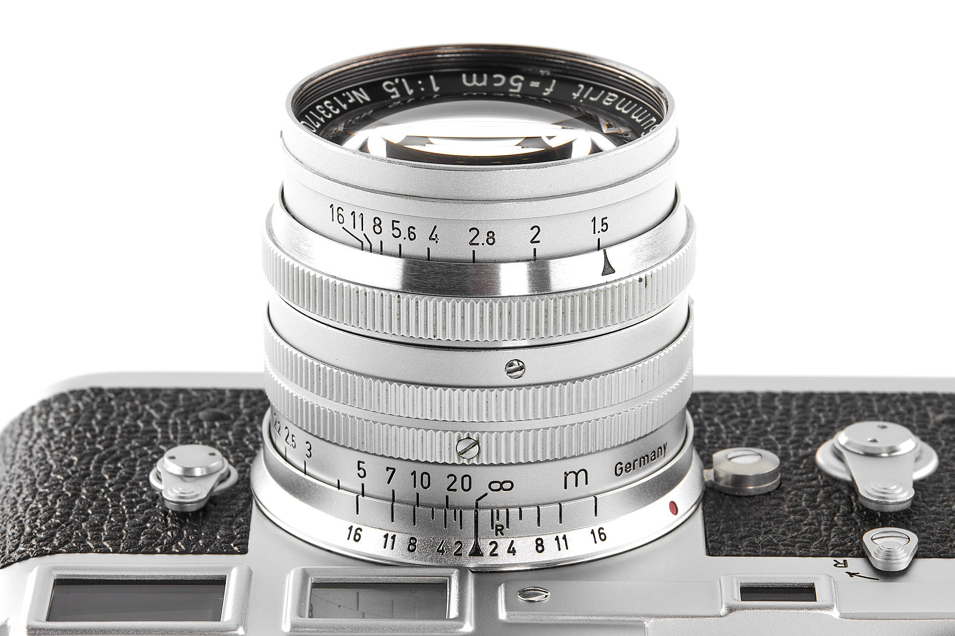 Beautiful single stroke version in mint condition and in working order (factory upgraded from Double Stroke), rangefinder with good contrast, with matching and mint Summarit SOOIA-M 1.5/5cm no.1331708 (lenses in outstanding condition), with ever ready case and red maker's box