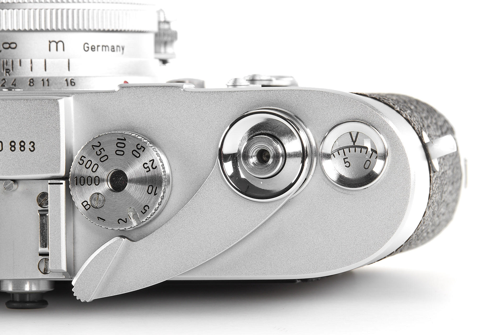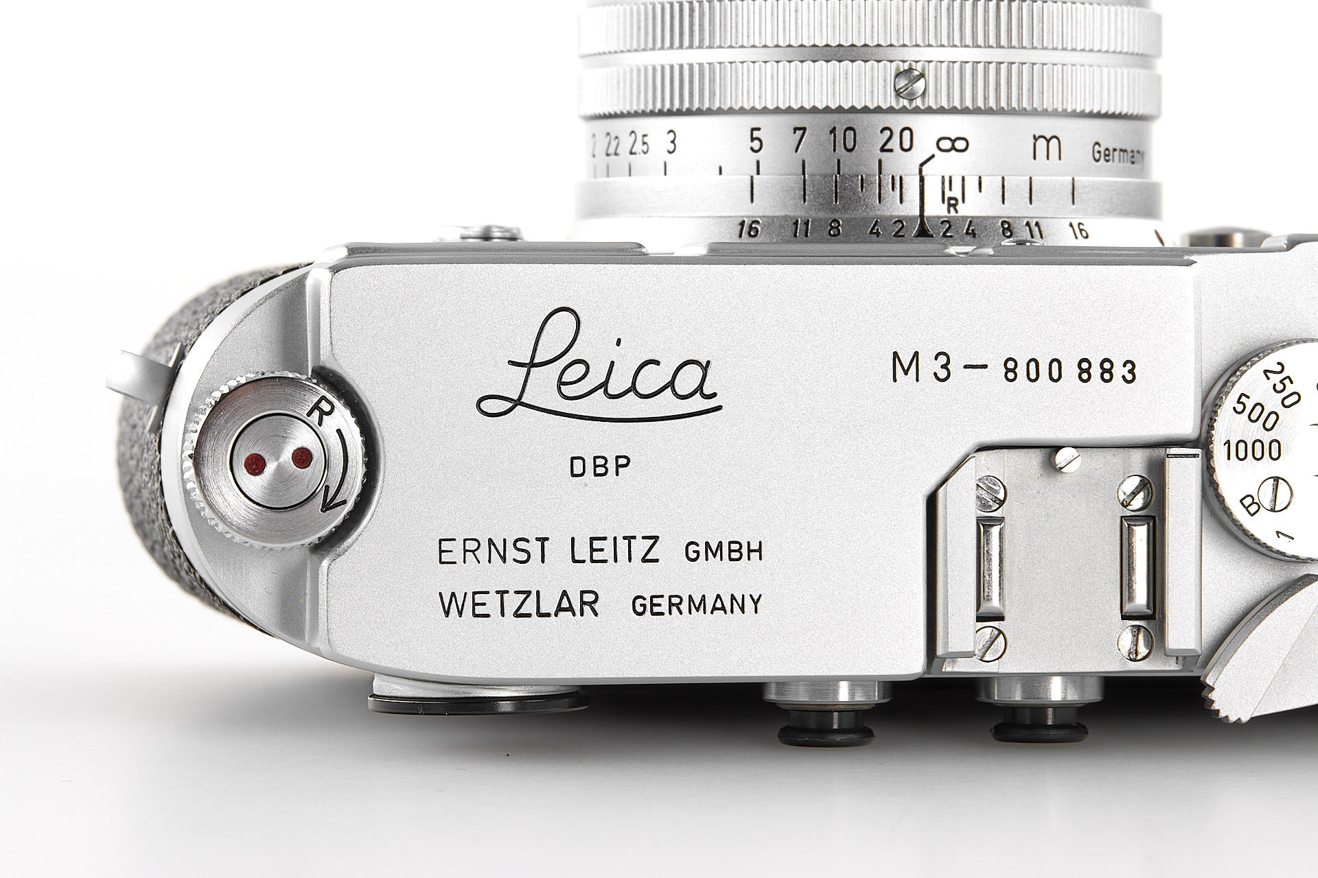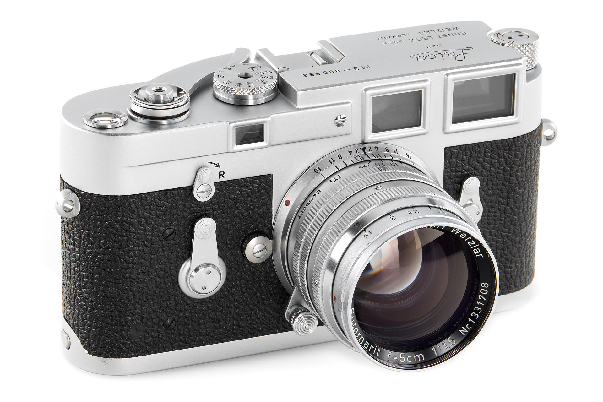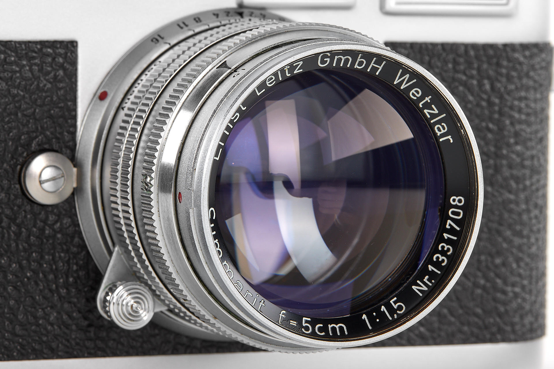 Beautiful single stroke version in mint condition and in working order (factory upgraded from Double Stroke), rangefinder with good contrast, with matching and mint Summarit SOOIA-M 1.5/5cm no.1331708 (lenses in outstanding condition), with ever ready case and red maker's box