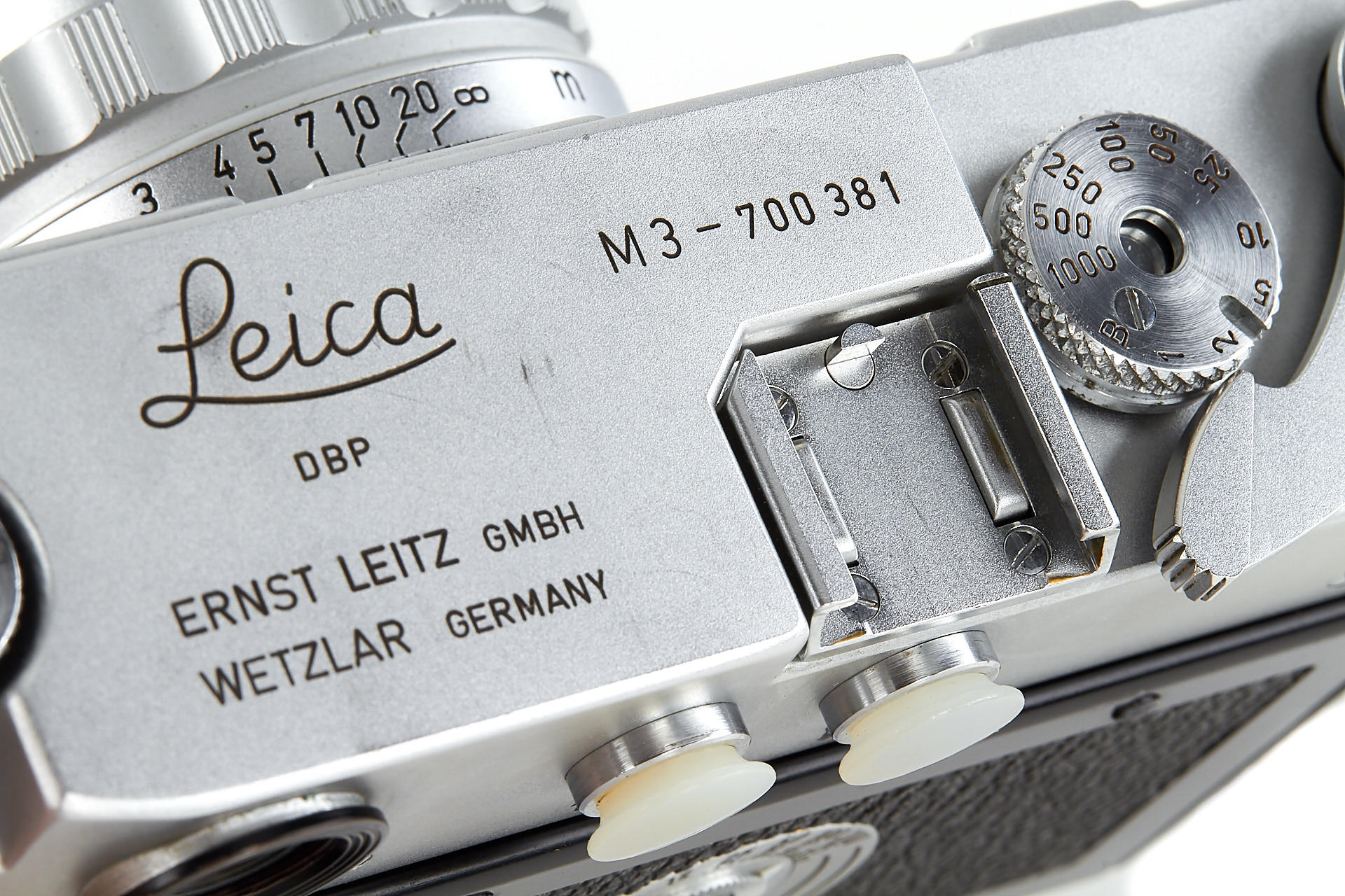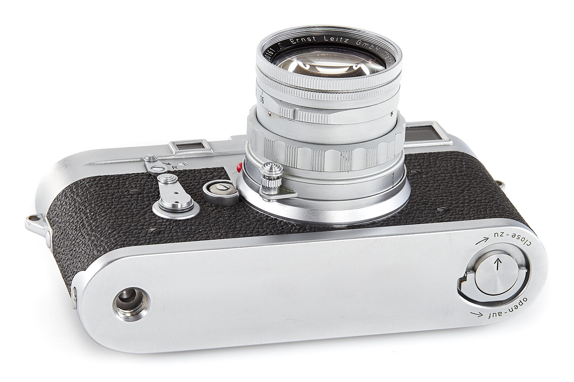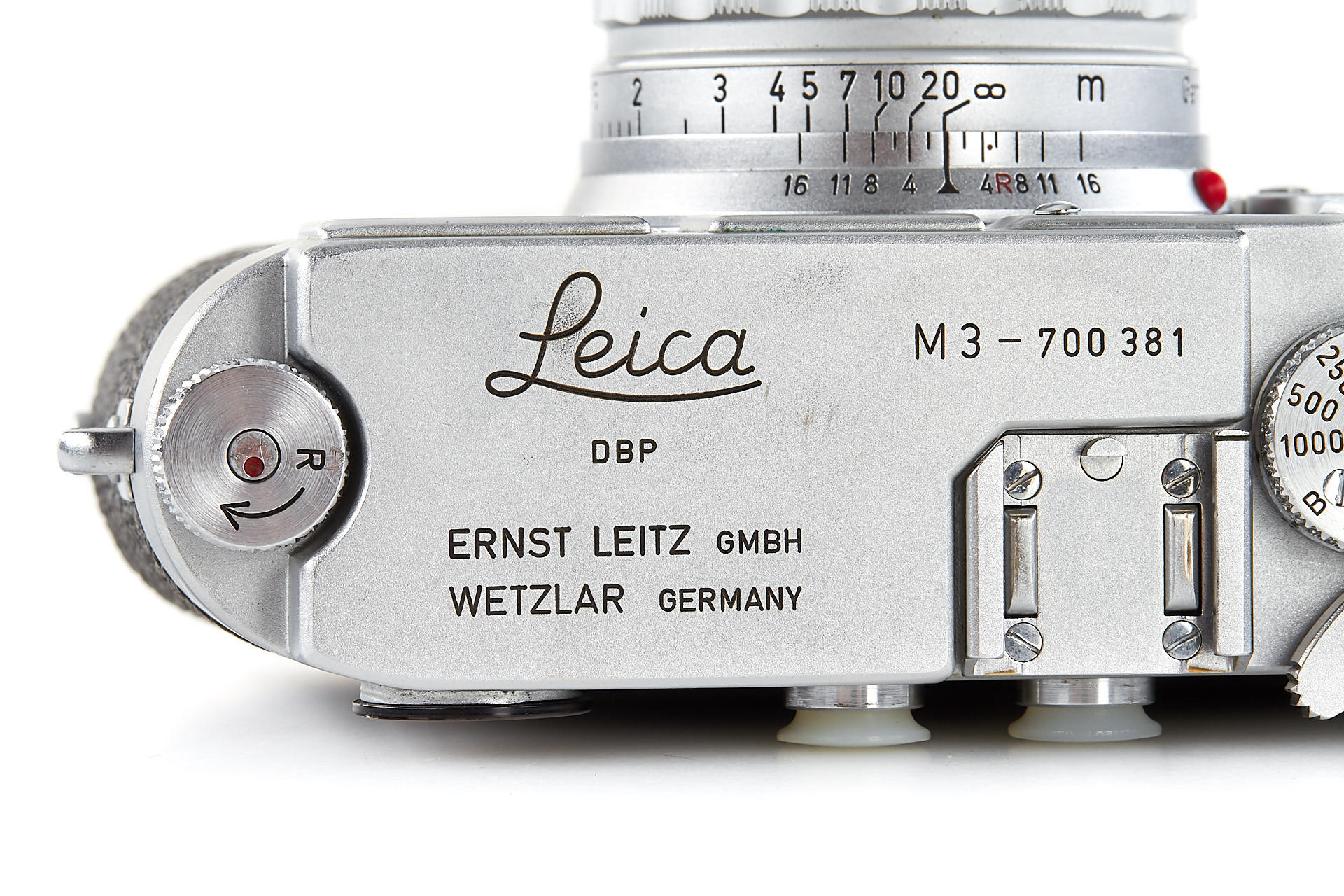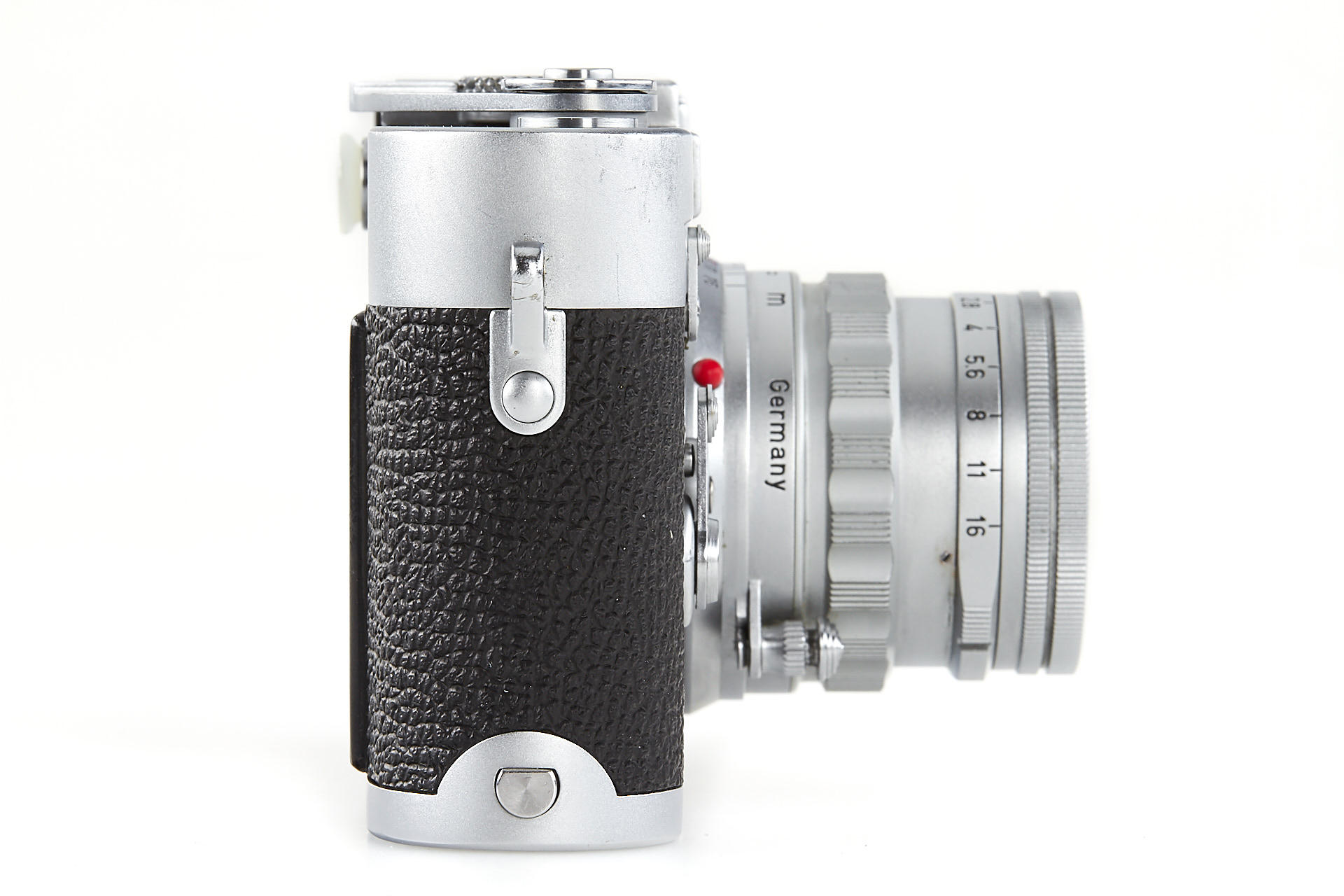 a very early M3 in with all original features like the early back door, longer rewind lever, no L seal etc., in very good condition, with very early rigid Summicron 2/5cm no.1400161 (the production started with the number 1400001) in excellent condition with good optics