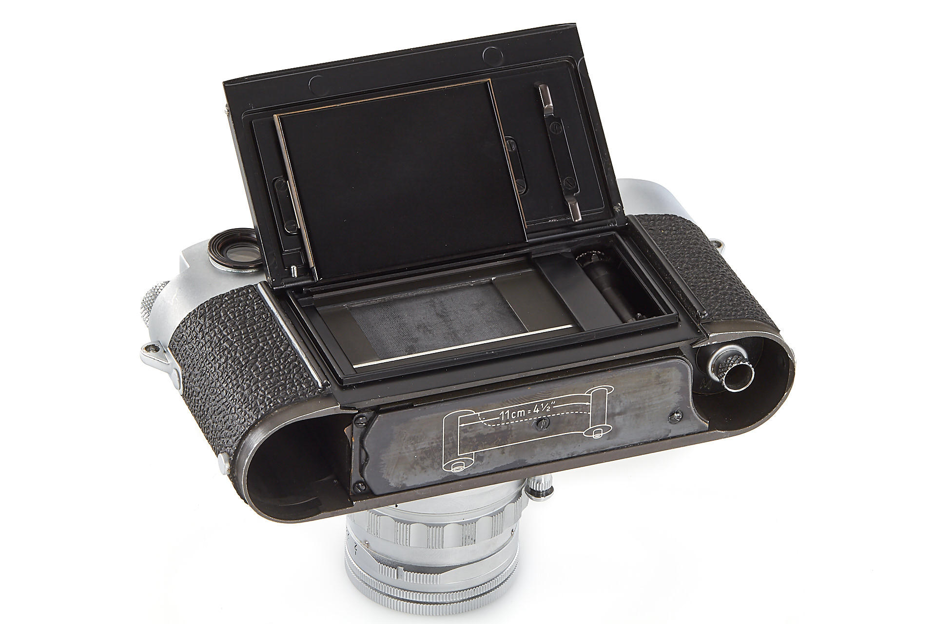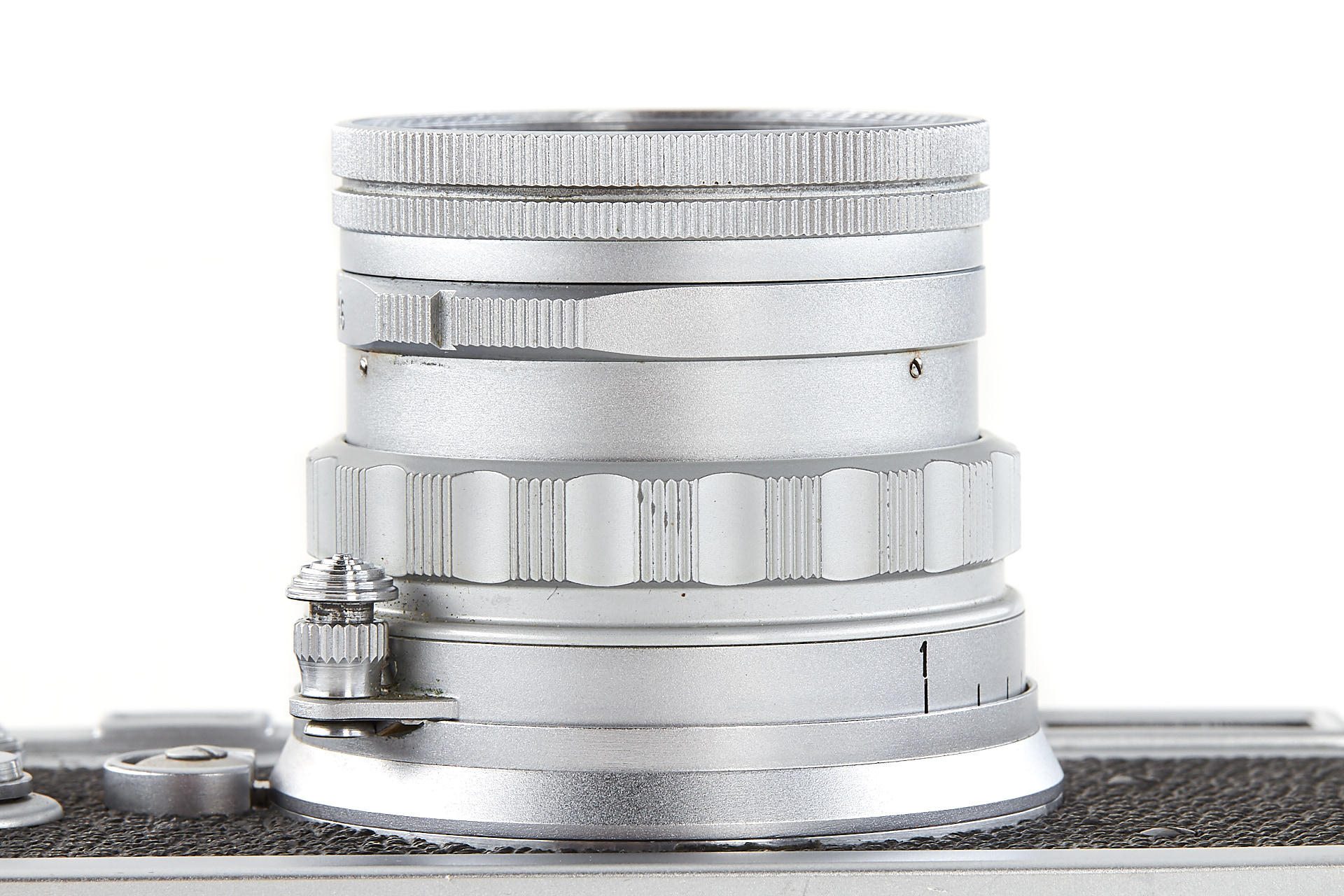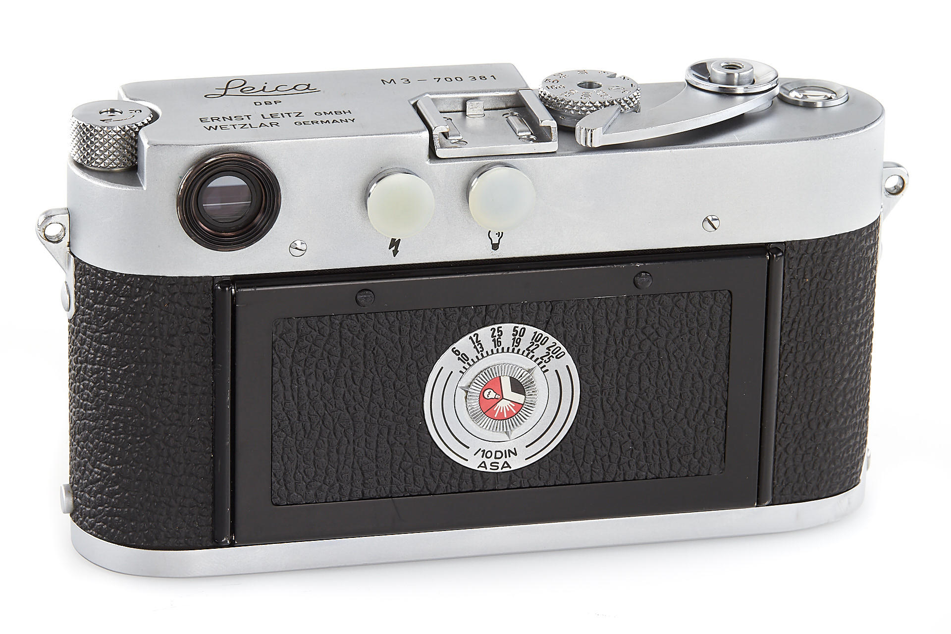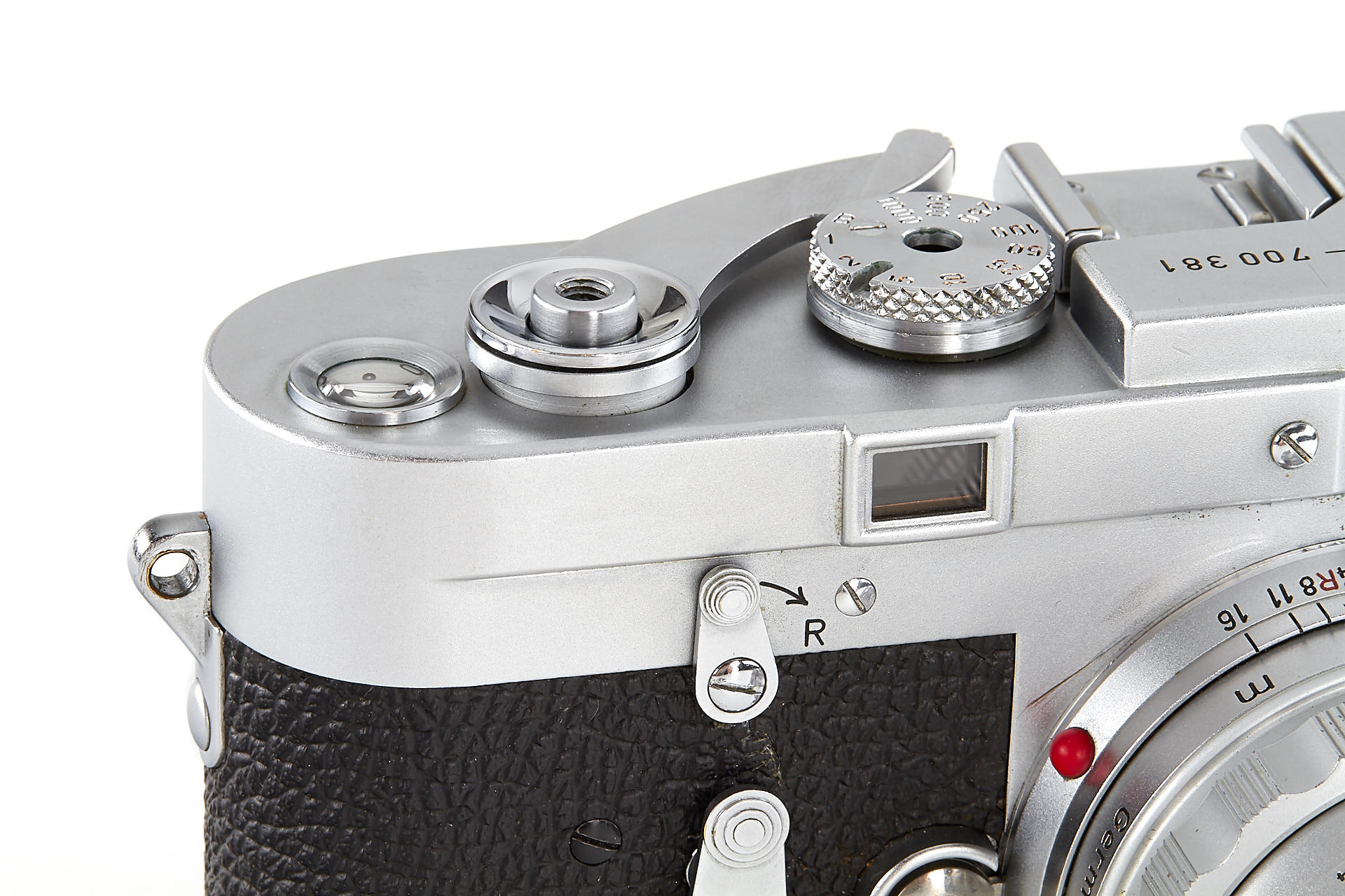 a very early M3 in with all original features like the early back door, longer rewind lever, no L seal etc., in very good condition, with very early rigid Summicron 2/5cm no.1400161 (the production started with the number 1400001) in excellent condition with good optics