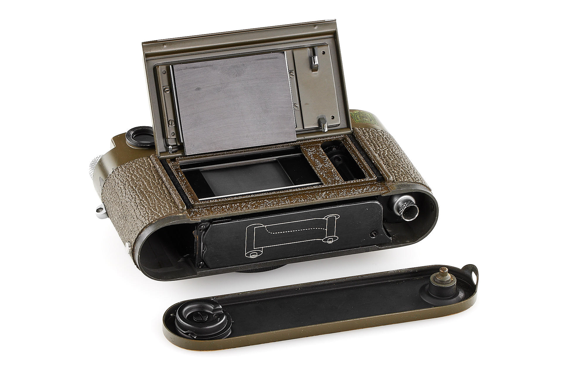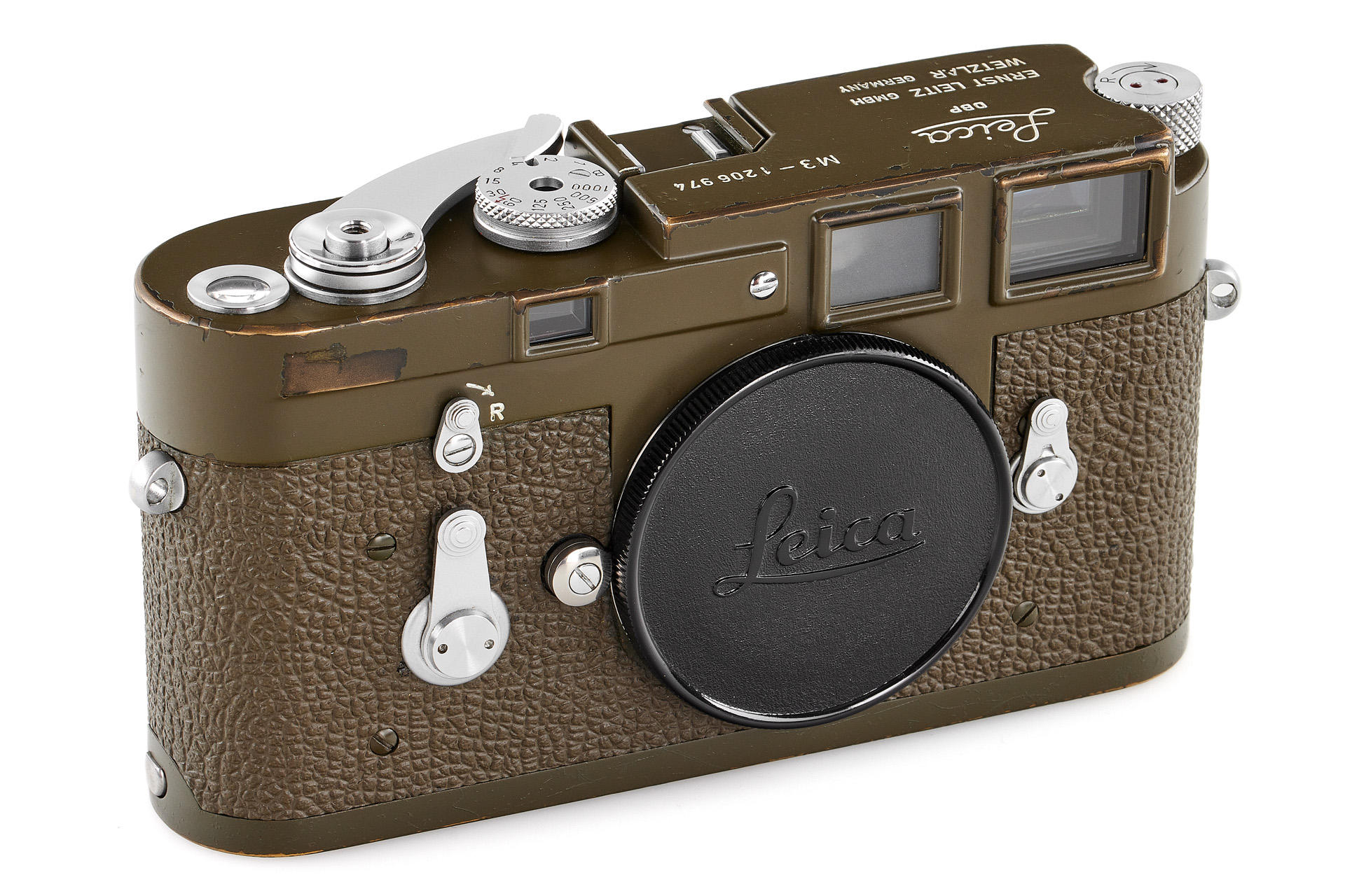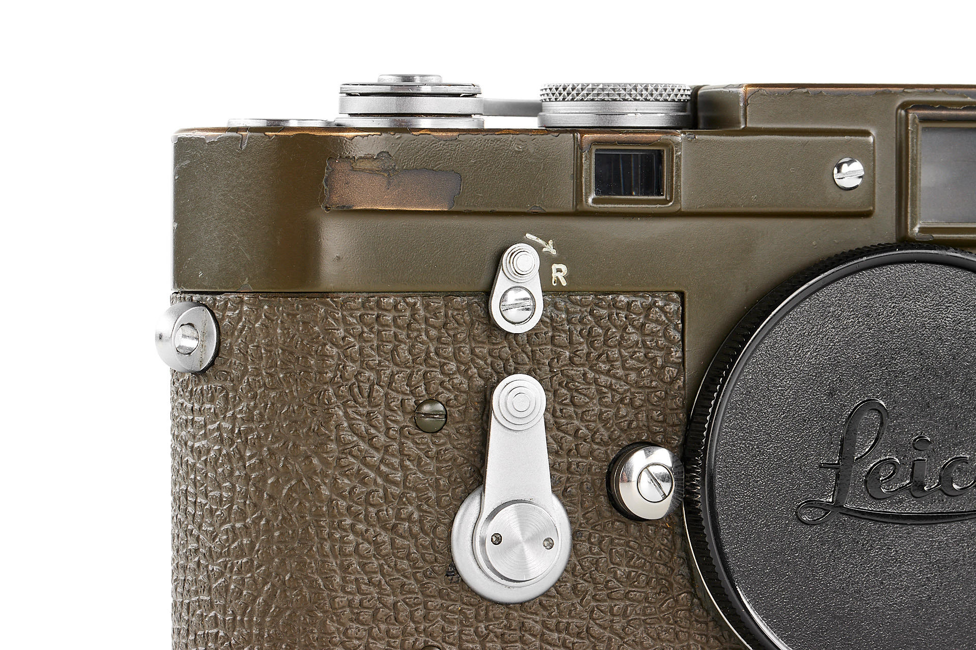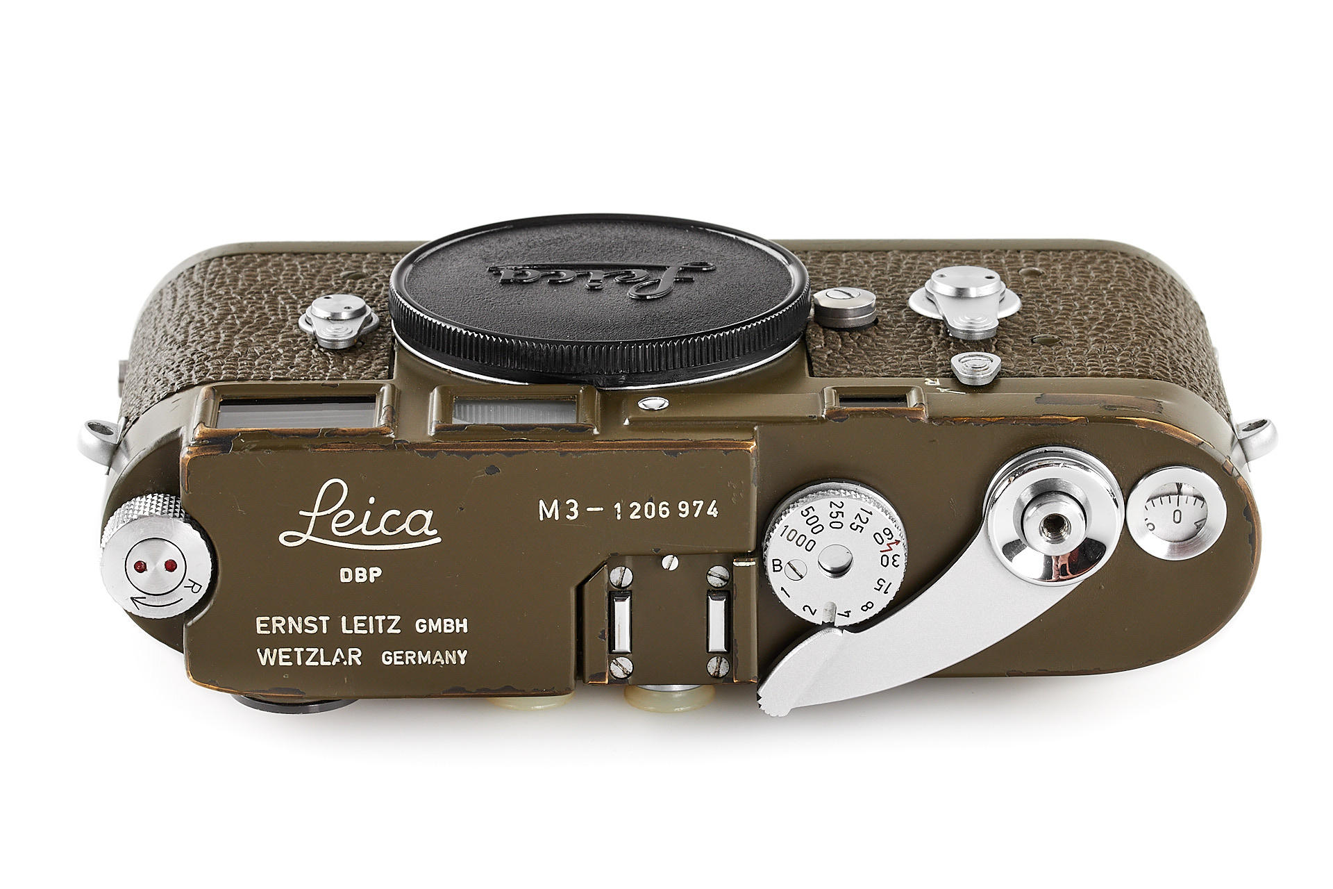 extremely rare one of the last M3 cameras made, ordered by the German army (nos.1206962-1206999) after general production has ceased, engraved 'Bundeswehreigentum', original sticker on the back, and inventory sticker on the base plate, note that these cameras had no lens lock release guard, in very good original condition and working order, with body cap
