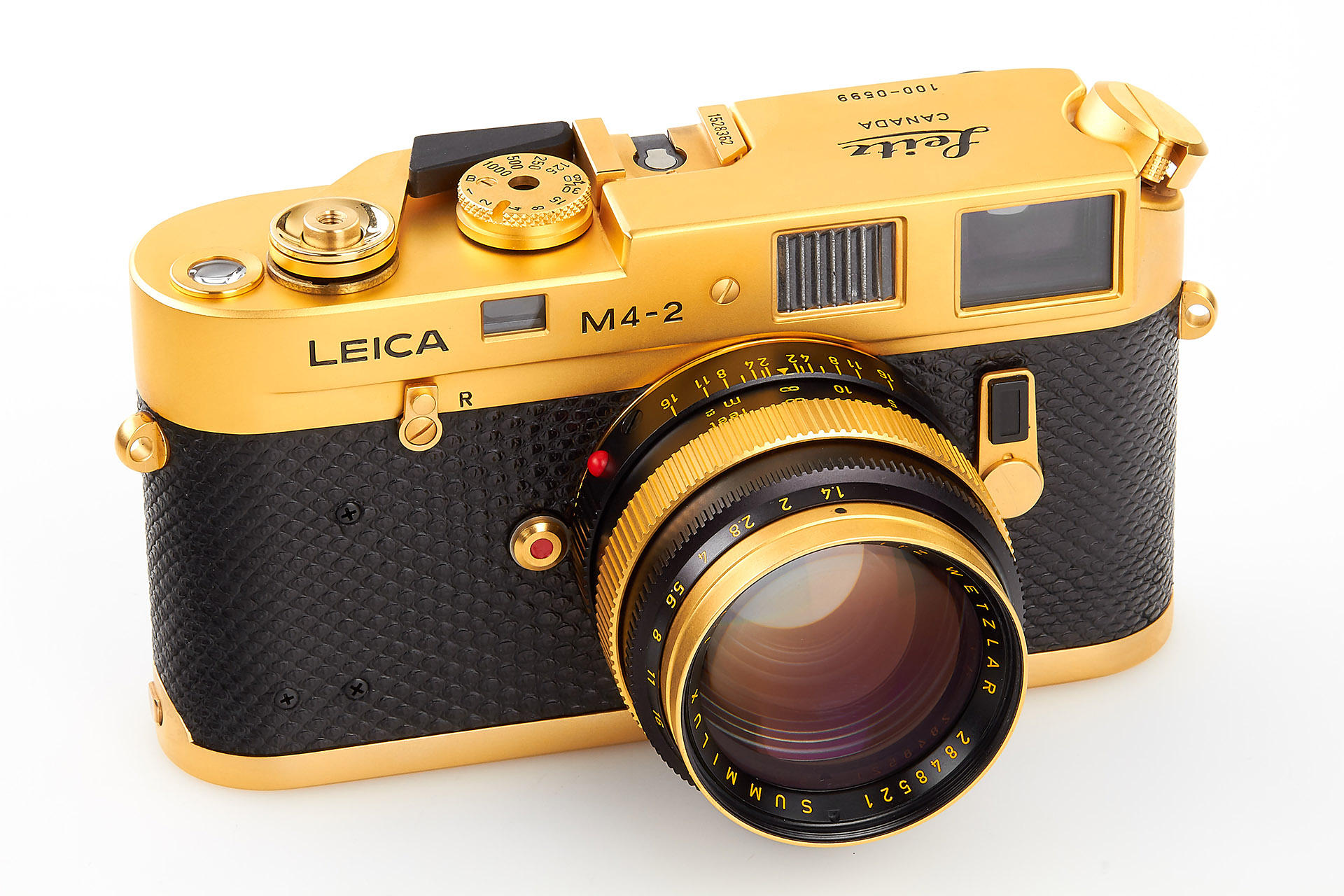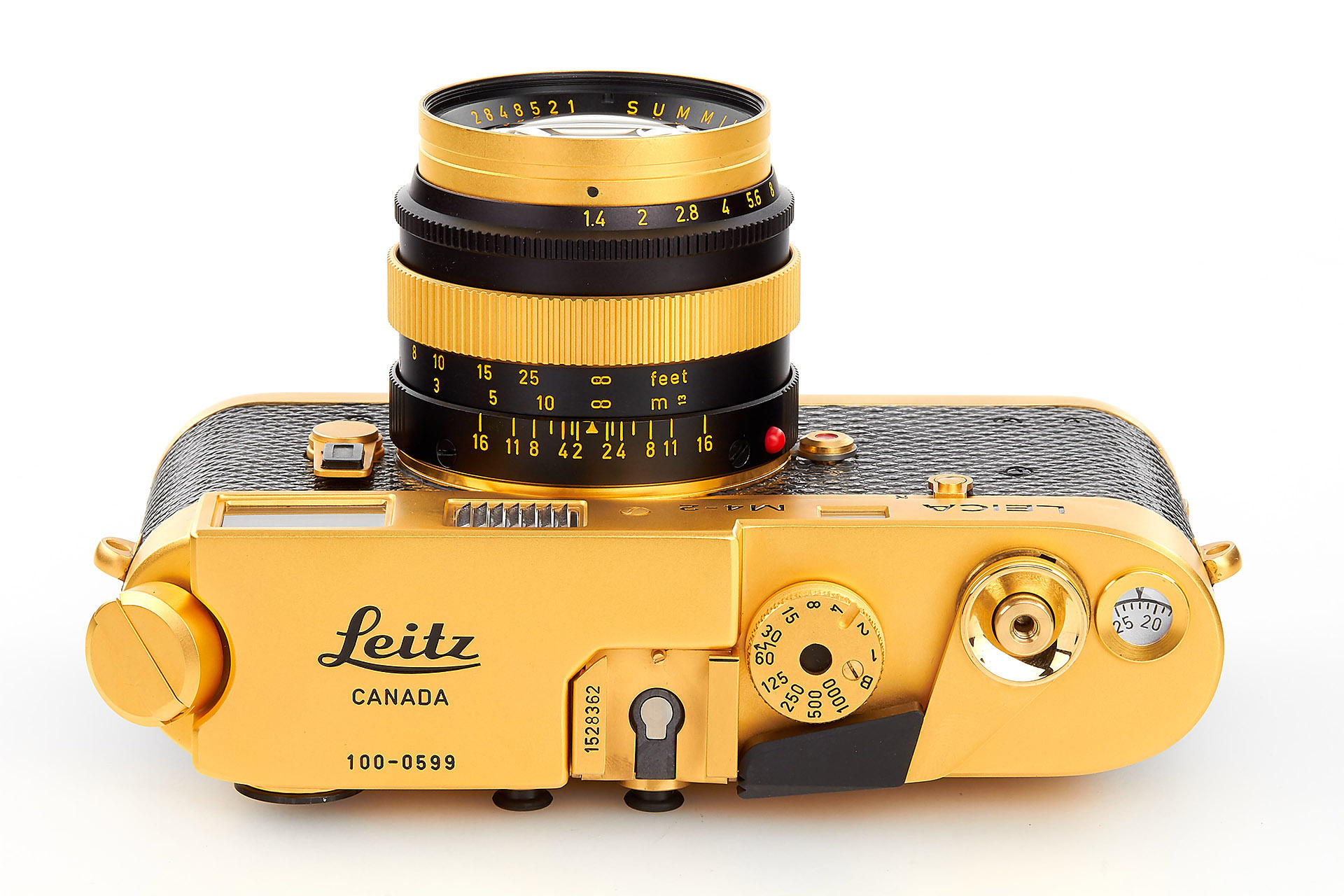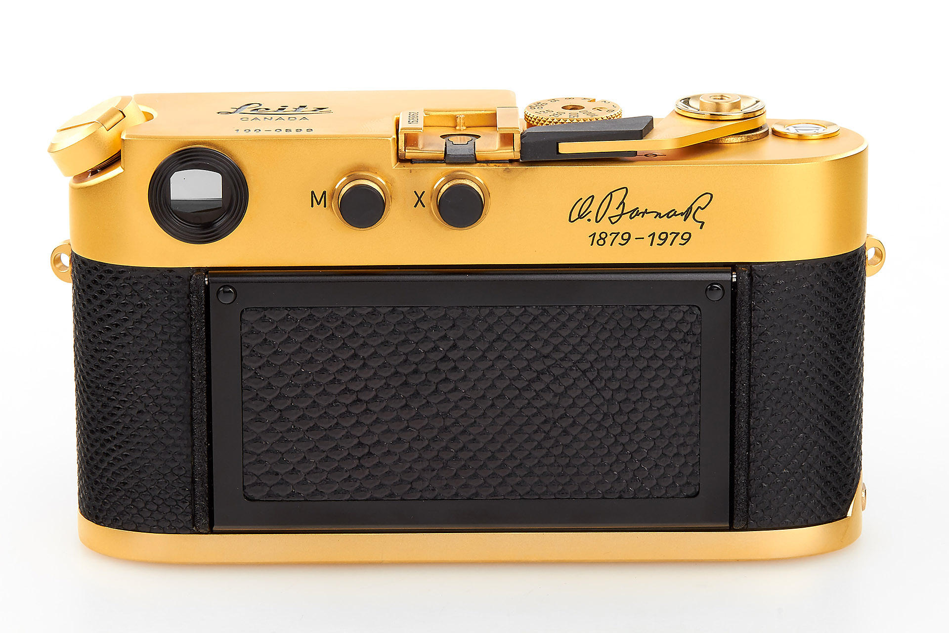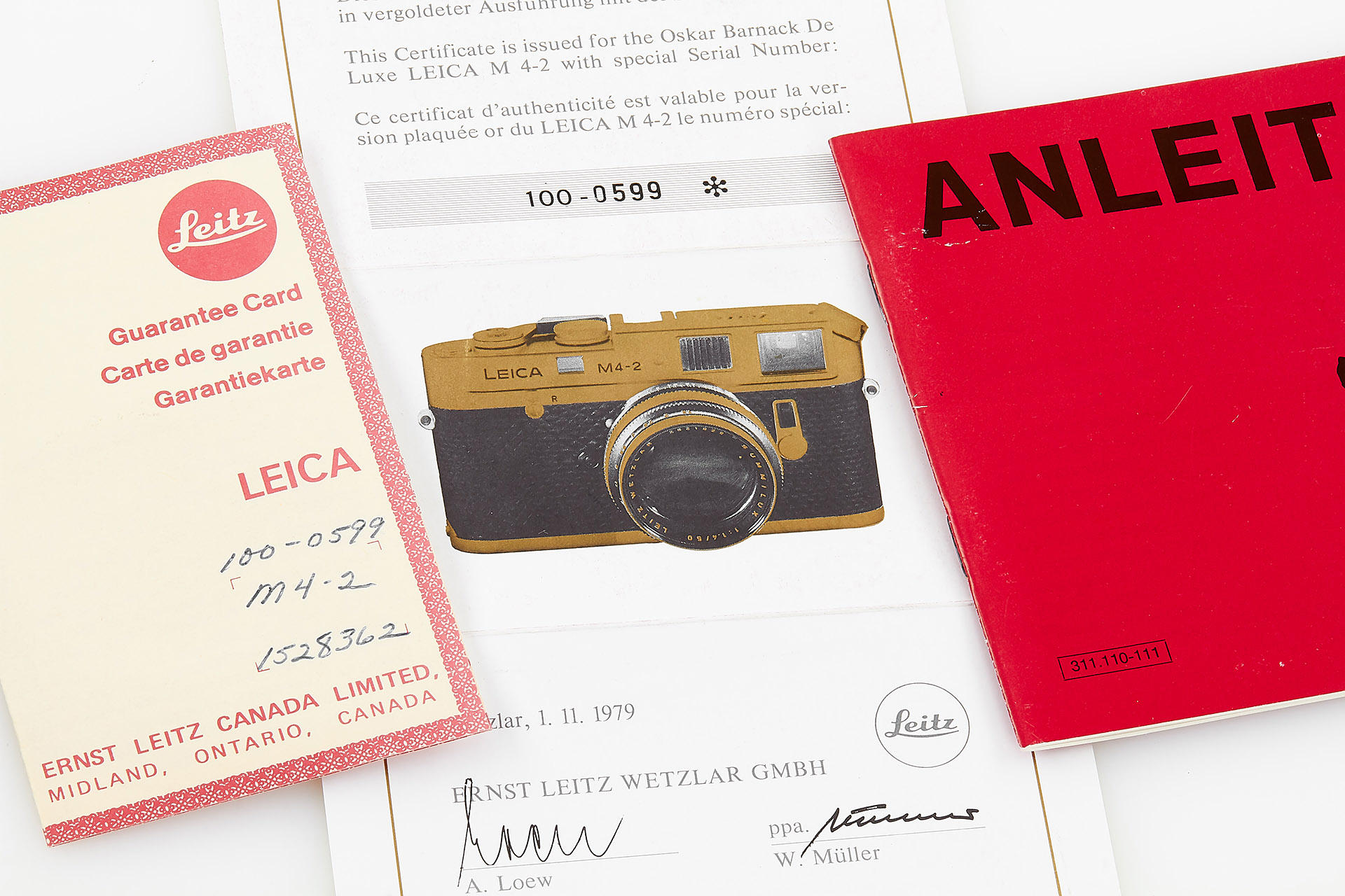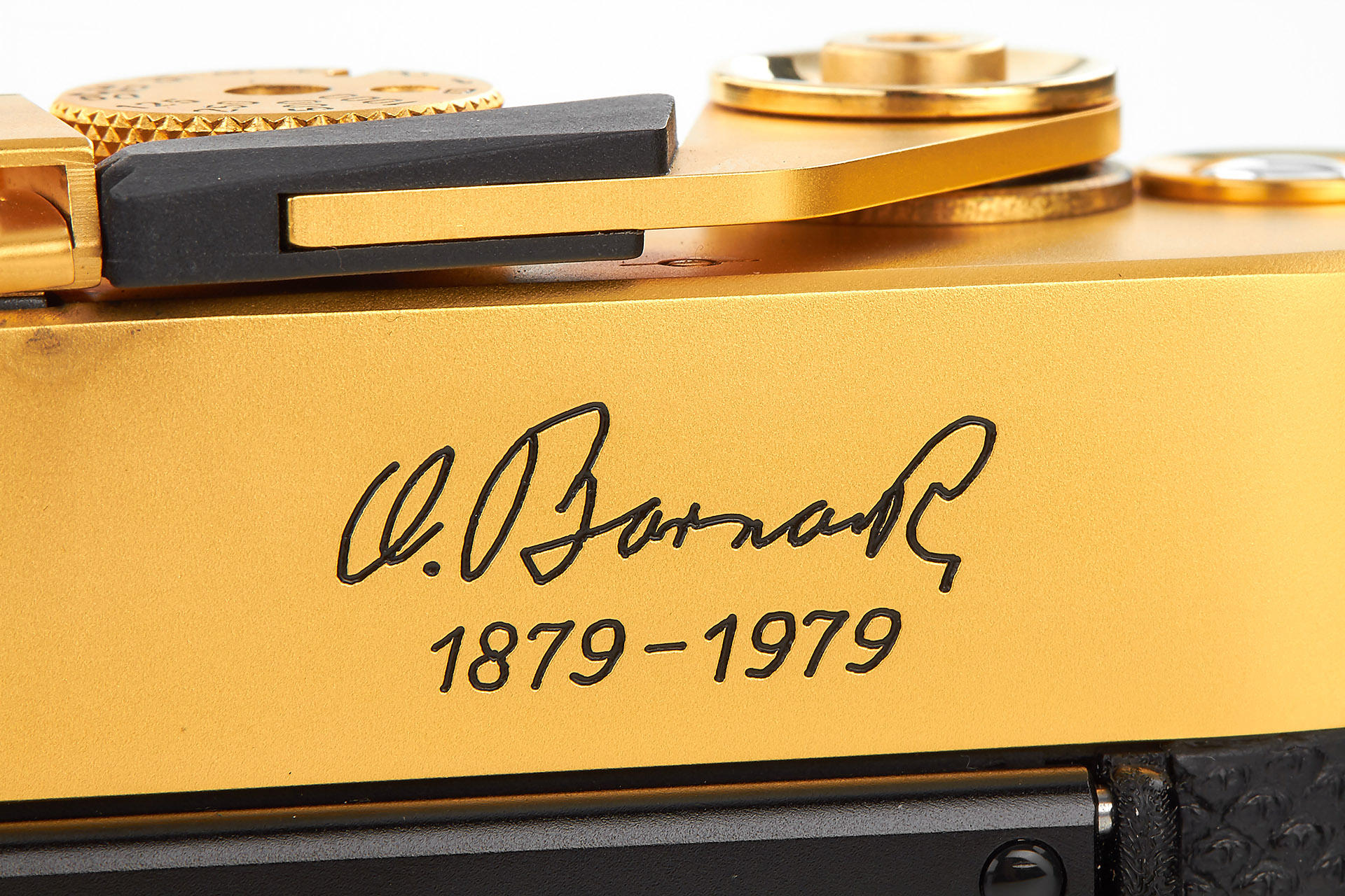 limited gold plated edition for the 100th anniversary of the birthday of Oscar Barnack, special edition number 100-0599, in near mint condition and perfect working order, with gold-plated Summilux 1.4/50mm no.2848521, with papers and standard M4-2 maker's box